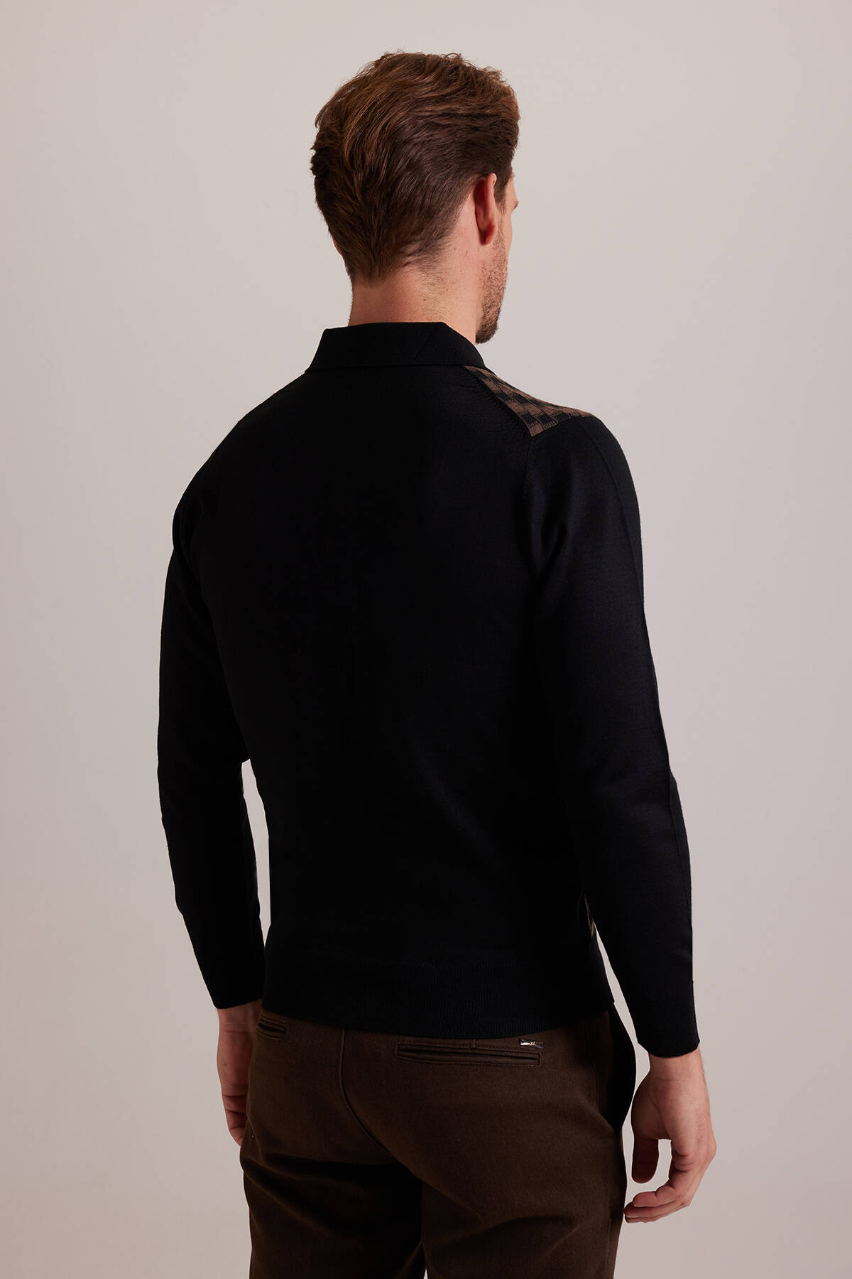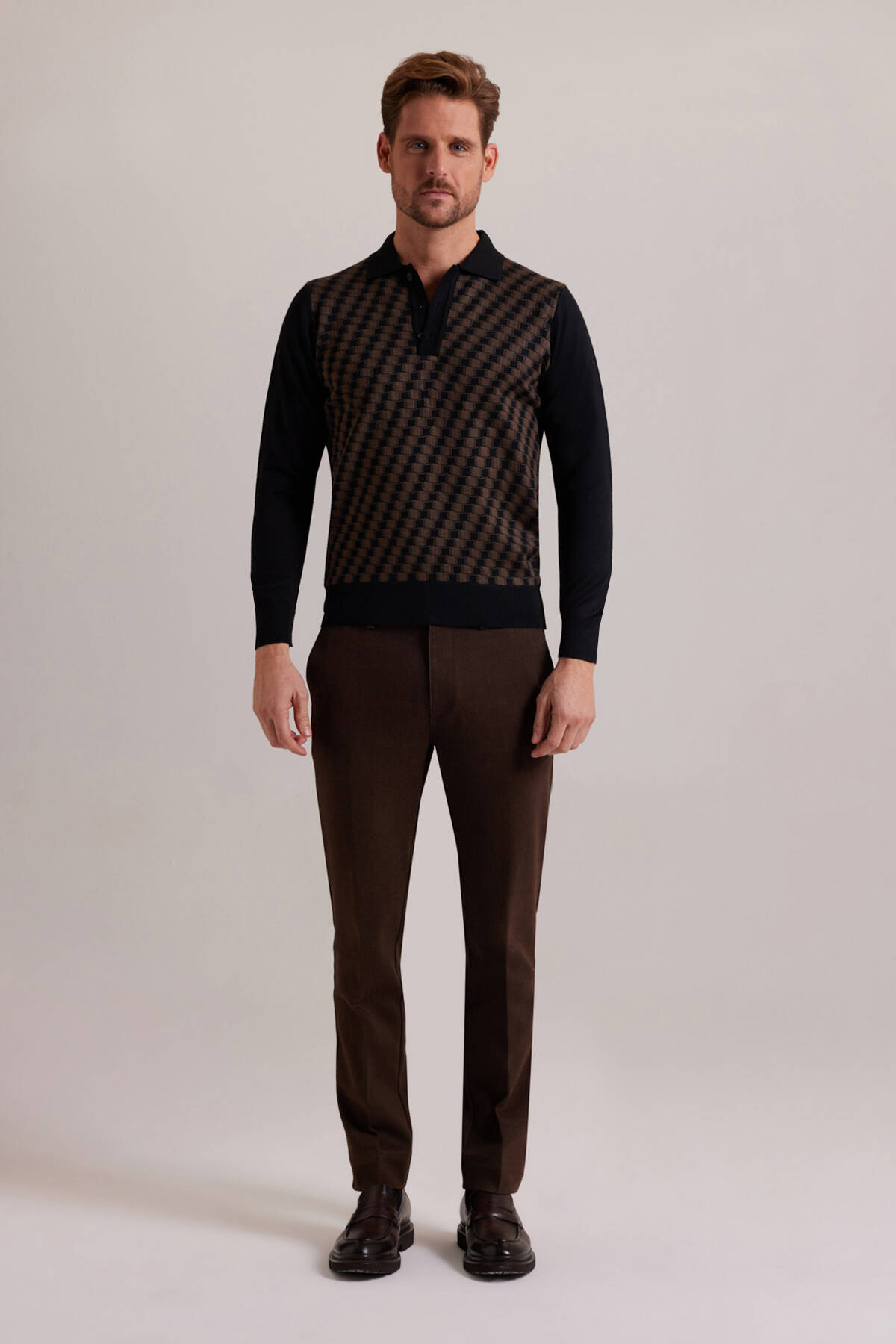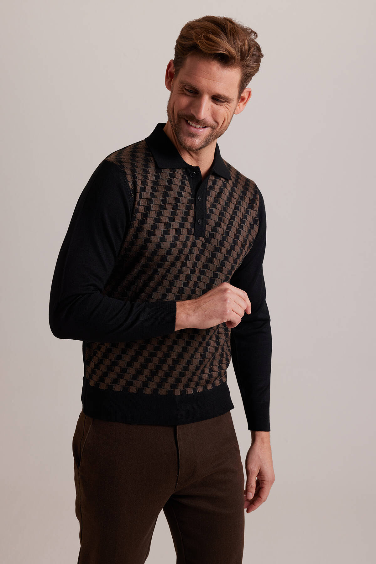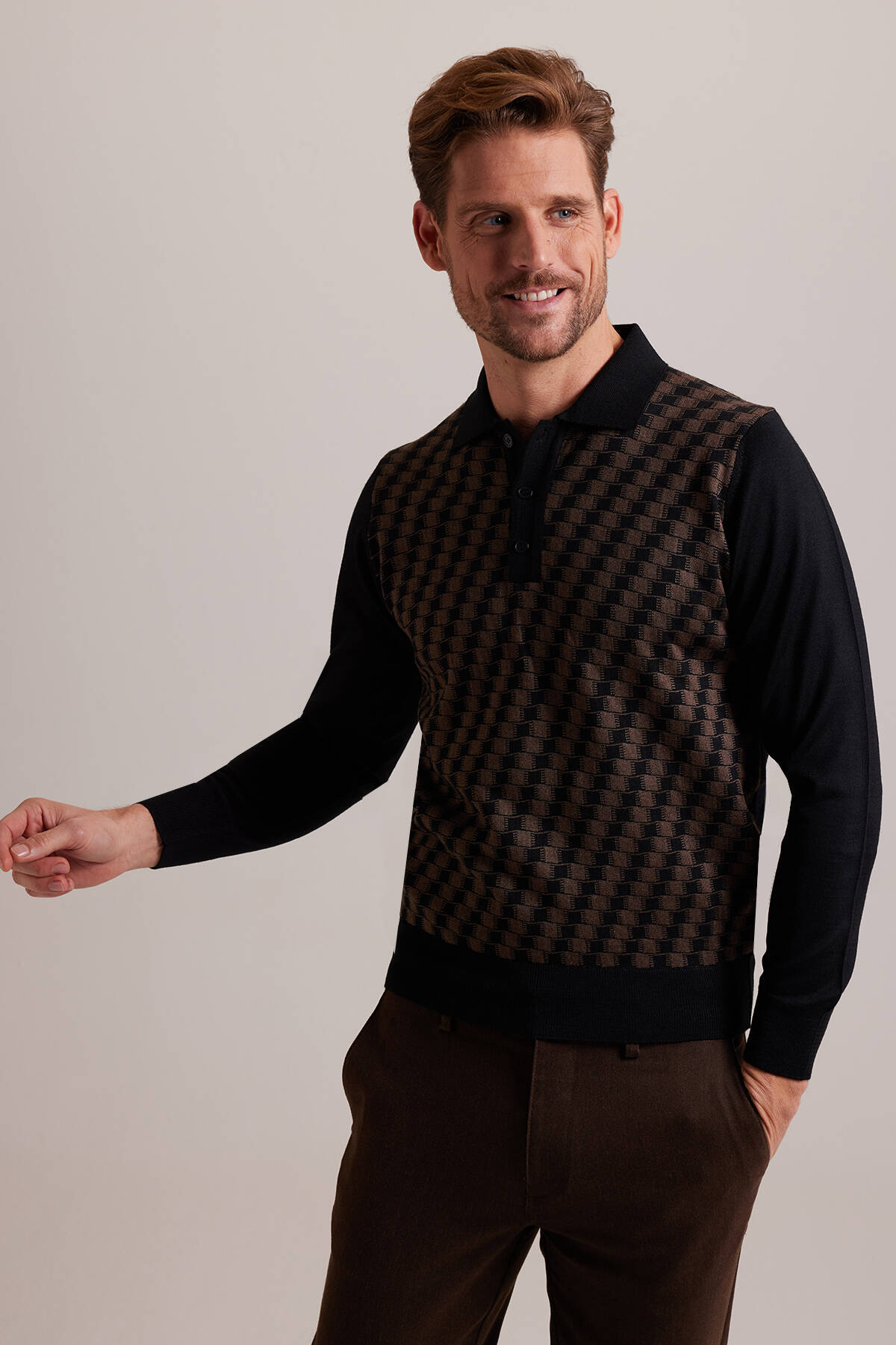Erkek Siyah Kahve Polo Yaka Desenli Triko
