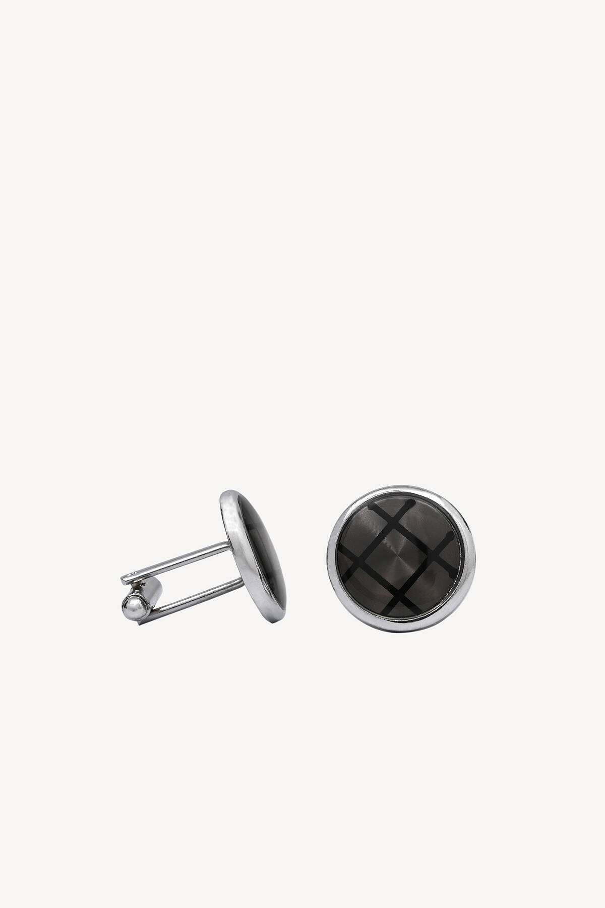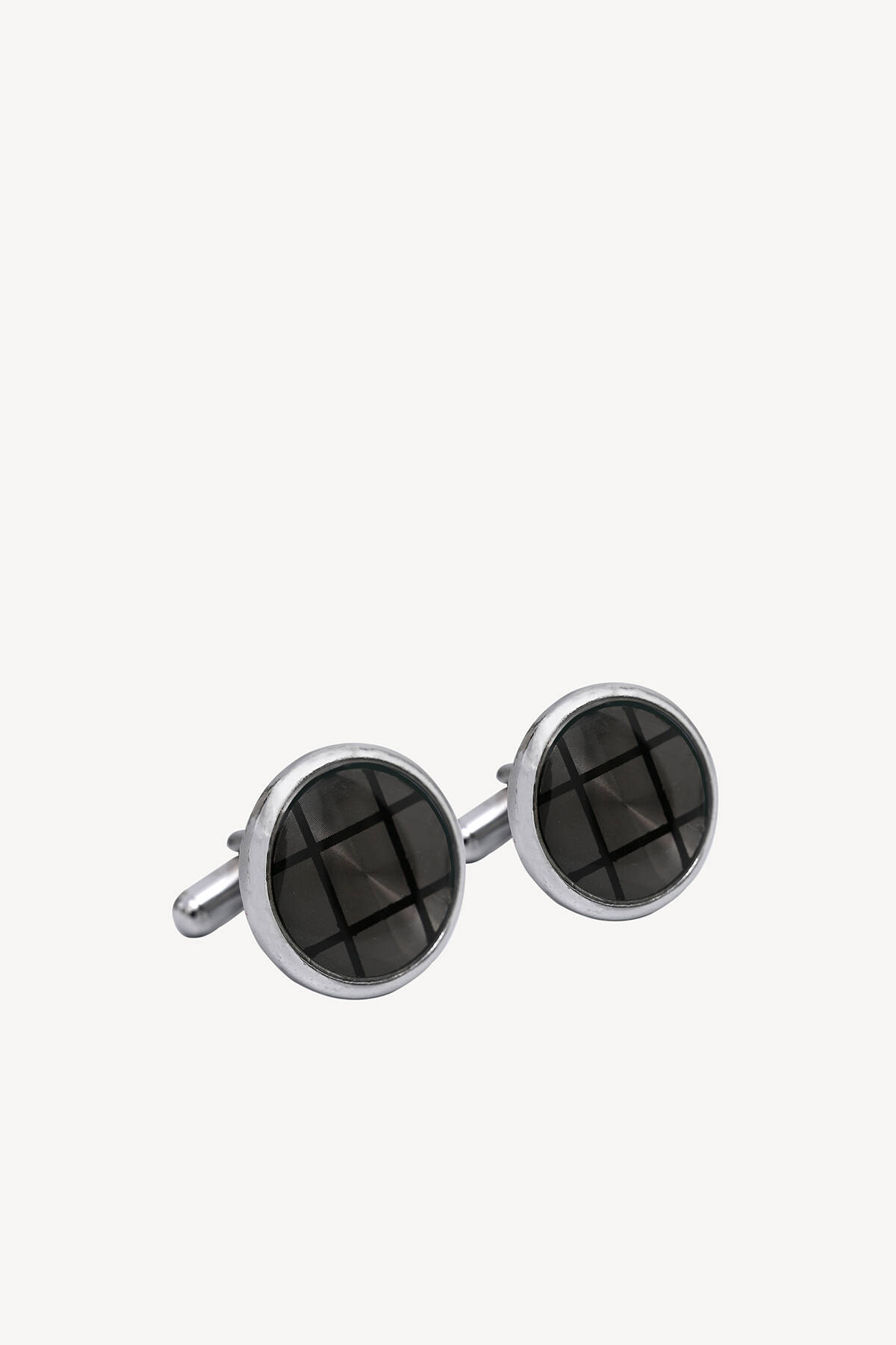 Erkek Siyah Kareli Oval Kol Düğmesi