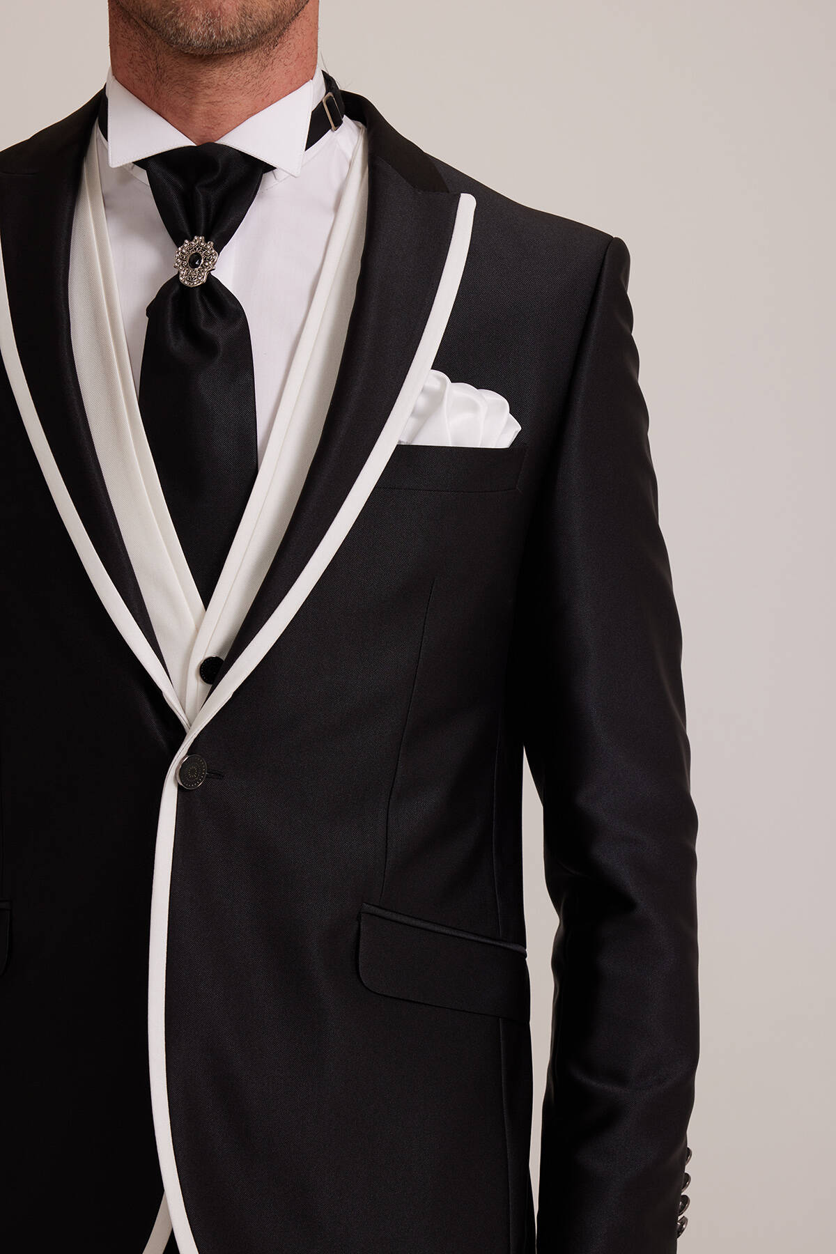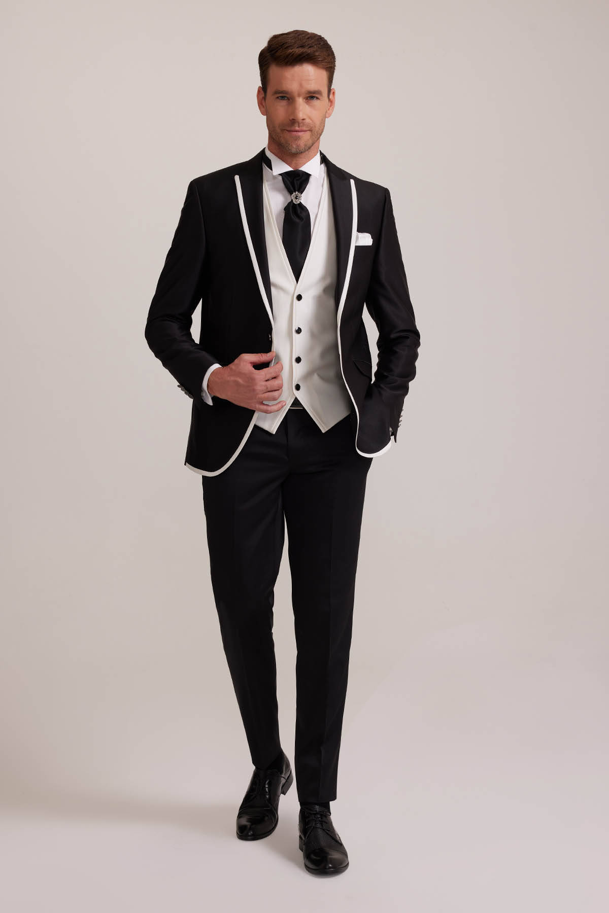 Düz siyah rengin nesiller boyu aktarılacak zarafetine sahip yelekli damatlık, bir sonraki balonuz veya düğün gibi en özel günleriniz için saklanmayı hak eder. Kusursuz dikiş ve incelikli işçilik ile premium bir his sunan smokin, kontrast yaratan detayları ile düğün şıklığını tamamlar. Bu özel parçayı; ekru tonlarda saten gömlek, düz kravat, siyah klasik kemer, rugan Oxford ayakkabı, yaka çiçeği ve cep mendili ile buluşturarak çekiciliğin zirvesine çıkabilirsiniz. YSF Giyim, resmî silüetler için her erkeğin stilini yansıtacak en lüks ve kaliteli damatlık modellerini sunar. Siz de yaklaşan önemli bir davet veya düğün için en özel damatlık fiyatları ile alışverişi deneyimleyebilir, şıklığınızı ortaya çıkarabilirsiniz.