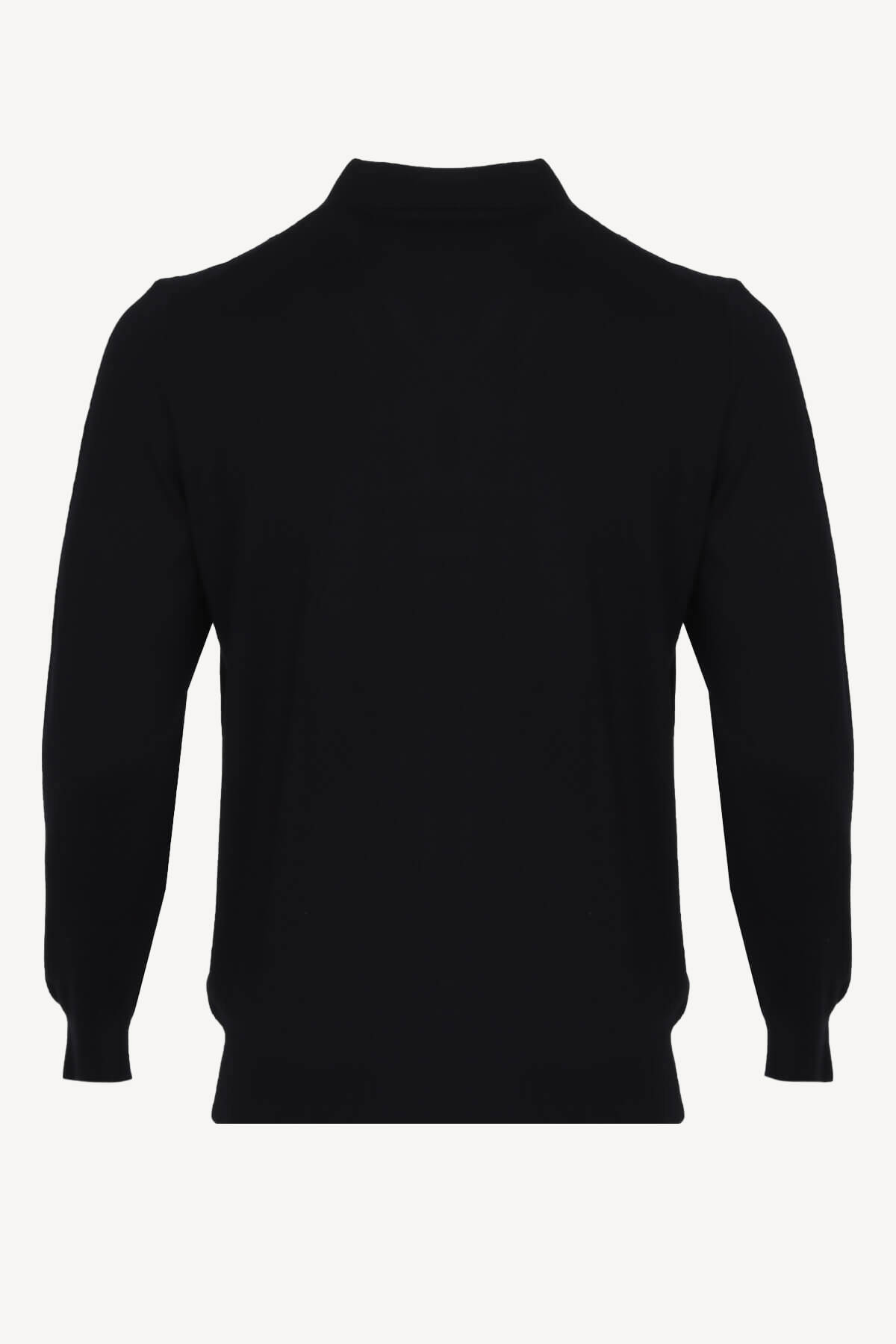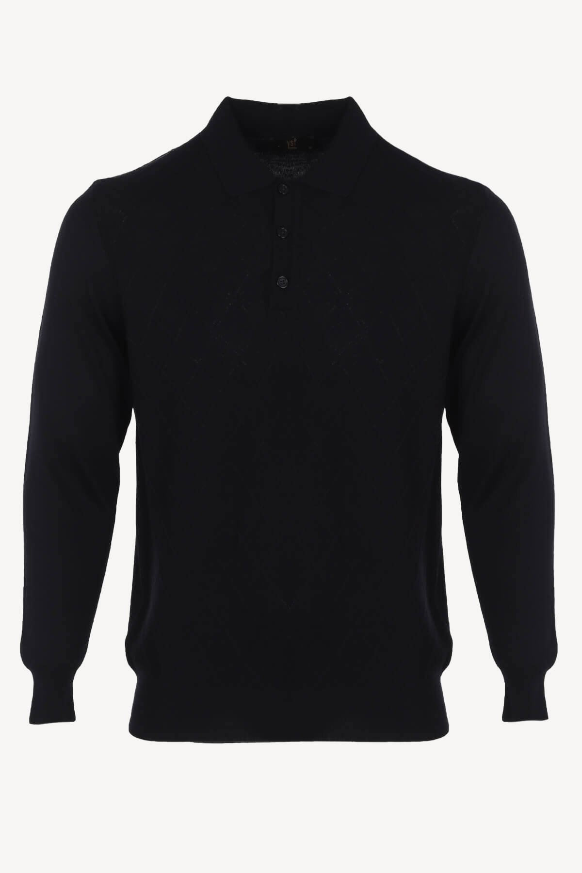 Erkek Siyah Polo Yaka Desenli Klasik Triko