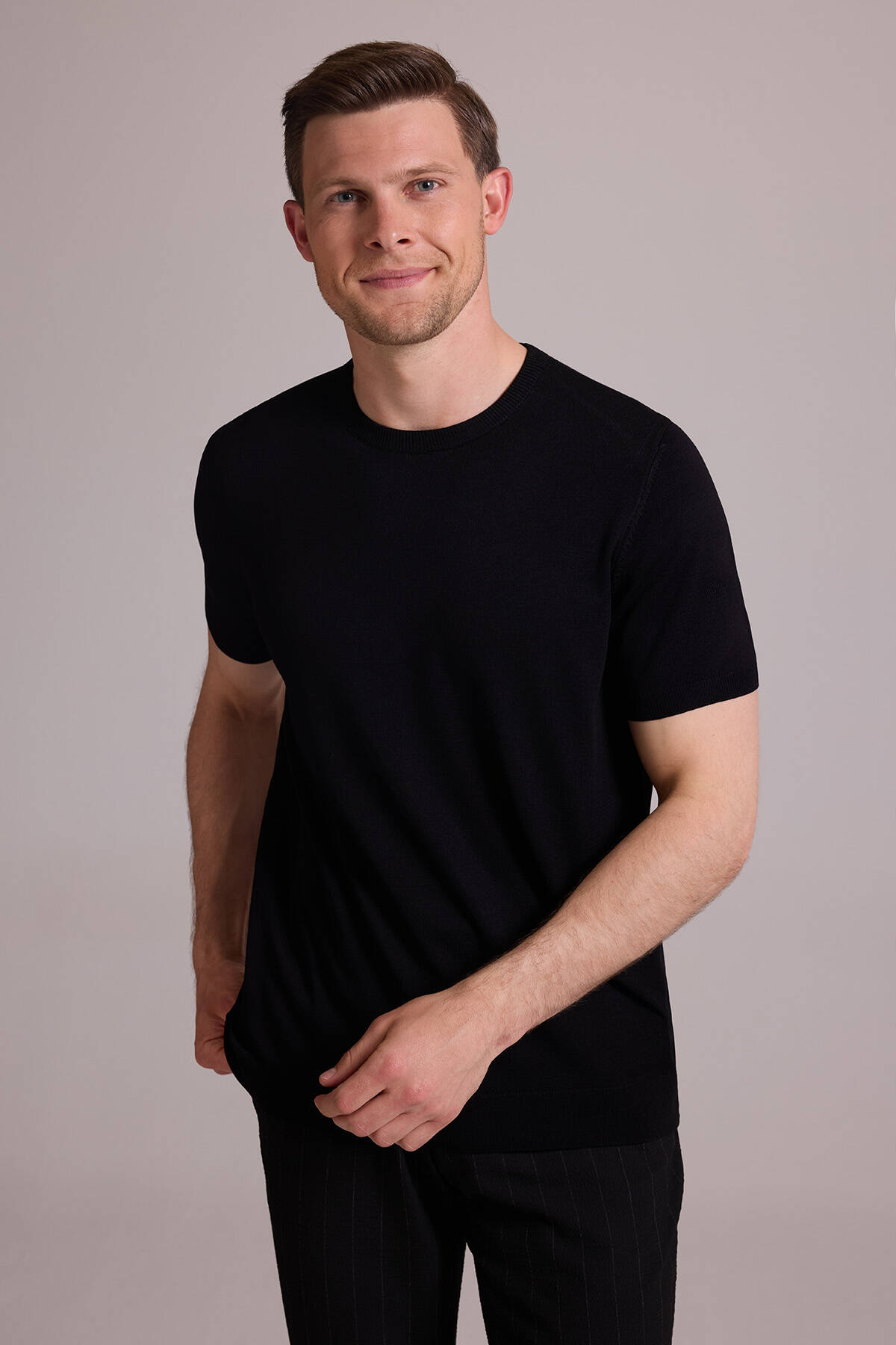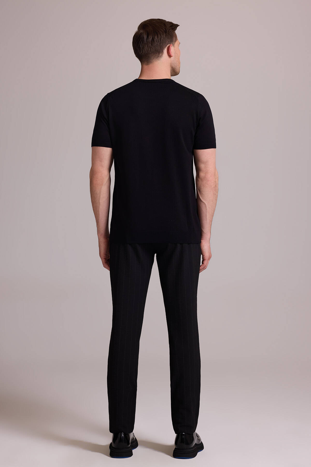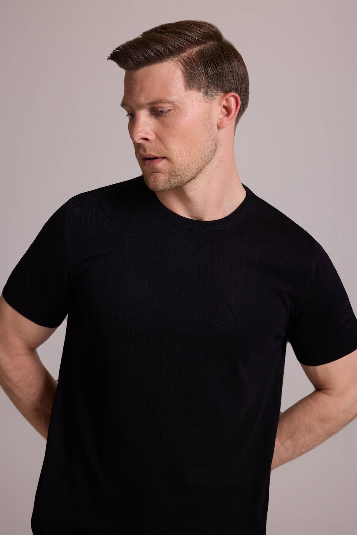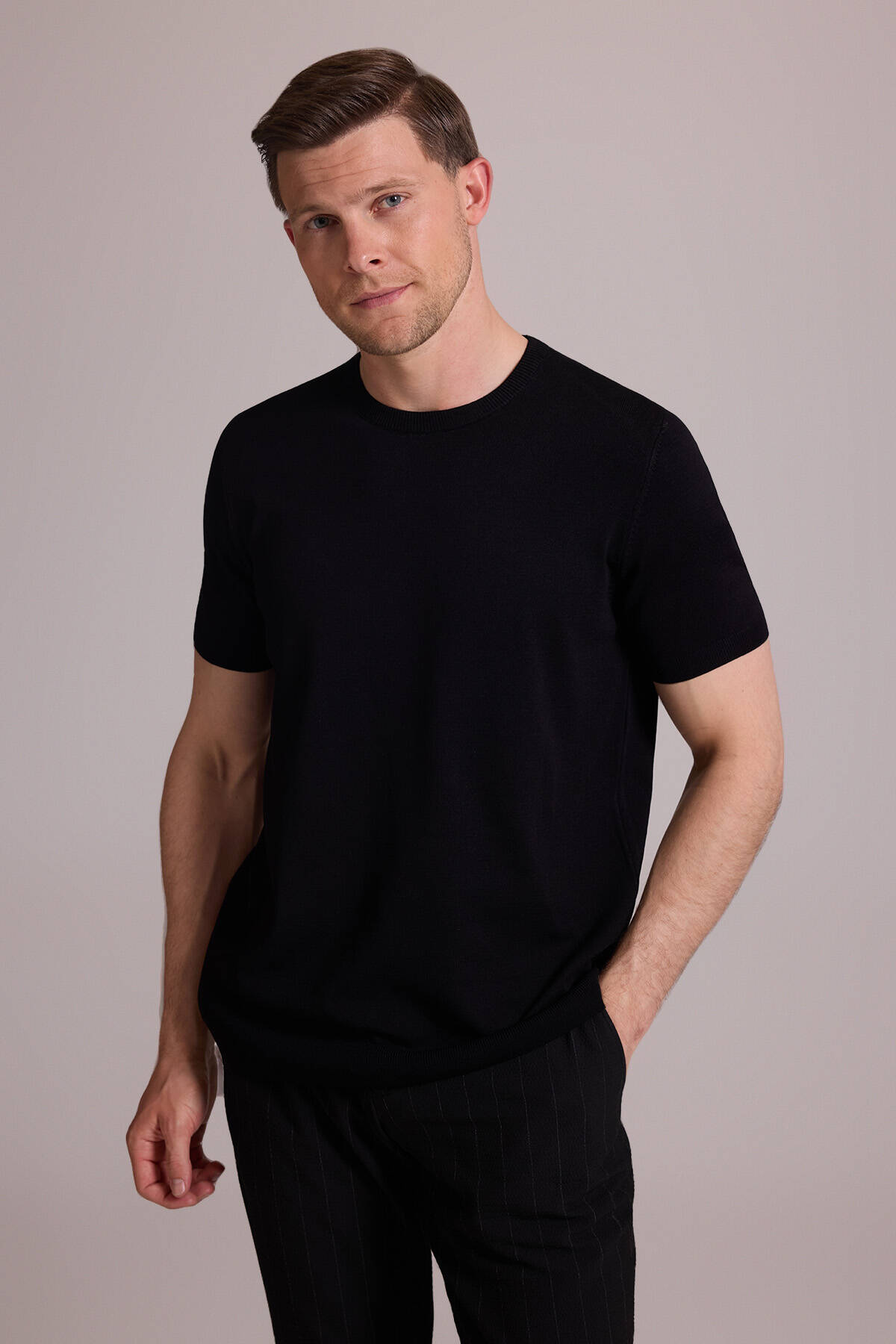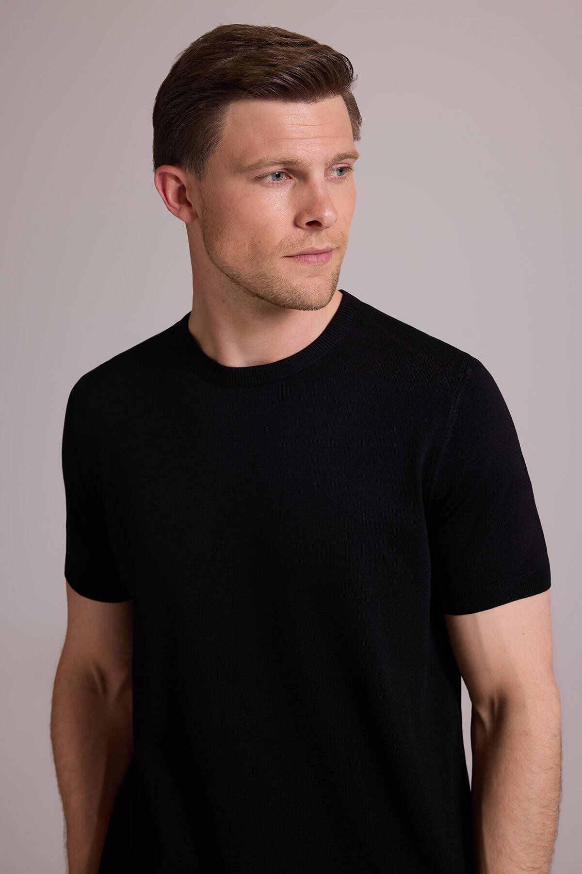 Erkek Siyah Regular Fit Bisiklet Yaka Triko Tişört