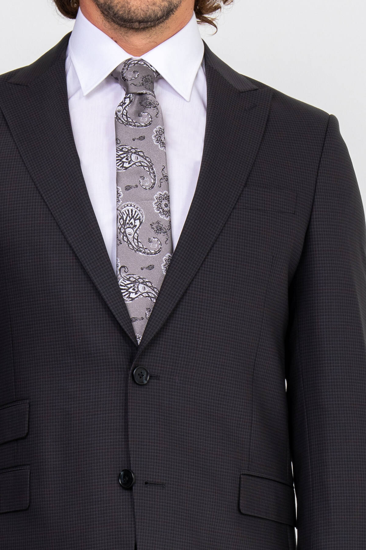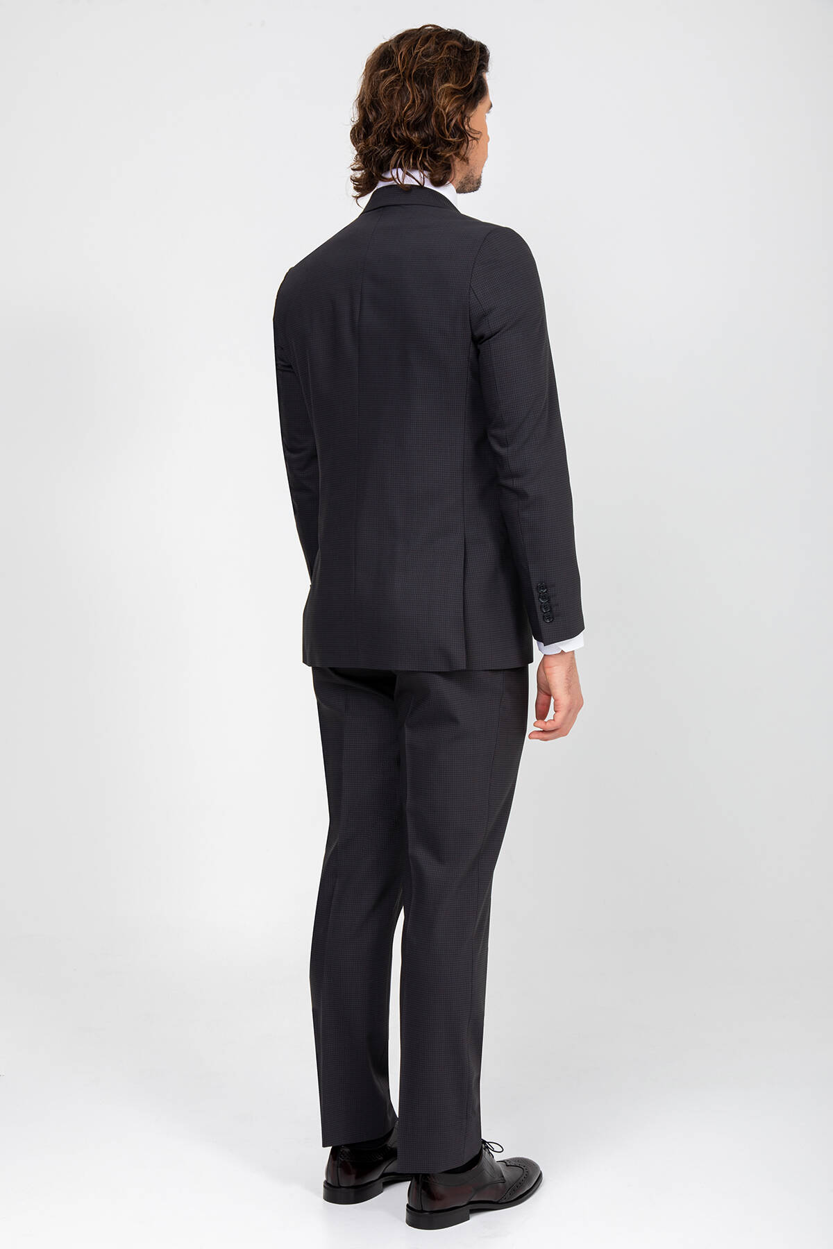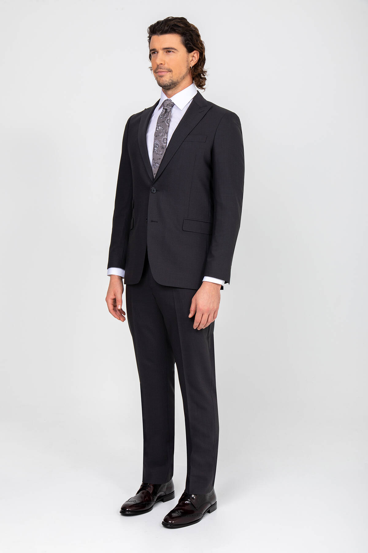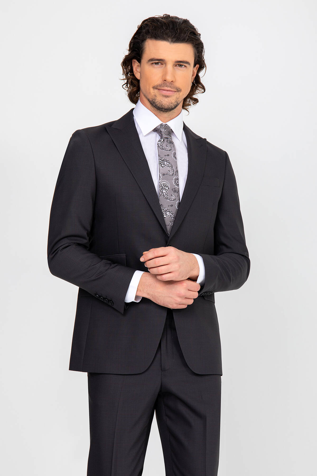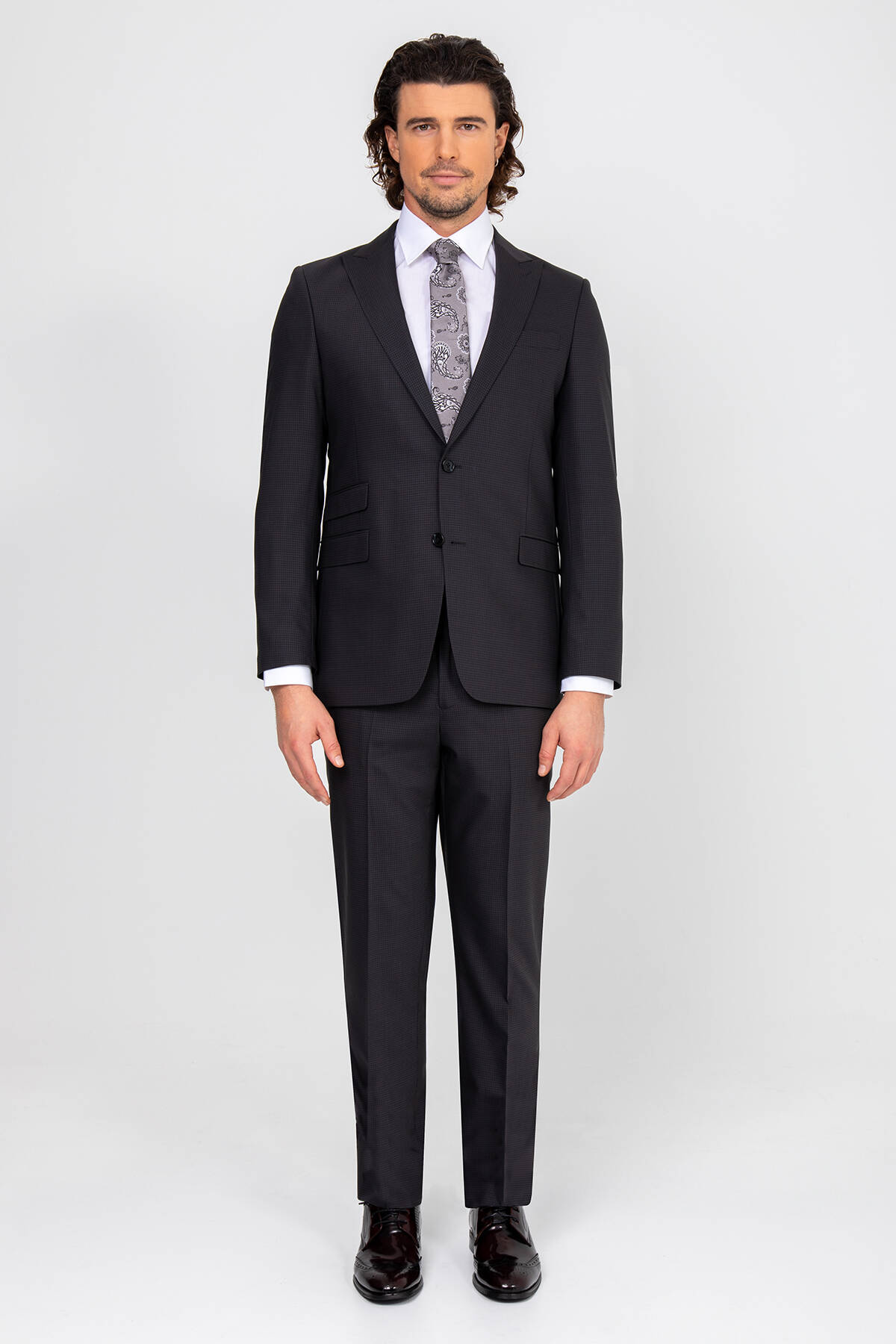 Erkek Siyah Regular Fit Kareli Sivri Yaka Takım Elbise