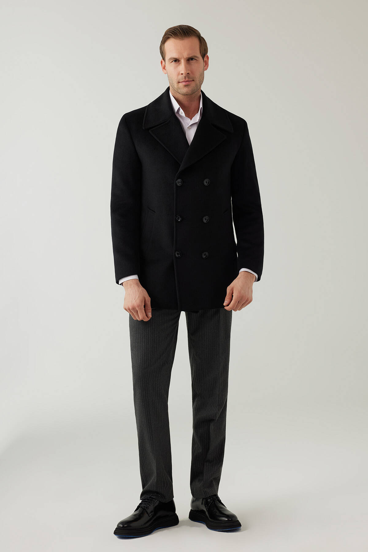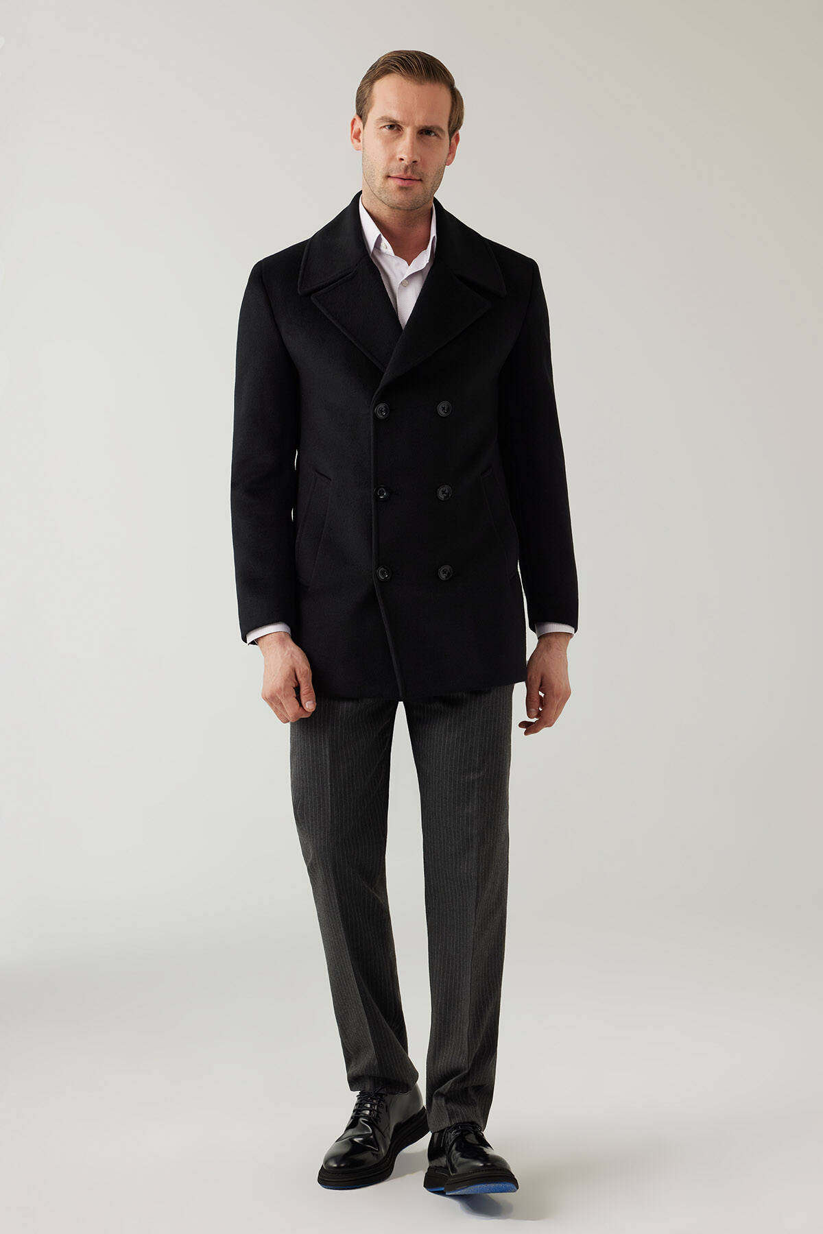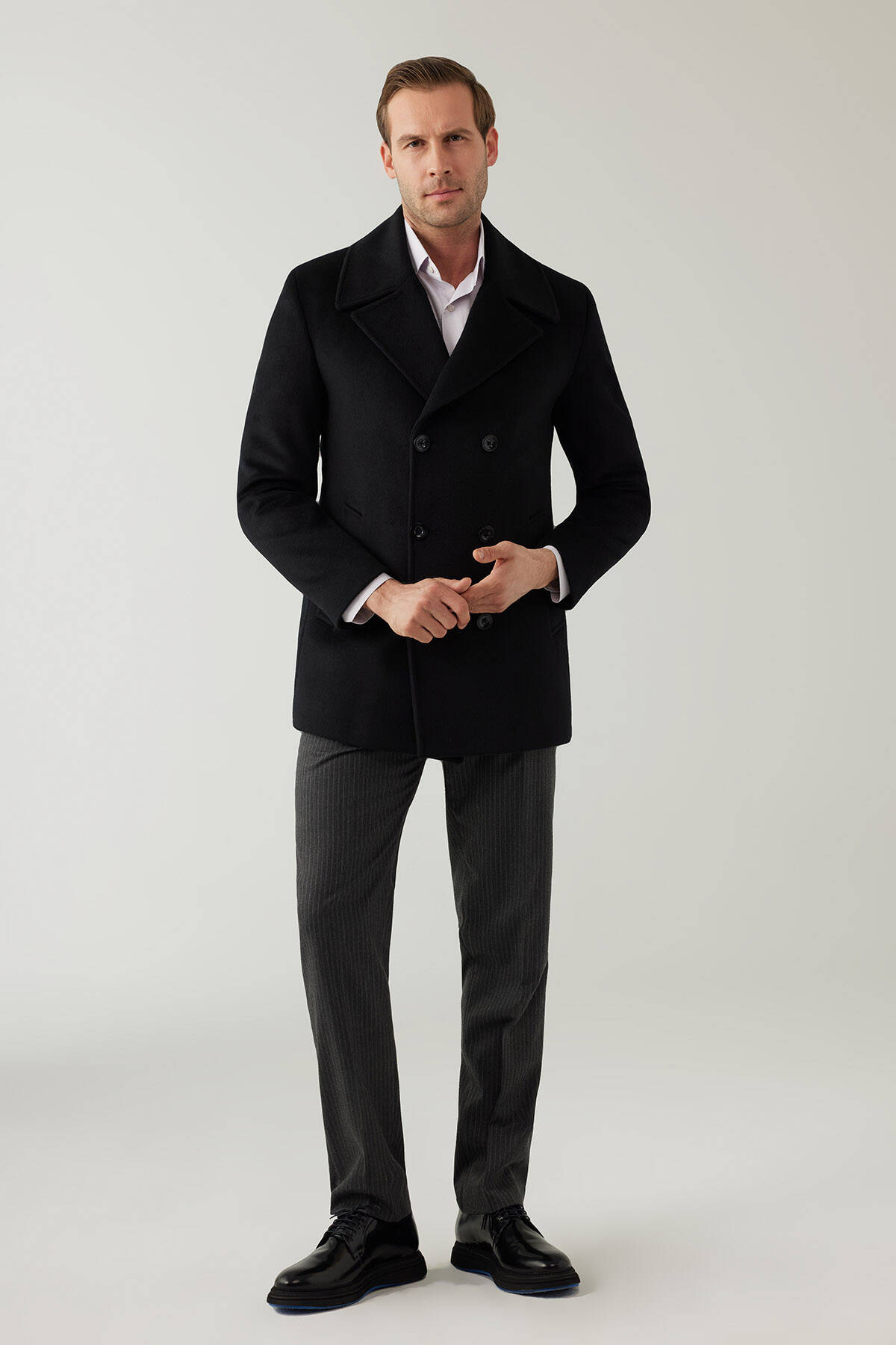 Gelince Haber VerYSF Giyim, Erkek Siyah Regular Fit Kırlangıç Yaka Kaban ile dış giyim koleksiyonunuza premium kalite ve stil kazandırır. Kaşmir ve saf yün karışımından oluşan bu şık erkek kaban, en soğuk günlerde dahi sıcaklığı oldukça zarif bir şekilde muhafaza eder. Kabanın lüks dokusuna eşlik eden kırlangıç yaka tasarımı ise dış giyimde klas bir tarz arayışında olan metropol erkeklerinin stil duygularına hitap eder. Şık kruvaze düğmeler tasarımın zamansız silüetini güçlendirirken, regular fit kesim ise ihtiyacınız olan uyumu sunar. Sofistike çift düğmeli stili hem takım elbise modelleri ile resmî giyime hem de smart kıyafetlerle günlük tarza eşlik edebilir.