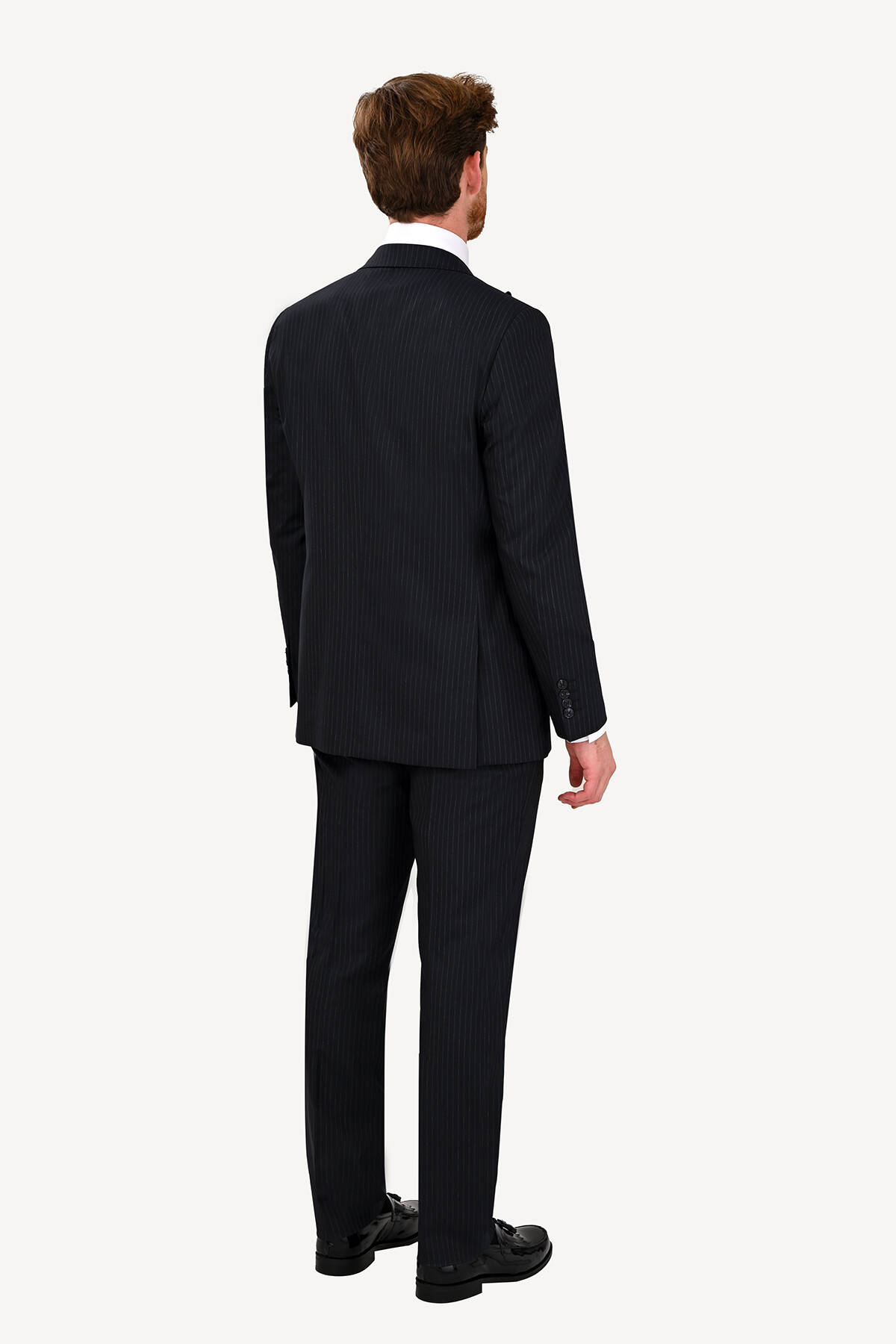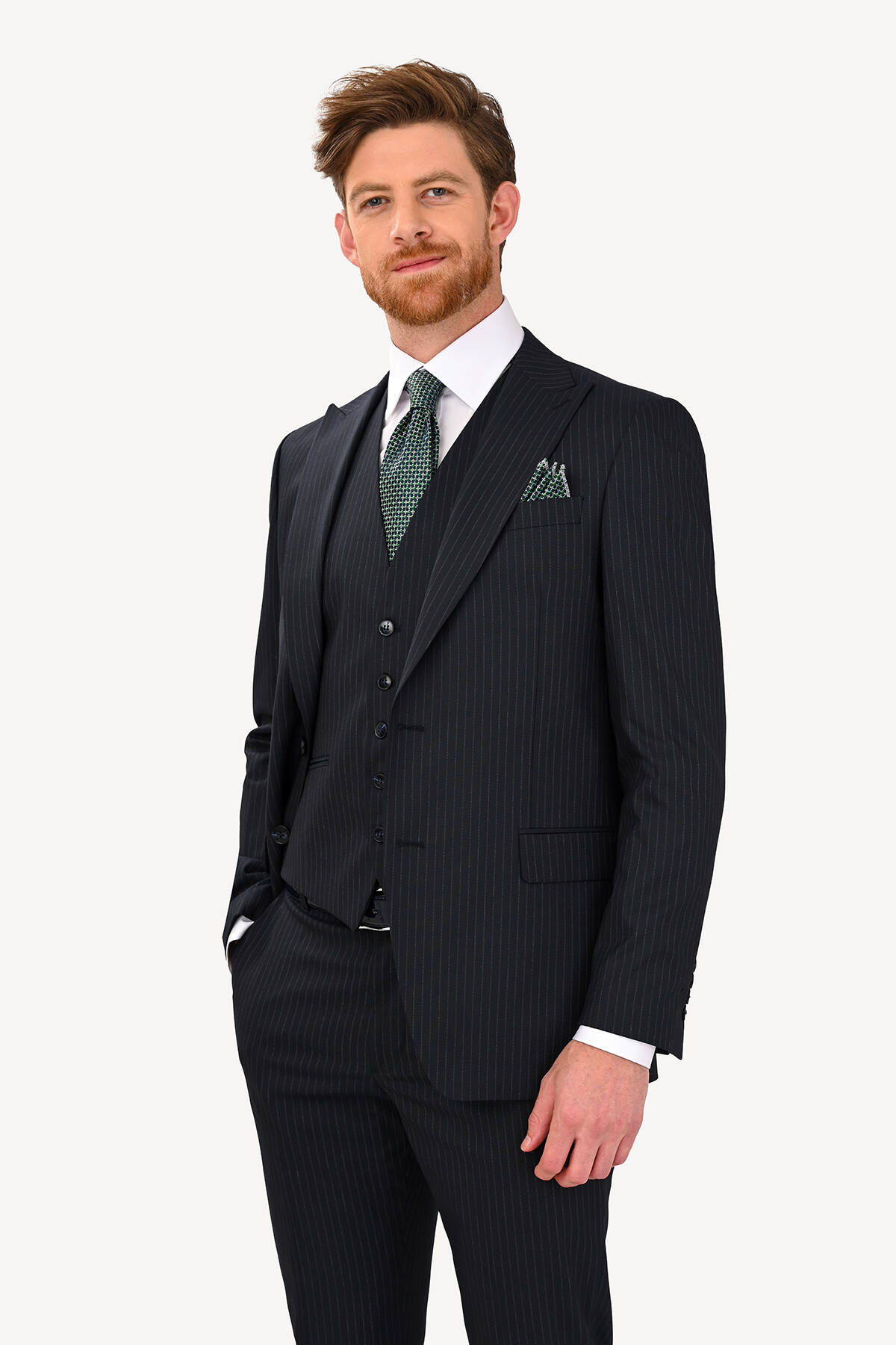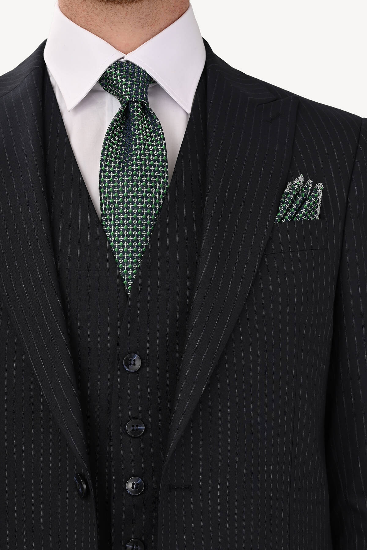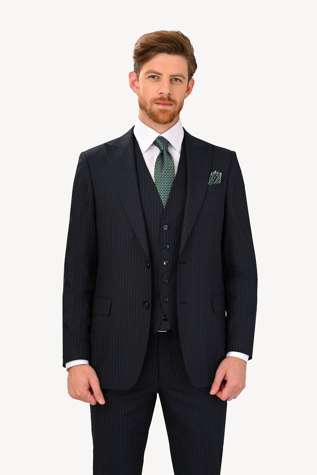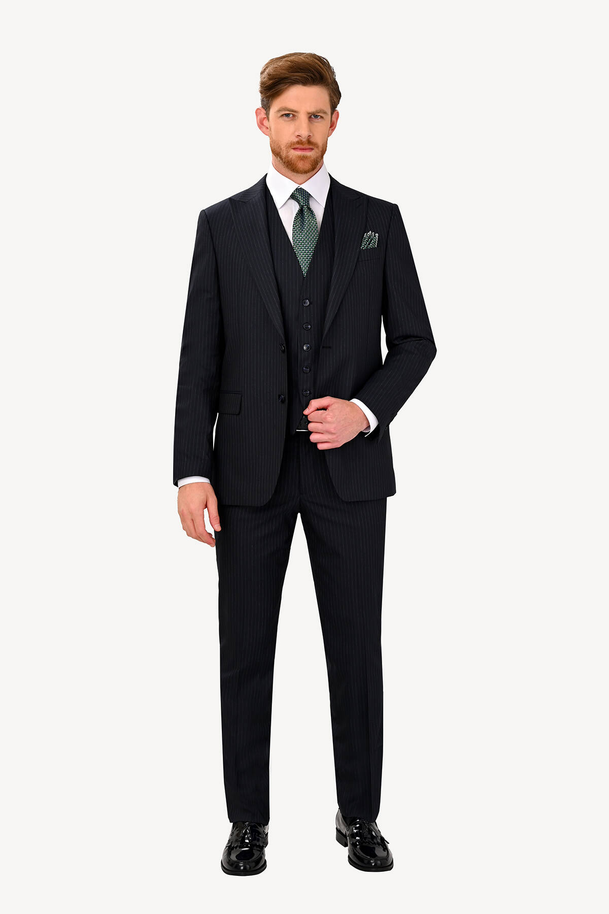 Erkek Siyah Regular Fit Sivri Yaka Yelekli Takım Elbise