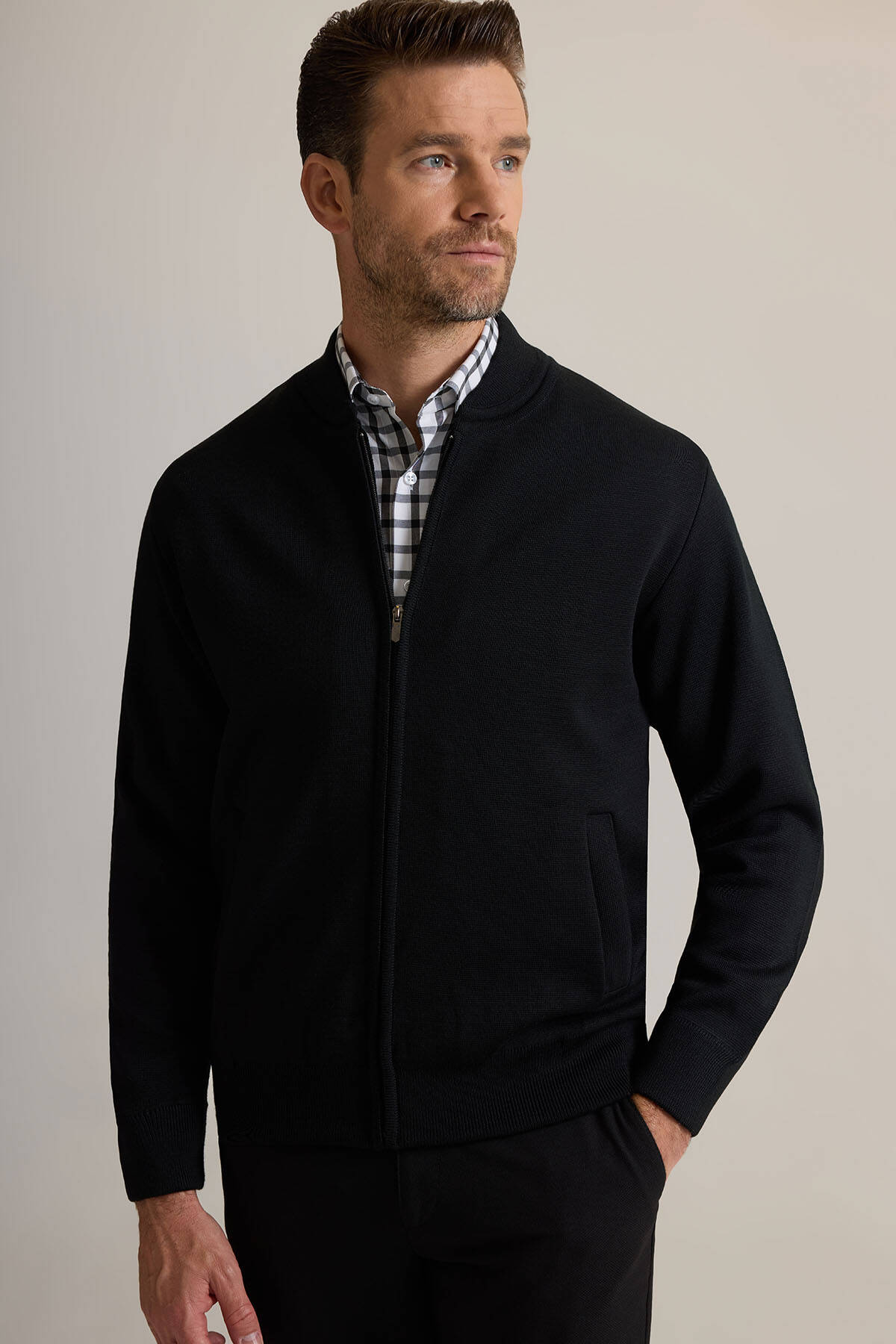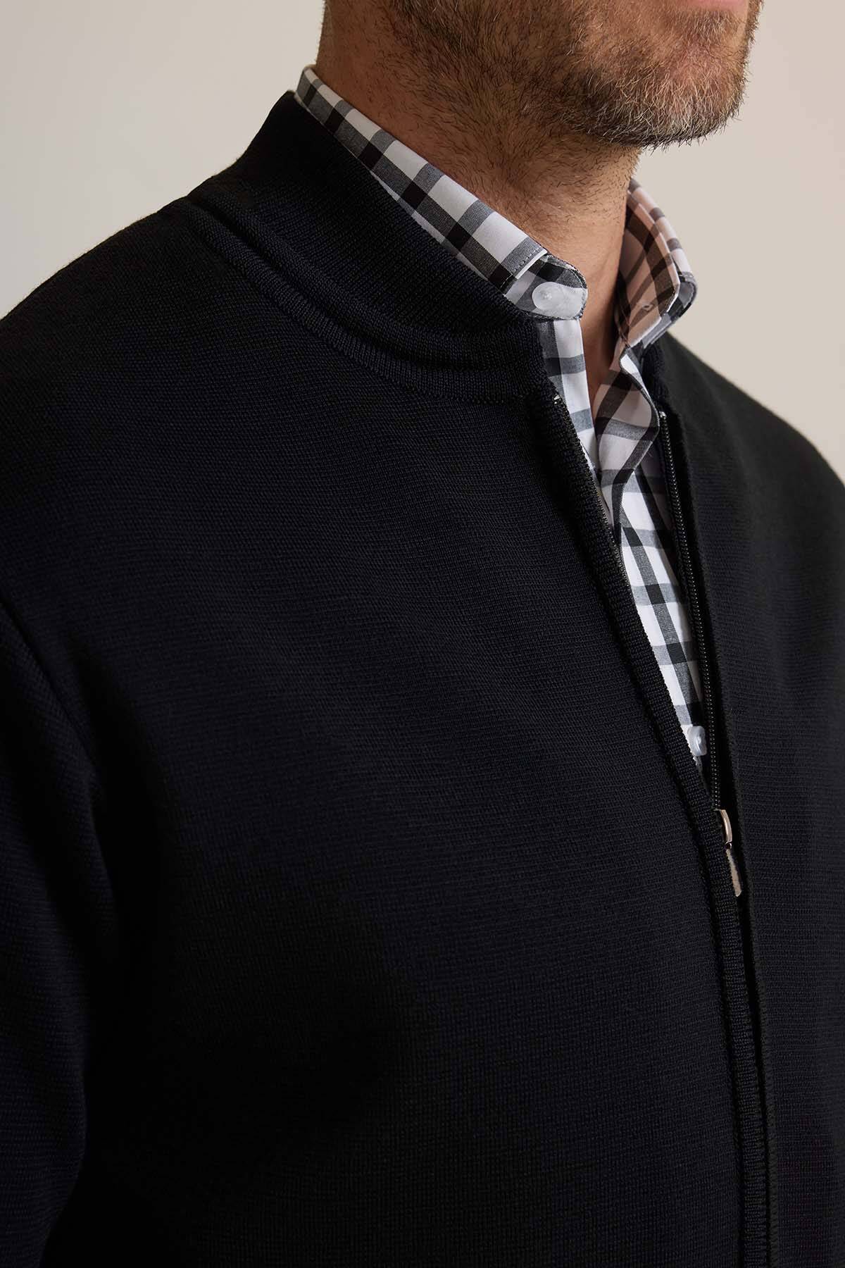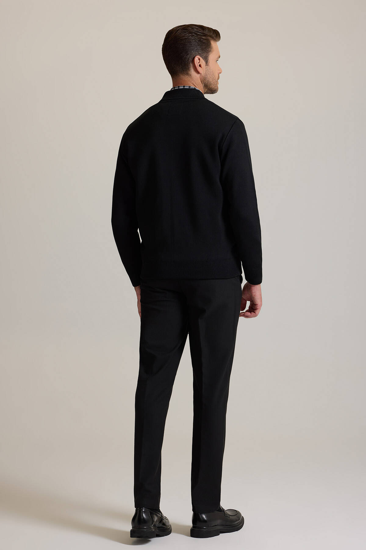 Erkek Siyah Sıfır Yaka İçi Astarlı Fermuarlı Triko Hırka