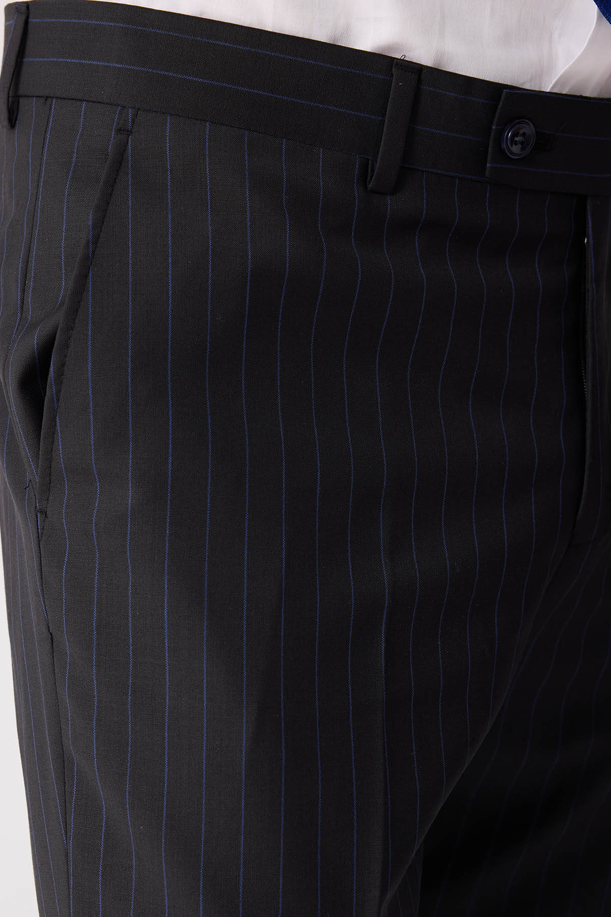 Erkek Siyah Slim Fit Çizgili %100 Yün Takım Elbise