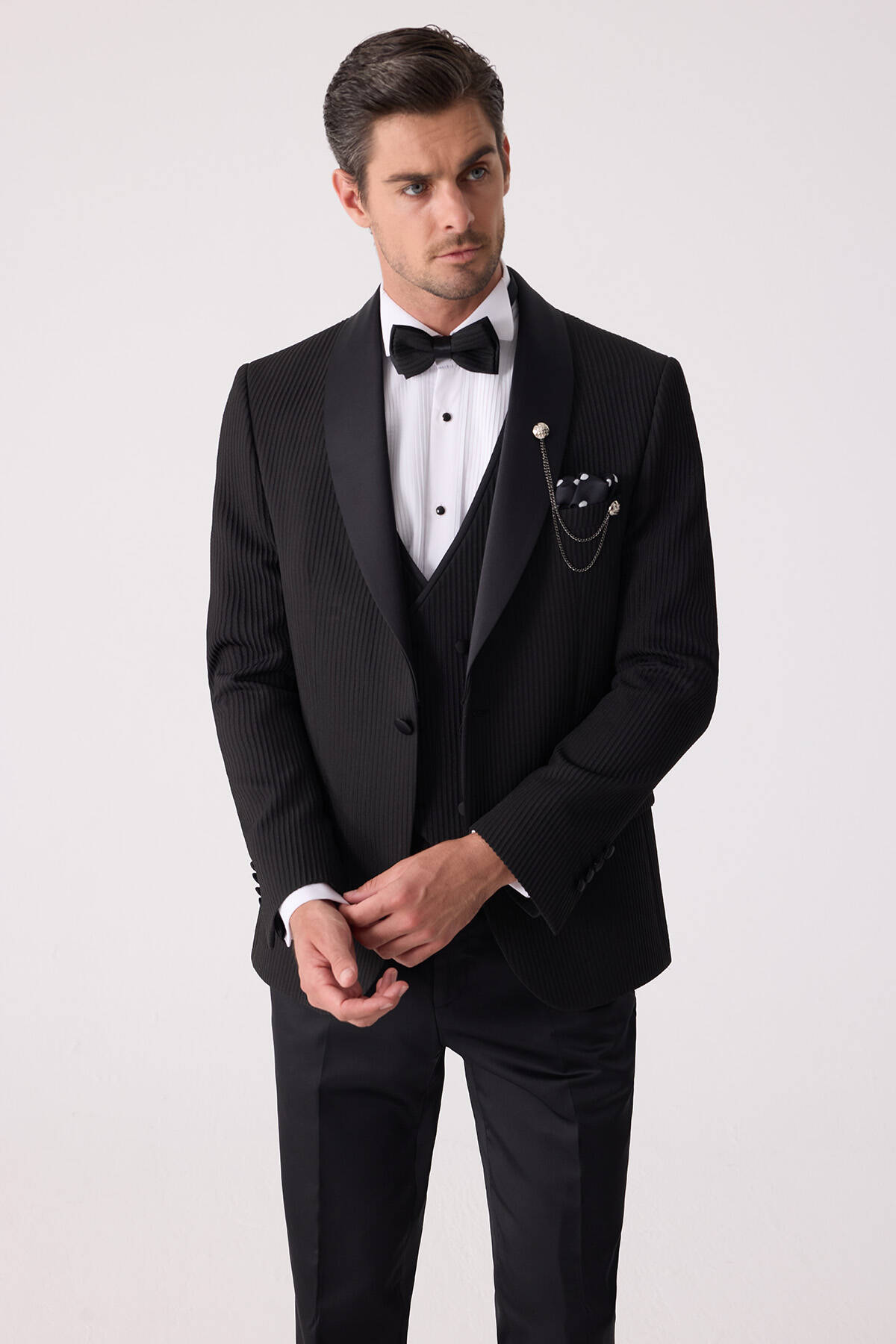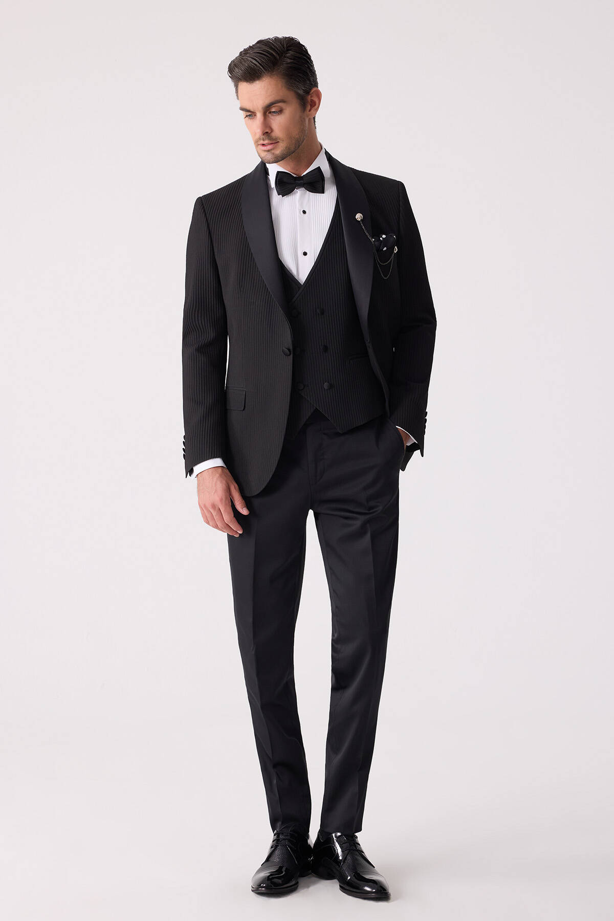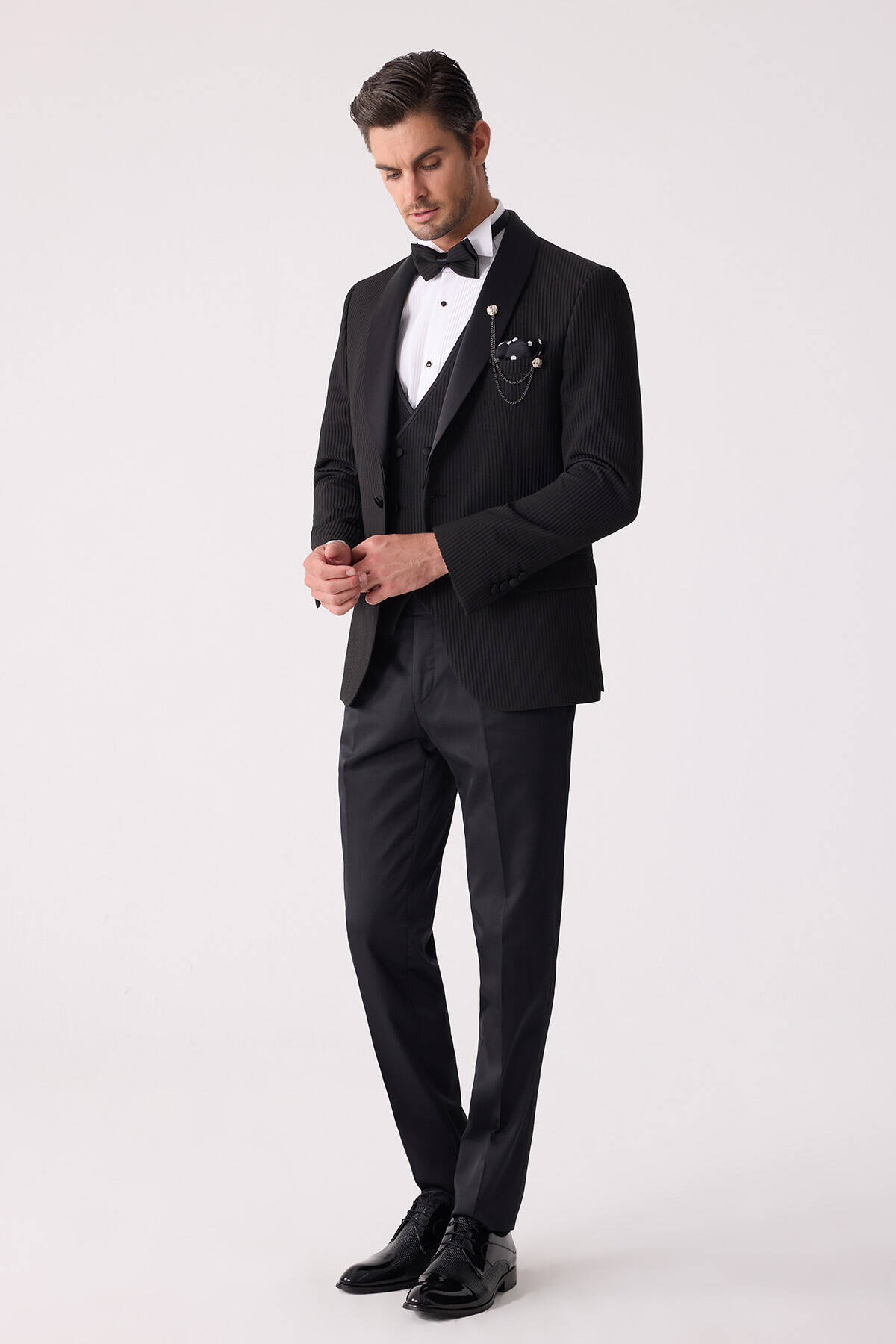 Erkek Siyah Slim Fit Şal Yaka Damatlık