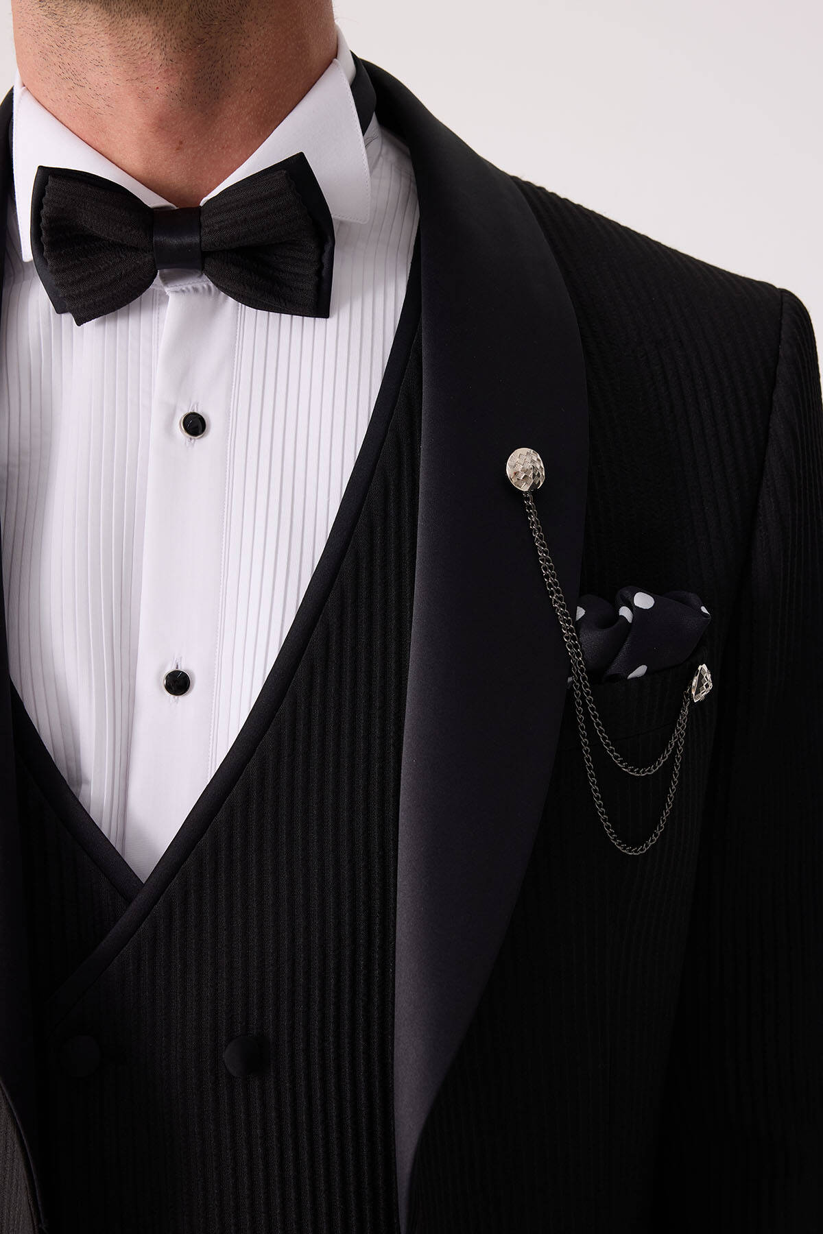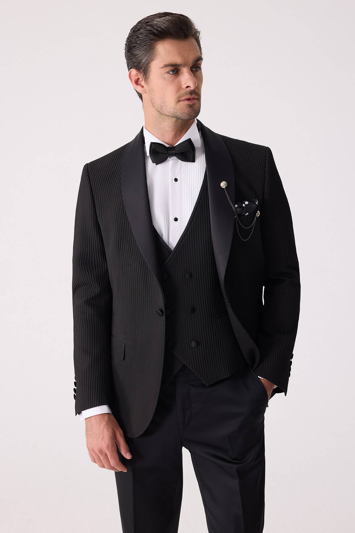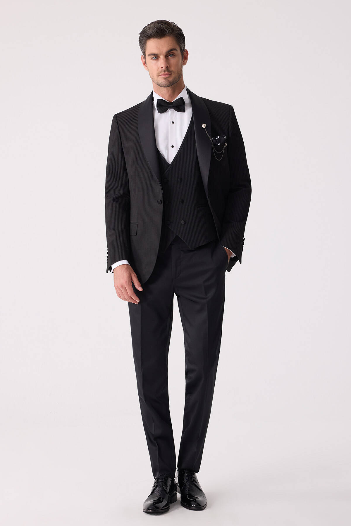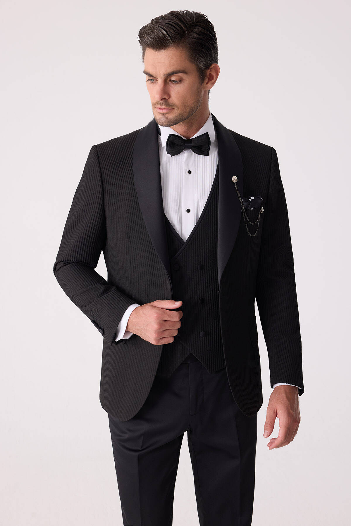 Erkek Siyah Slim Fit Şal Yaka Damatlık