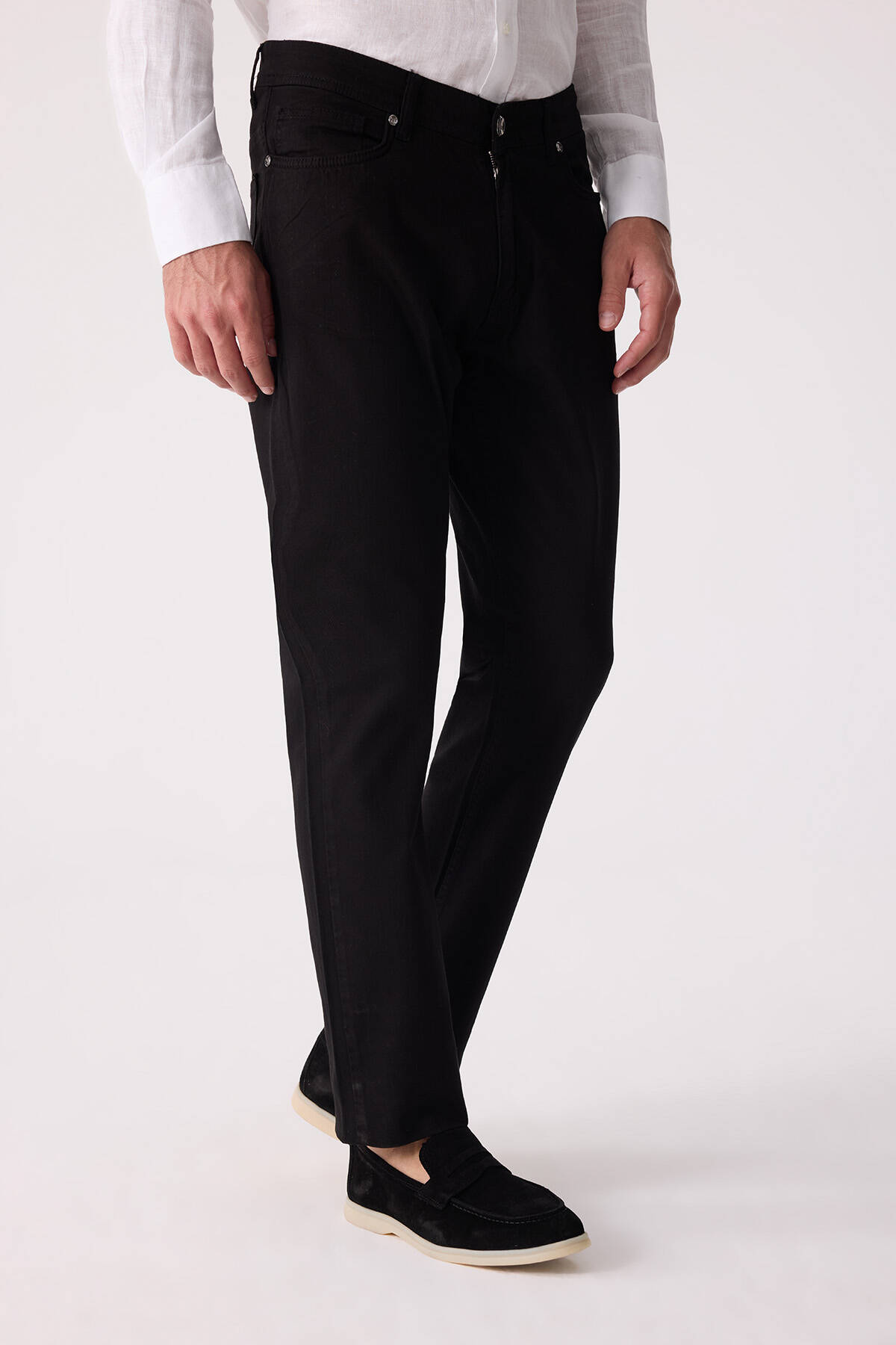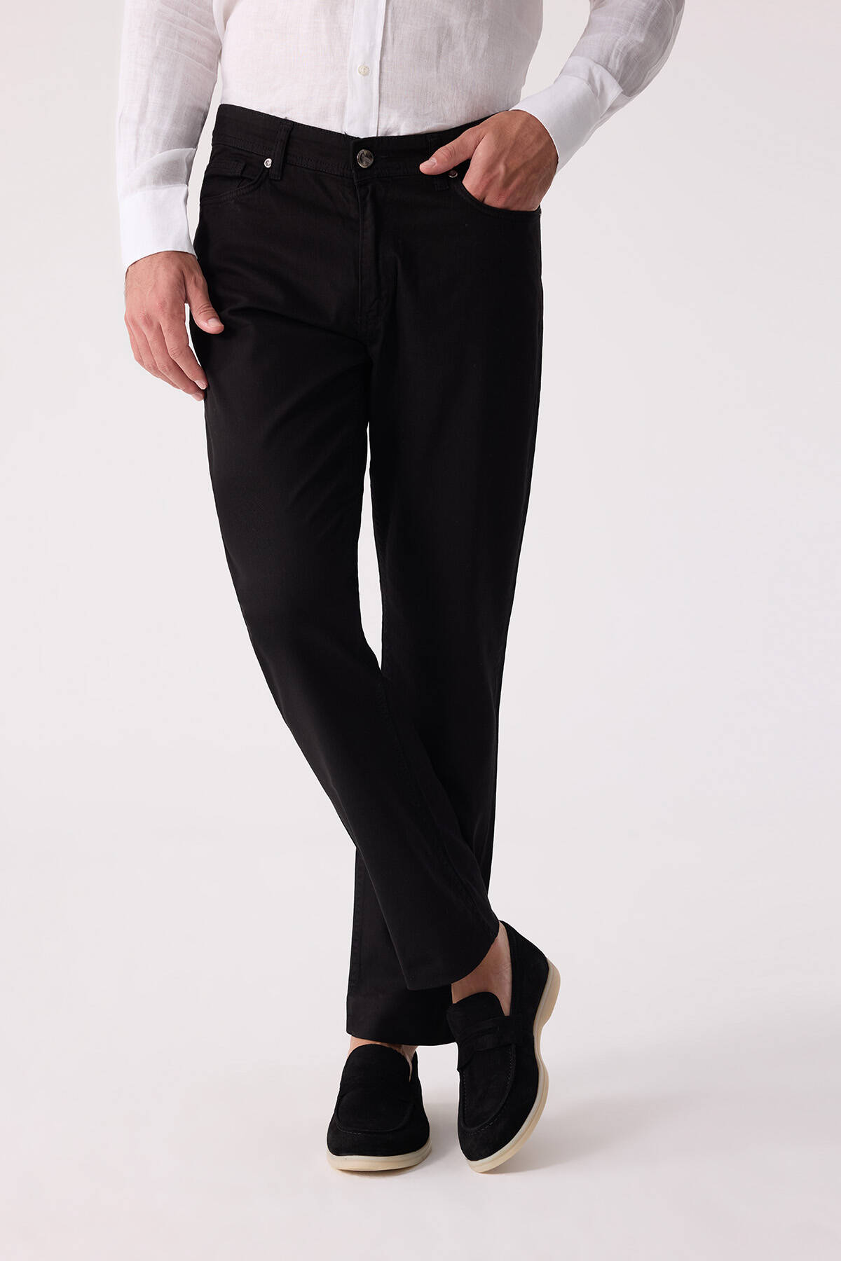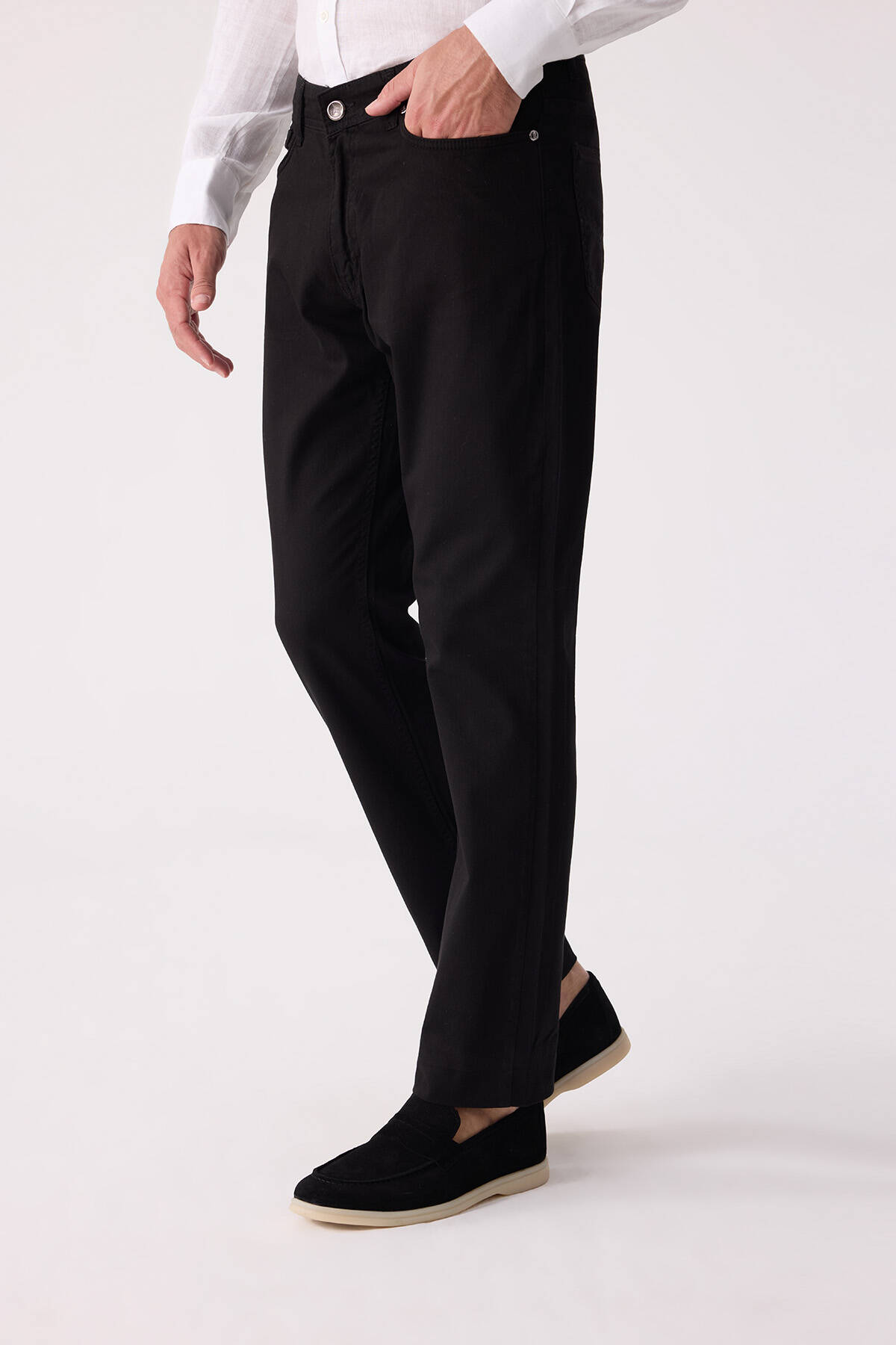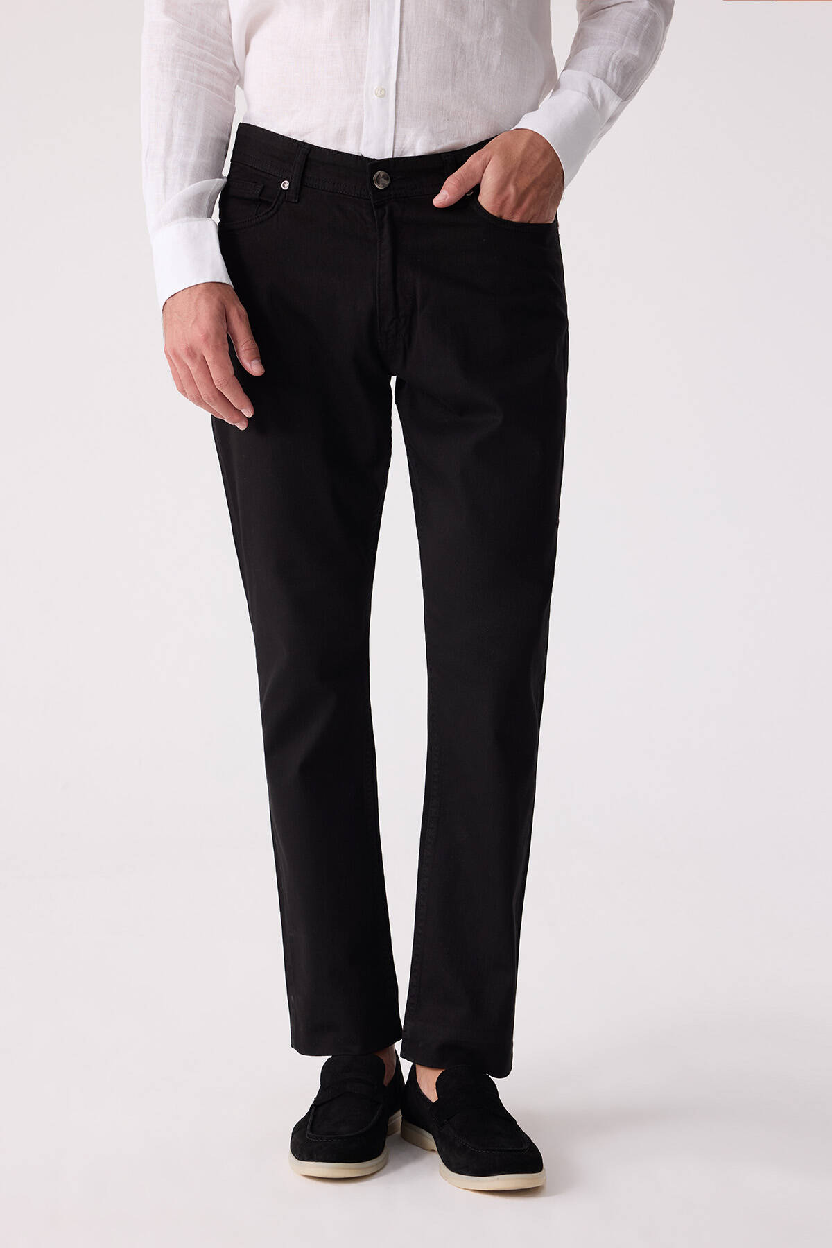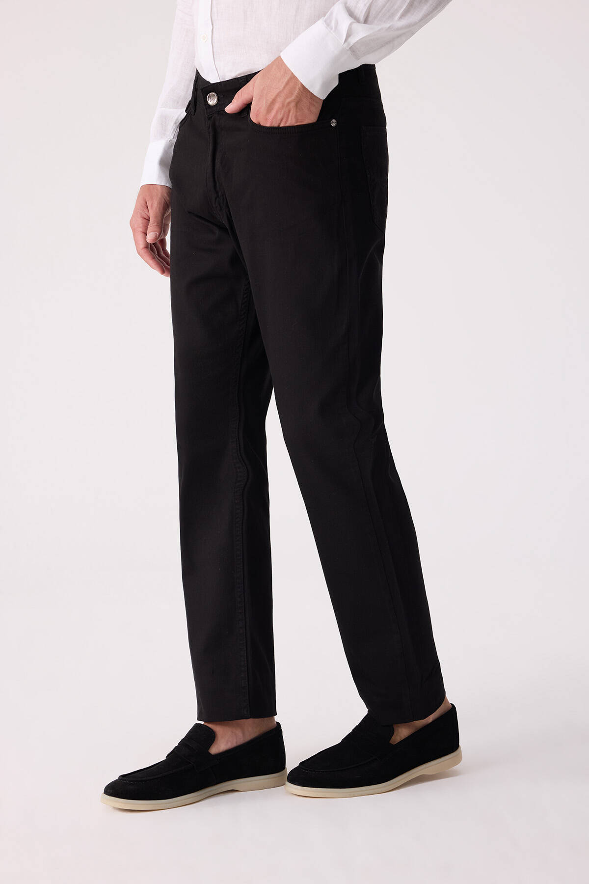 Erkek Siyah Slim Fit Üst Cep Kanvas Pantolon