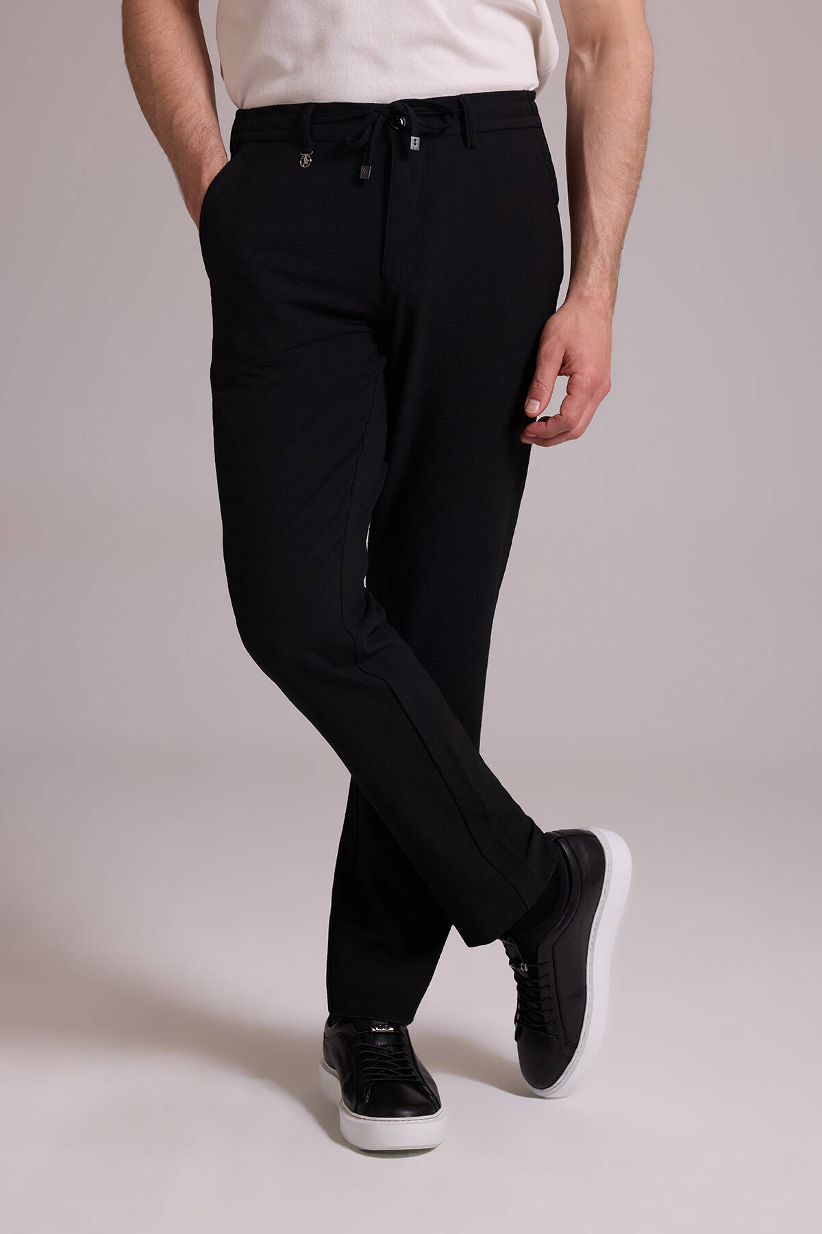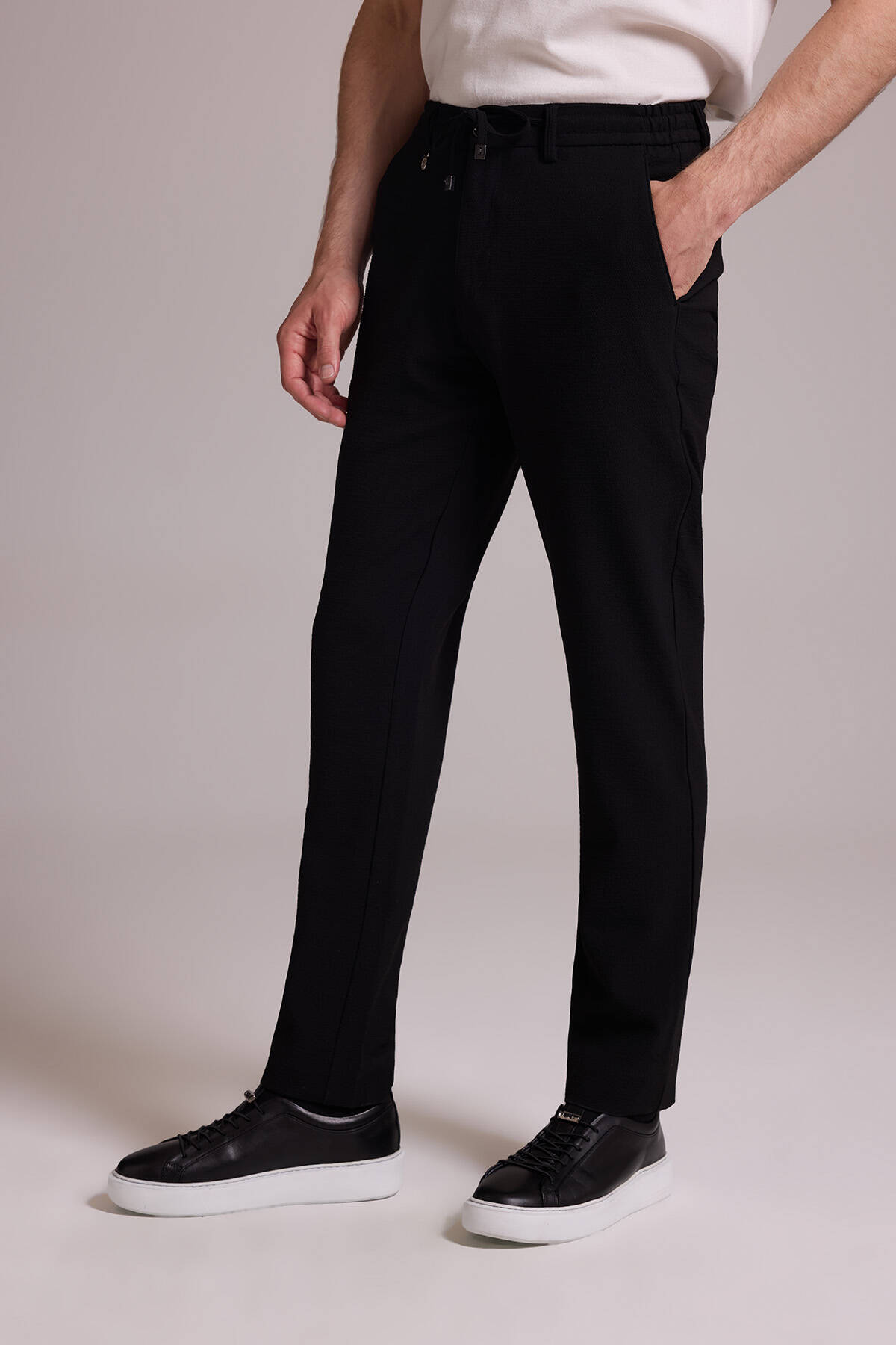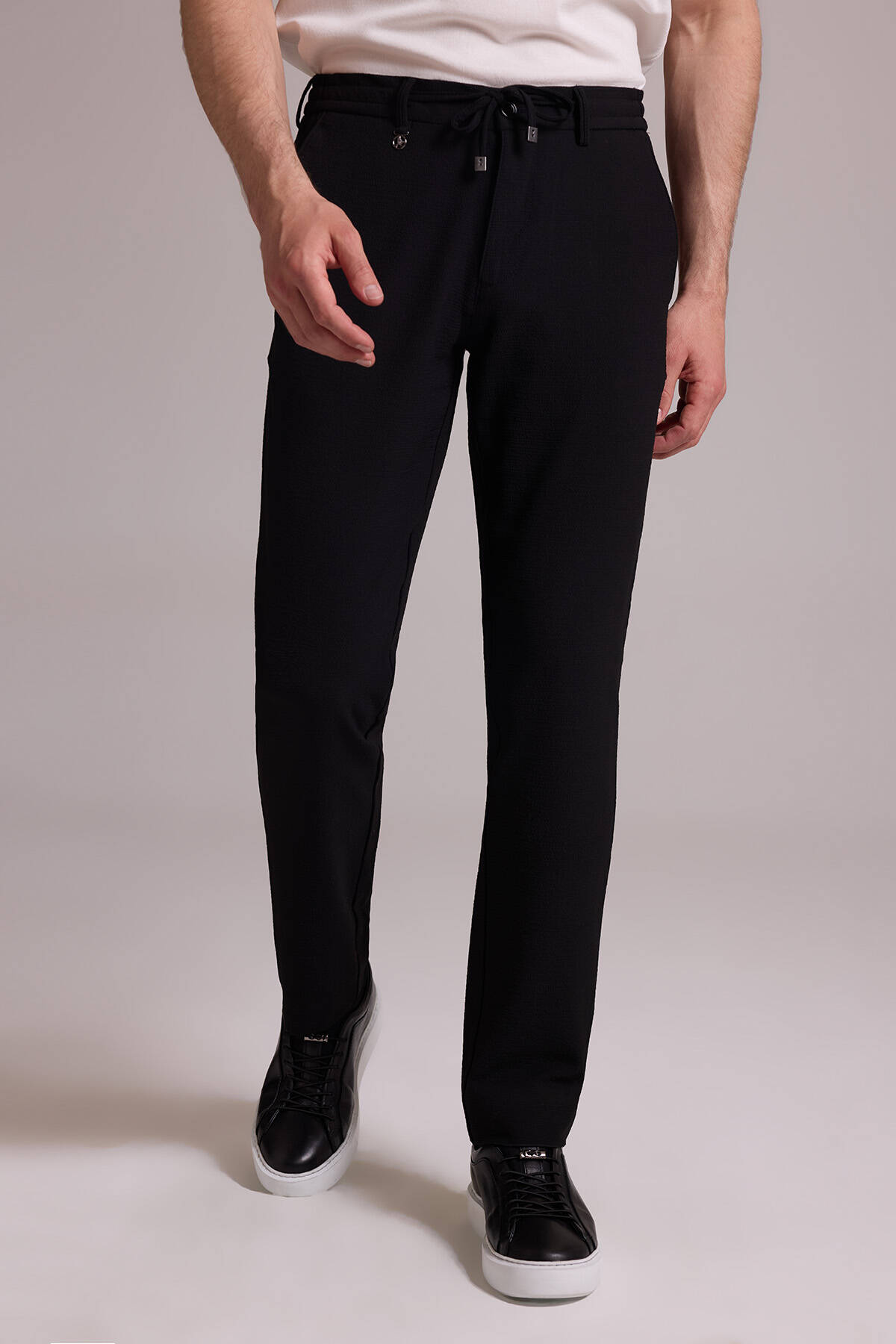 Erkek Siyah Slim Fit Yan Cepli Jogger Pantolon