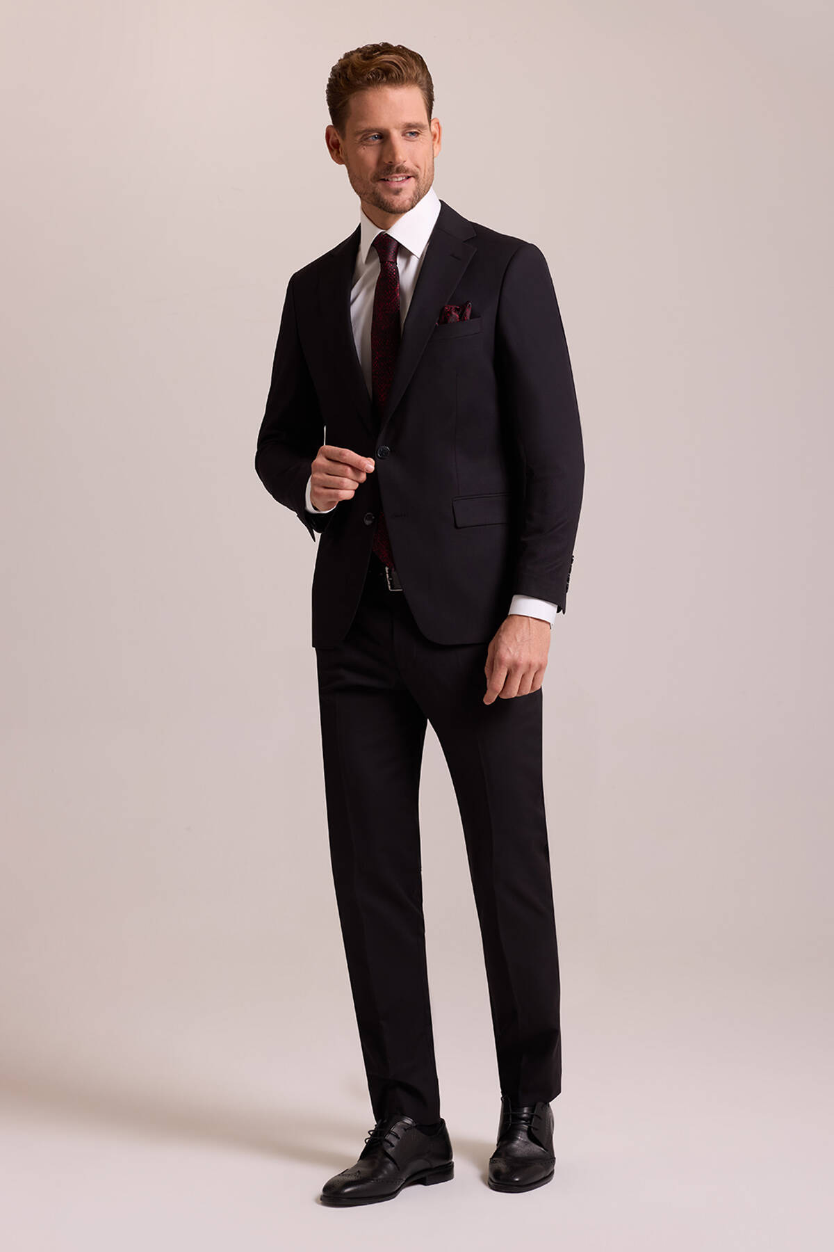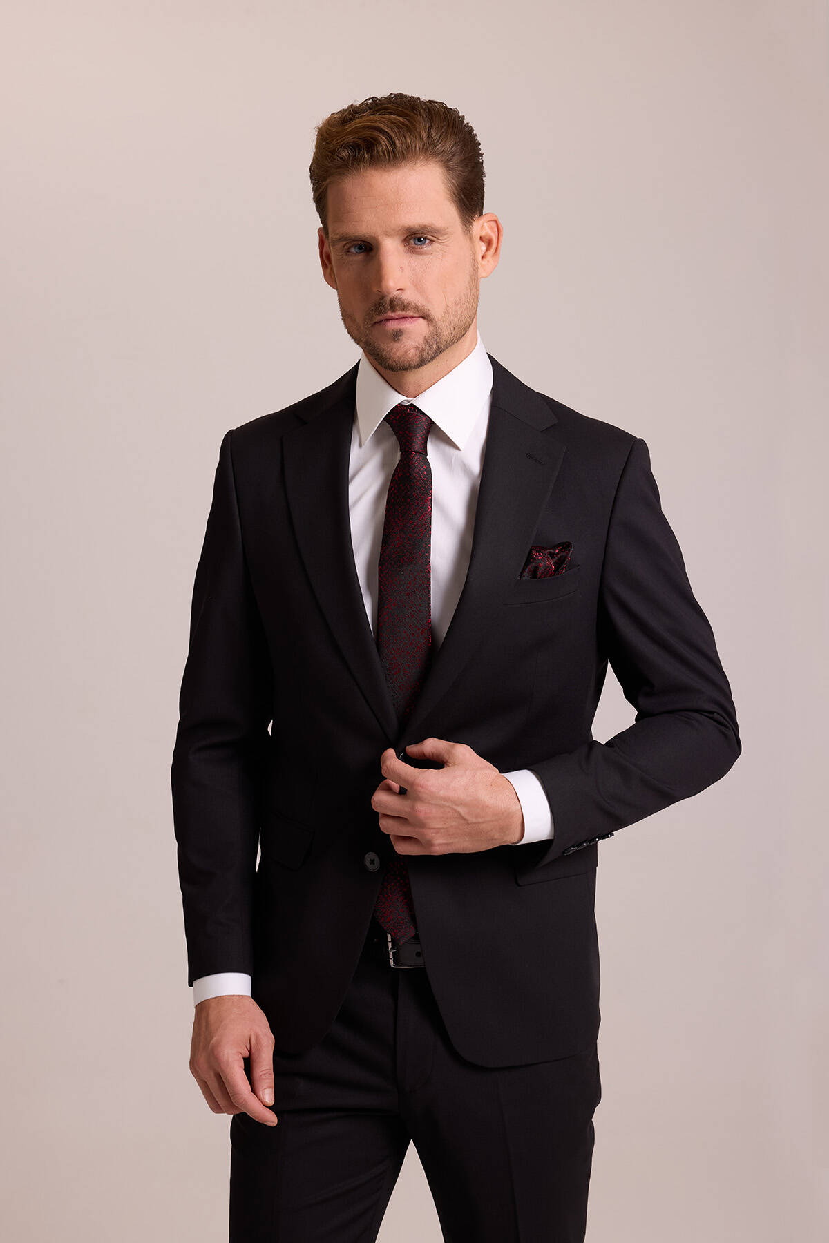 YSF Giyim Erkek Siyah Slim Fit Yünlü Likralı Mono Yaka Takım Elbise, profesyonel veya resmî çevrelere uygun sofistike bir görünüm sunar. Online mağazaya özel bu şık takım elbise, kalitesini ilk bakışta belli eden Lane Bugella yün kumaş ile tasarlanmıştır. Yıllar boyunca pürüzsüzlüğünü koruyabilen premium dokusu, İtalyan zarafetini gardırobunuza taşır. Slim fit erkek takım elbise, kusursuz bir uyum vadeder. Keskin ve karizmatik silüeti ile modern erkek giyim trendlerini zarif bir şekilde yakalamanızı sağlar. Mono yaka kesimi, klasik giyimden ilham alan zamansız çizgisi ile öne çıkar. Çift yırtmaç ve kaliteli dikiş detayları ise YSF Giyim’in birinci sınıf terzilik becerilerini kanıtlar.Siyah düz renk olarak tasarlanan slim fit takım elbise, tüm resmî durumlar veya iş amaçları için idealdir. Uzun yıllar gardırobunuzun favori ürünü olmaya aday iki parçalı takım, klasik giyim tarzını zahmetsizce yakalamanızı sağlar. Modern kesimi ise yenilikçi erkek giyim trendlerini yakalamanıza fırsat sunar. Cesur ve güçlü bir duruş için beyaz gömlek, bordo desenli kravat, cep mendili ve klasik ayakkabı ile kombinlenebilir. Bu şık siyah takım elbise ile YSF Giyim’in üst segment erkek giyim ürünlerini daha makul fiyatlarla deneyimlemek için mükemmeldir. Siz de online mağazaya özel en şık takım elbise modellerini sipariş ederek YSF Giyim’in ayrıcalıklı dünyasına adım atın!