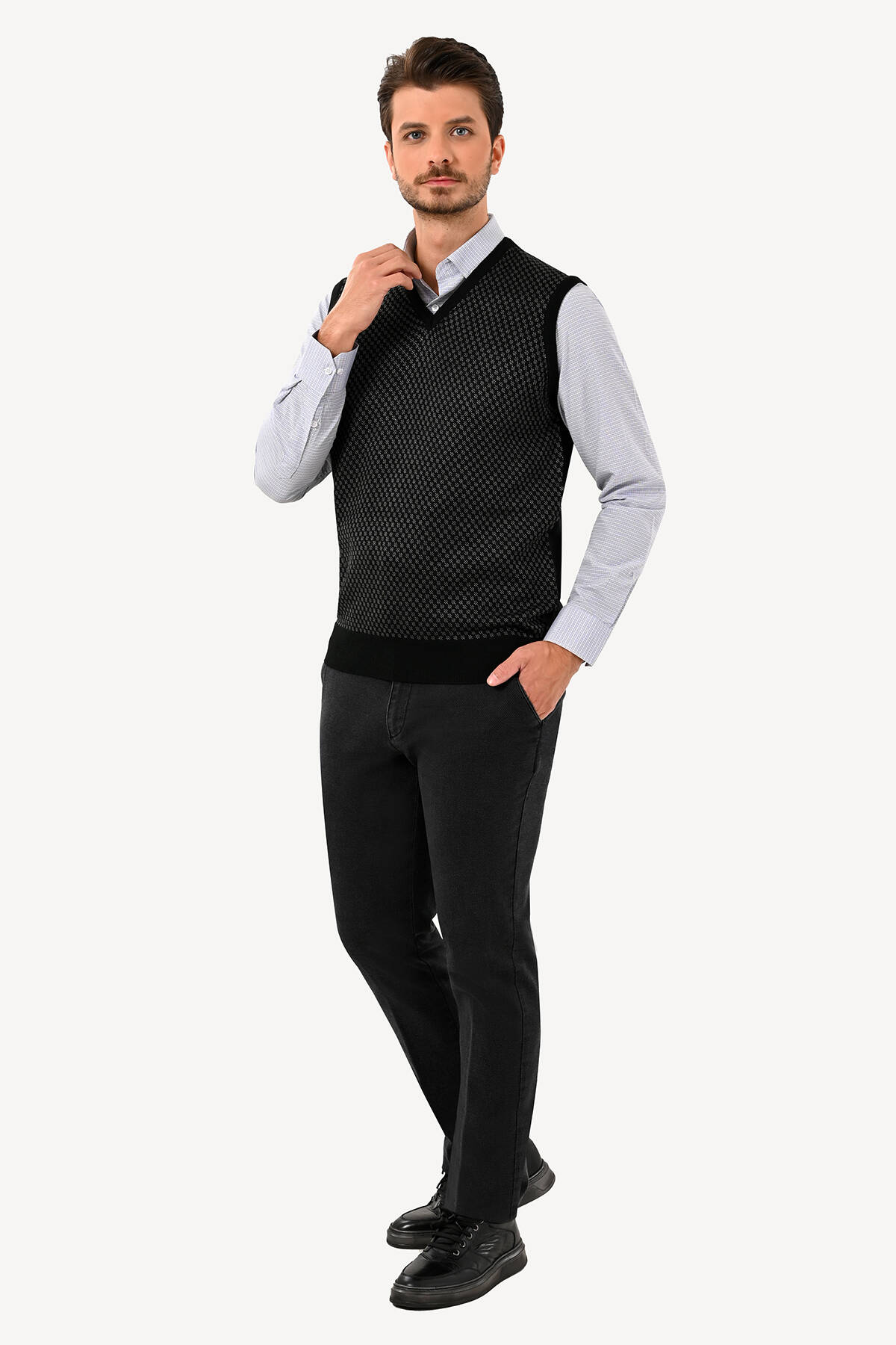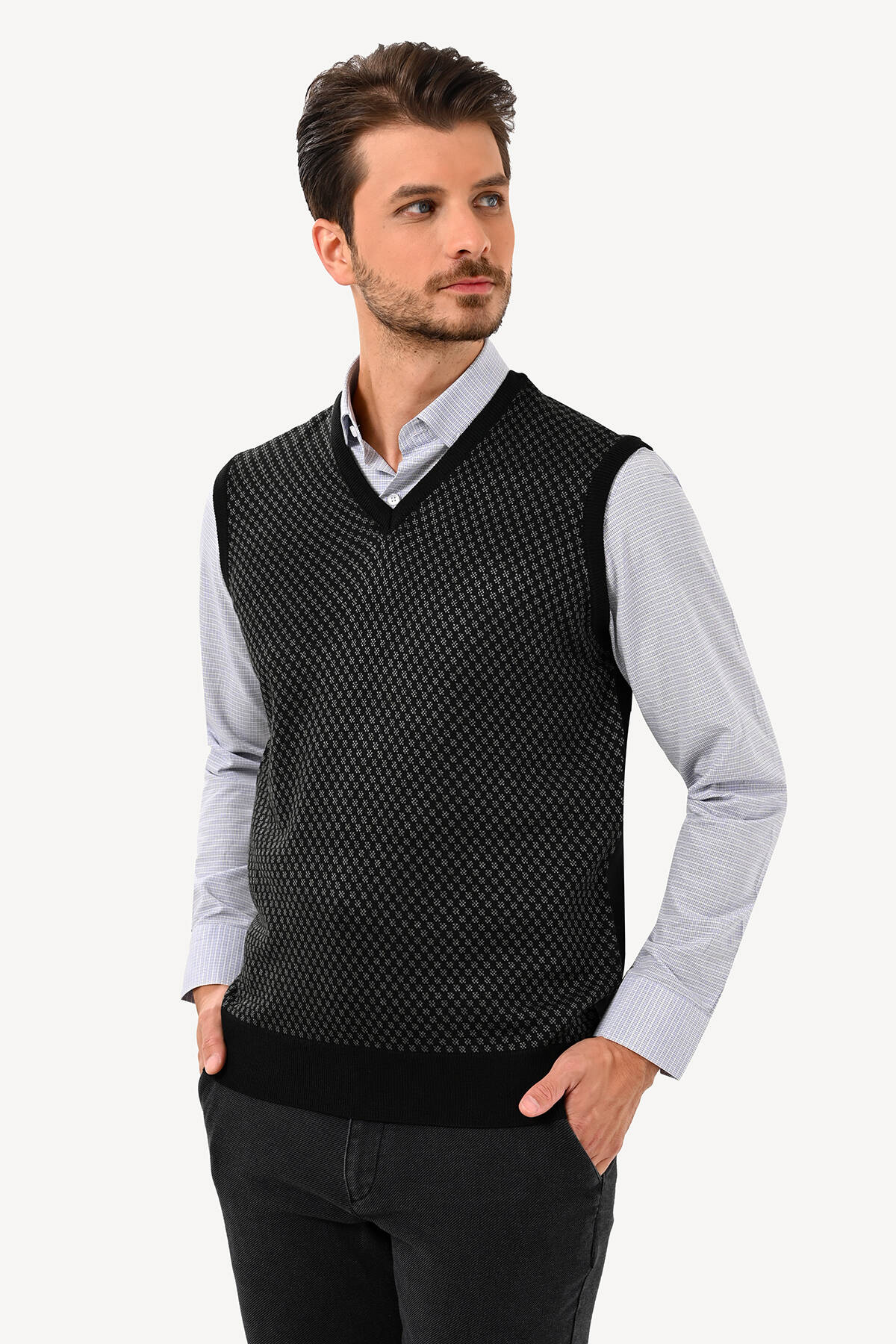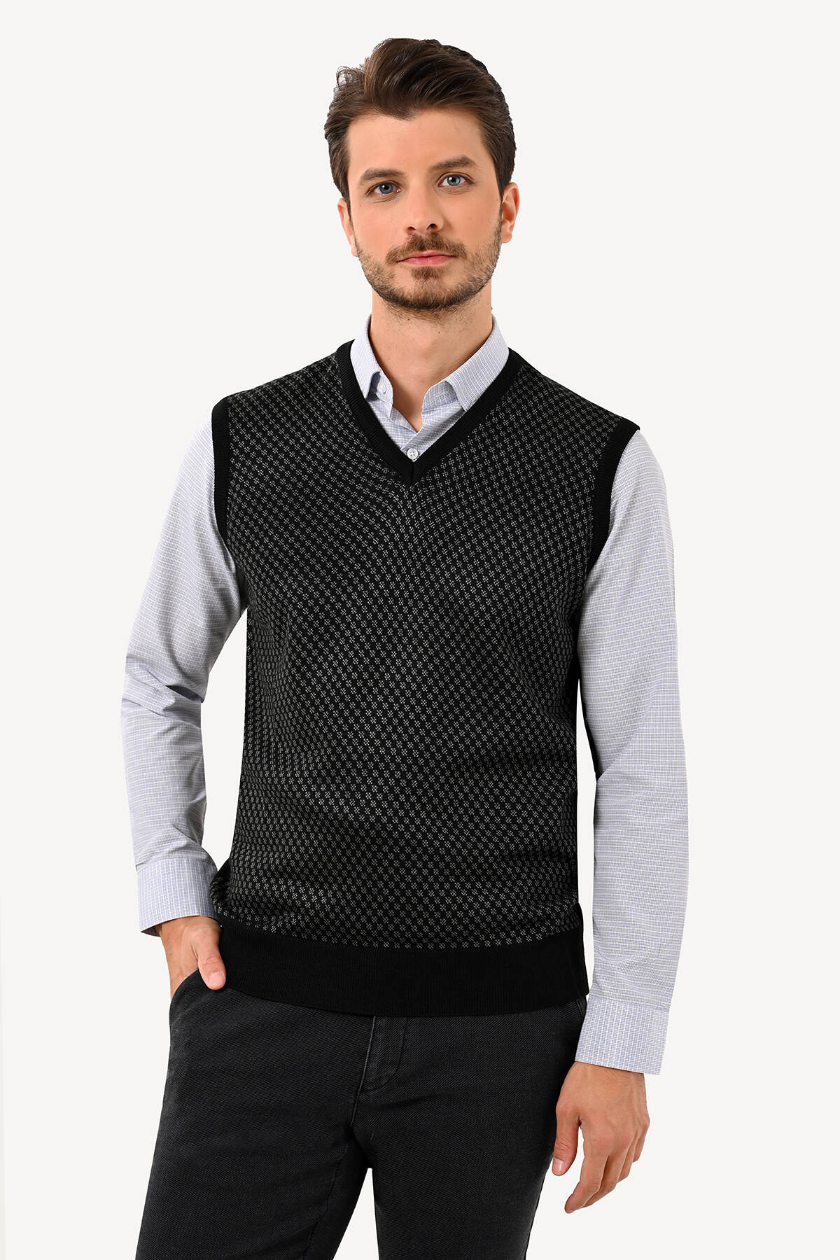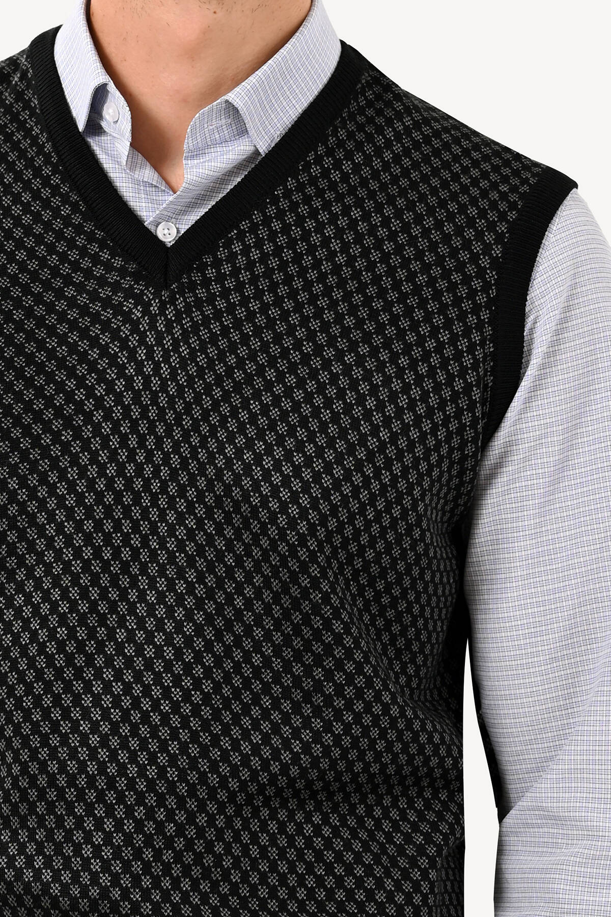 Erkek Siyah Süveter Klasik Desenli
