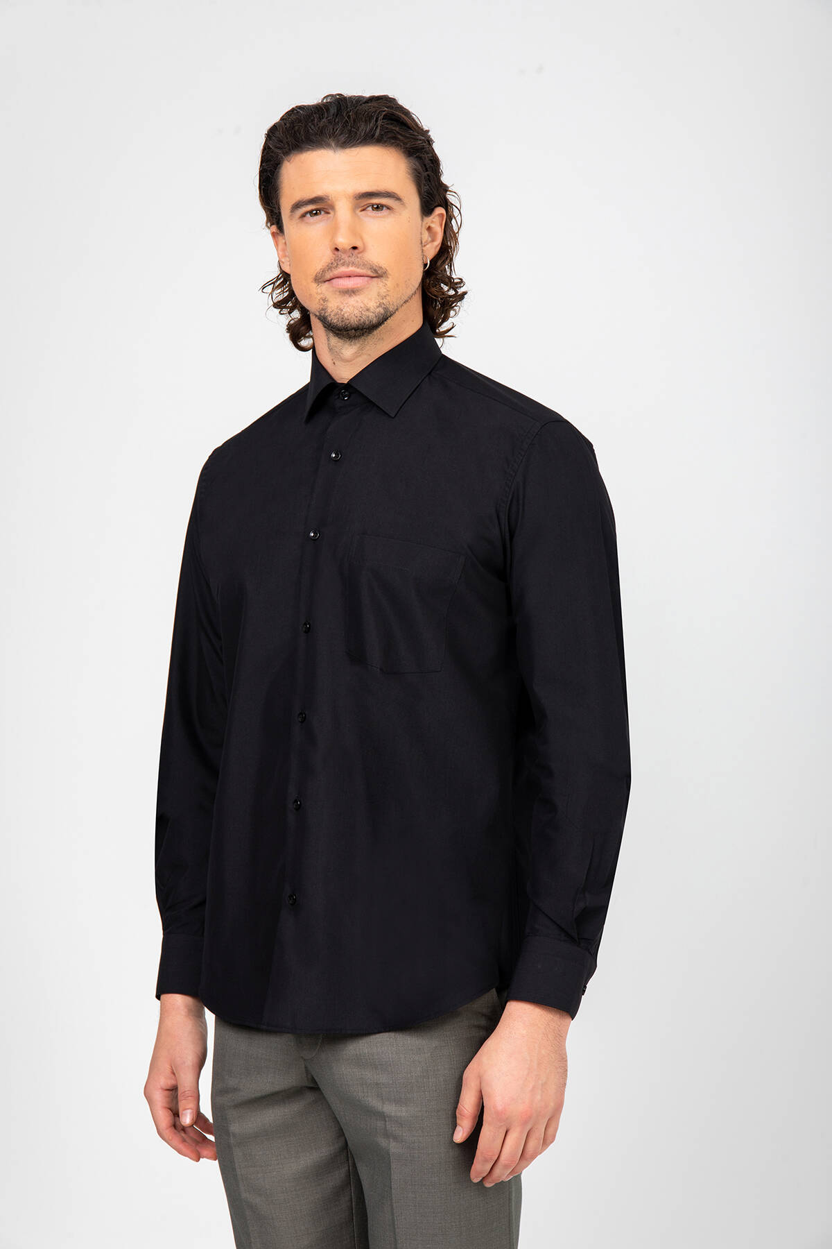 Gelince Haber VerYSF Giyim Erkek Siyah Uzun Kol Klasik Pamuklu Gömlek, minimalist estetiği yansıtan, zamansız ve çok yönlü özellikleri ile her stil sahibi erkeğin gardırobunda yer alması gereken bir parça. Geleneksel terziliğe selam niteliğinde tasarlanan ve hassas detaylara sahip siyah erkek gömlek, kapsül gardırop için idealdir. %100 saf pamuklu kumaşı, hafif olmasına rağmen gömleğin keskin silüetini korur. Klasik kesim ve yaka detayları tasarımın zamansız çizgisini zarif bir şekilde kanıtlar. Uzun kollu erkek pamuk gömlek, 5XL bedene kadar uzanan oldukça geniş yelpazesi sayesinde seçkin bir stilin herkes için ulaşılabilir olmasını sağlar.