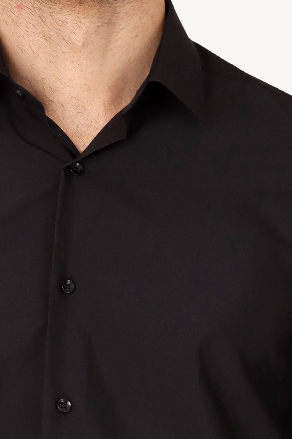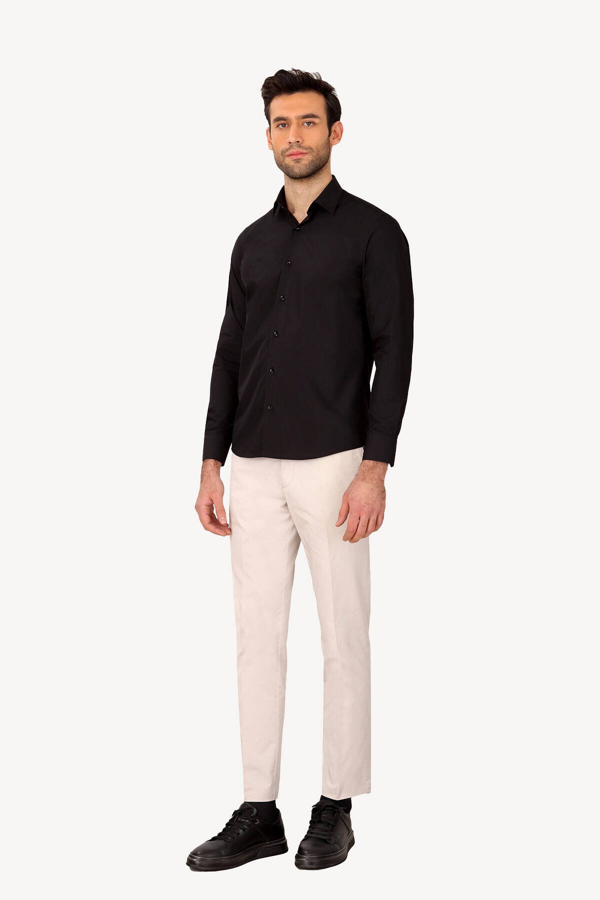 Erkek Siyah Uzun Kol Slim Fit %100 Pamuk Gömlek