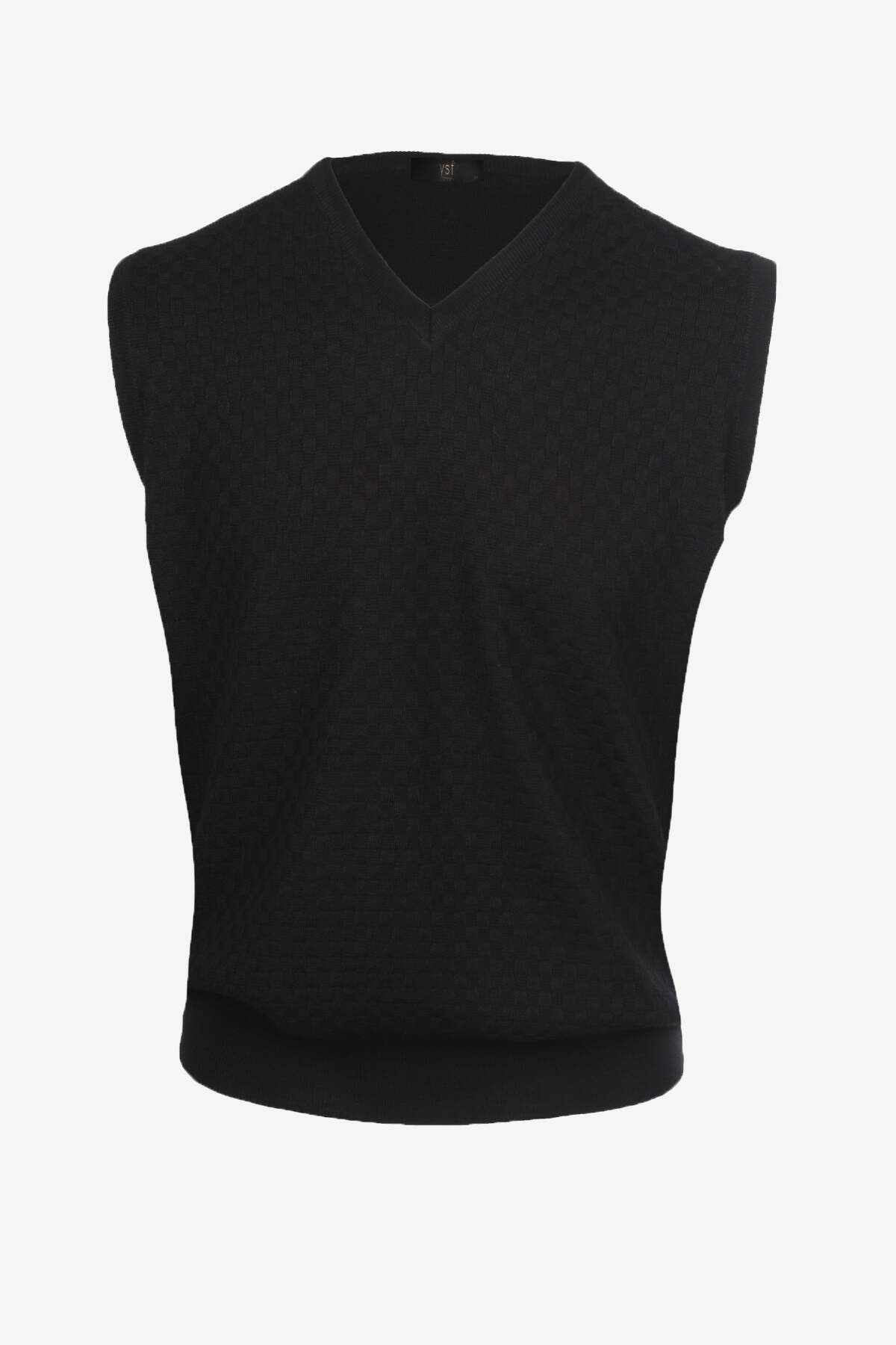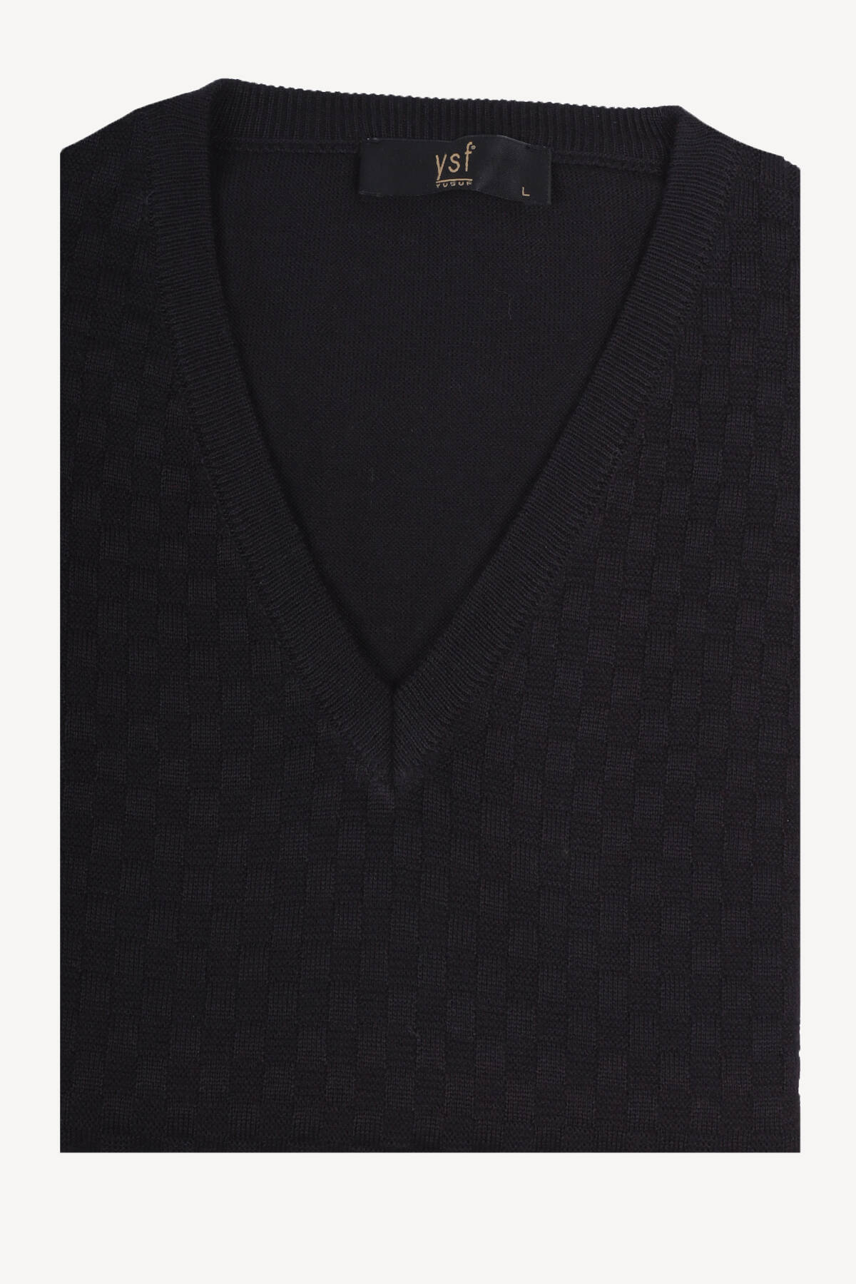 Erkek Siyah V Yaka Desenli Klasik Triko Süveter