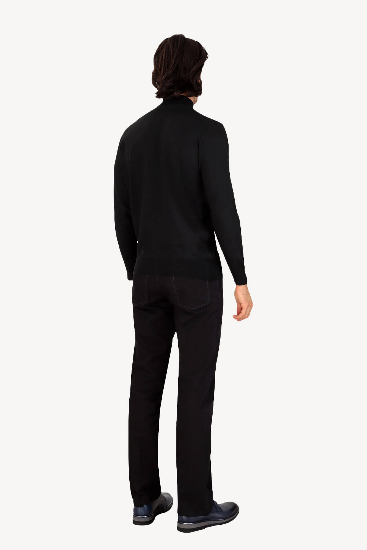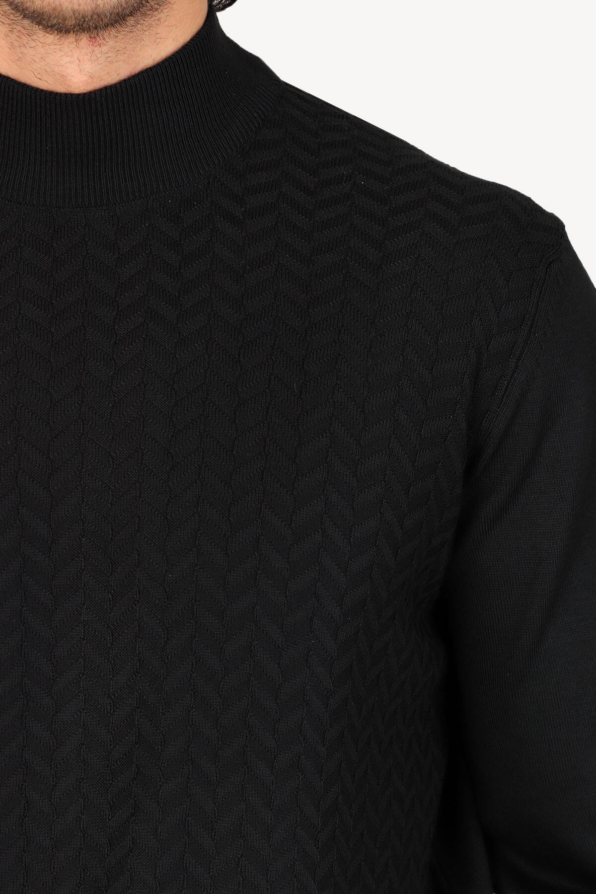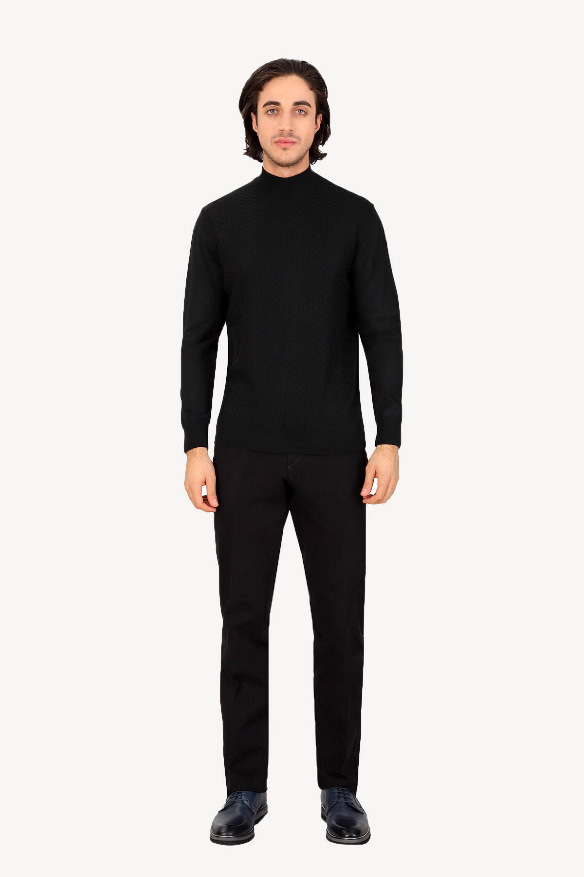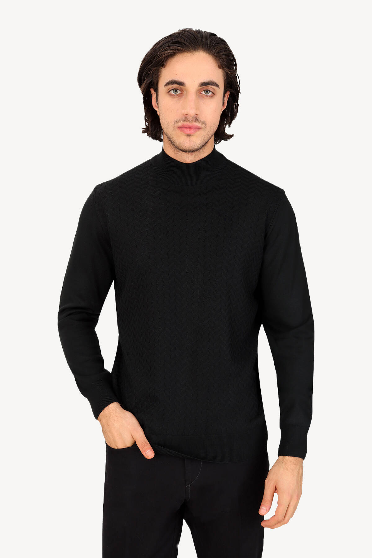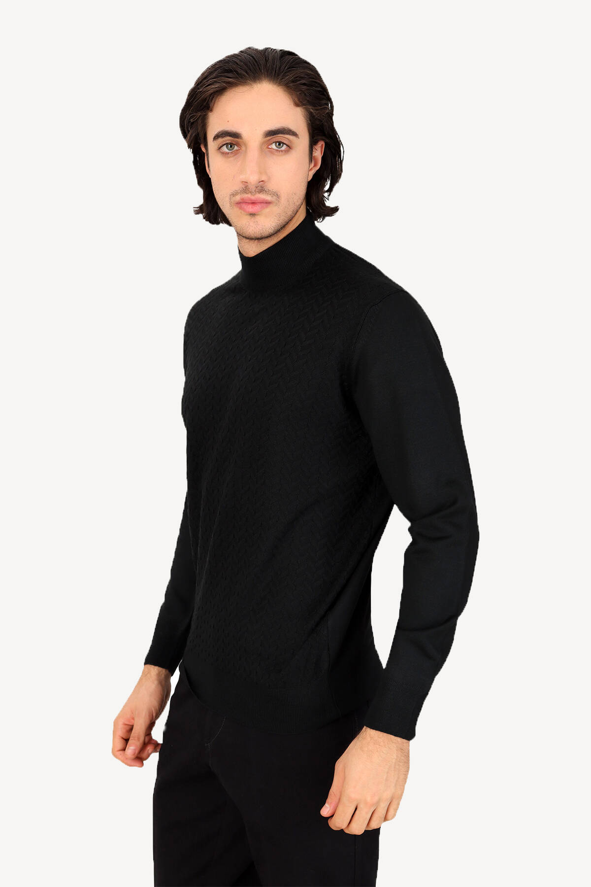 Erkek Siyah Yarım Balıkçı Yaka Desenli Klasik Triko