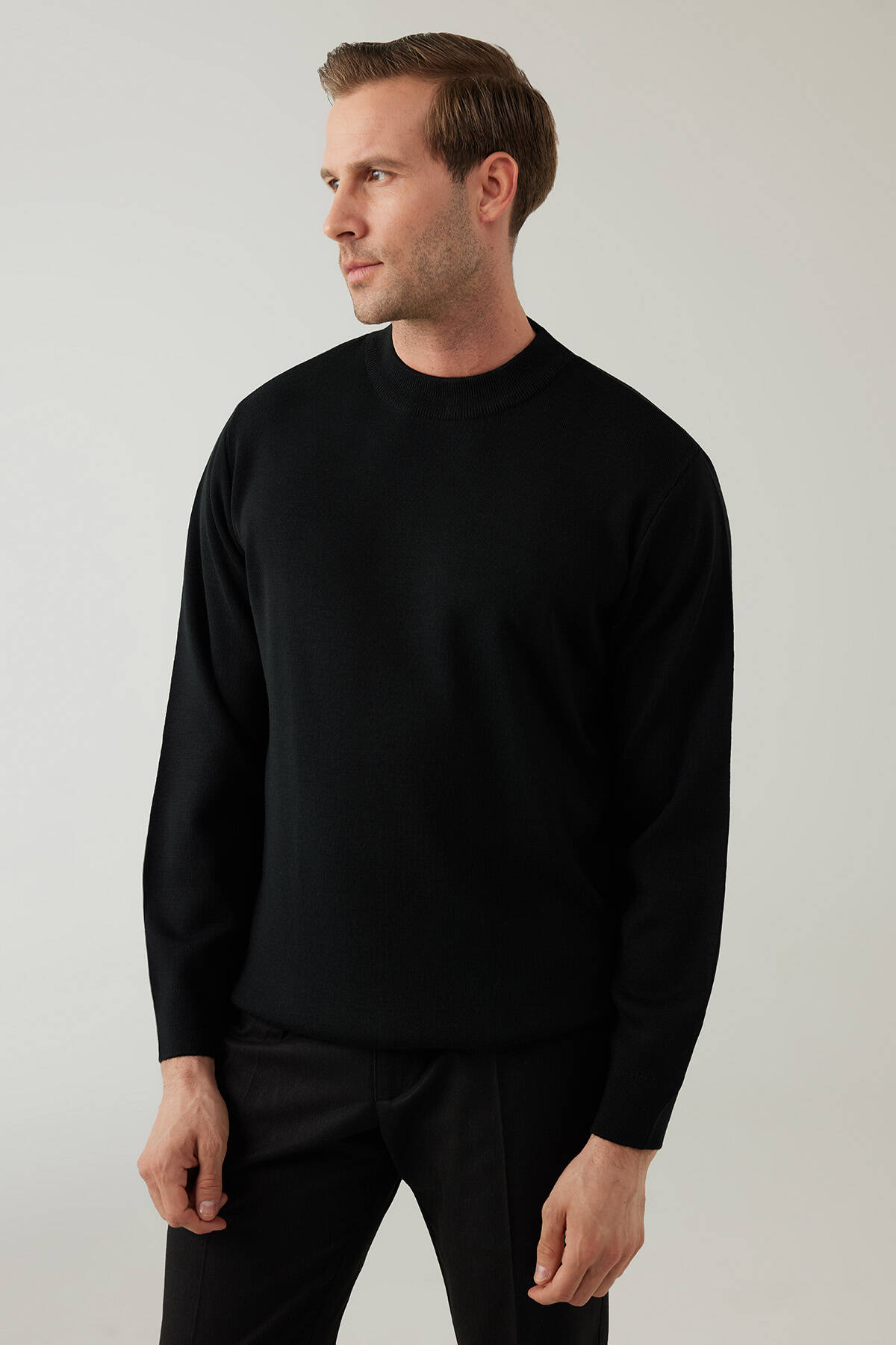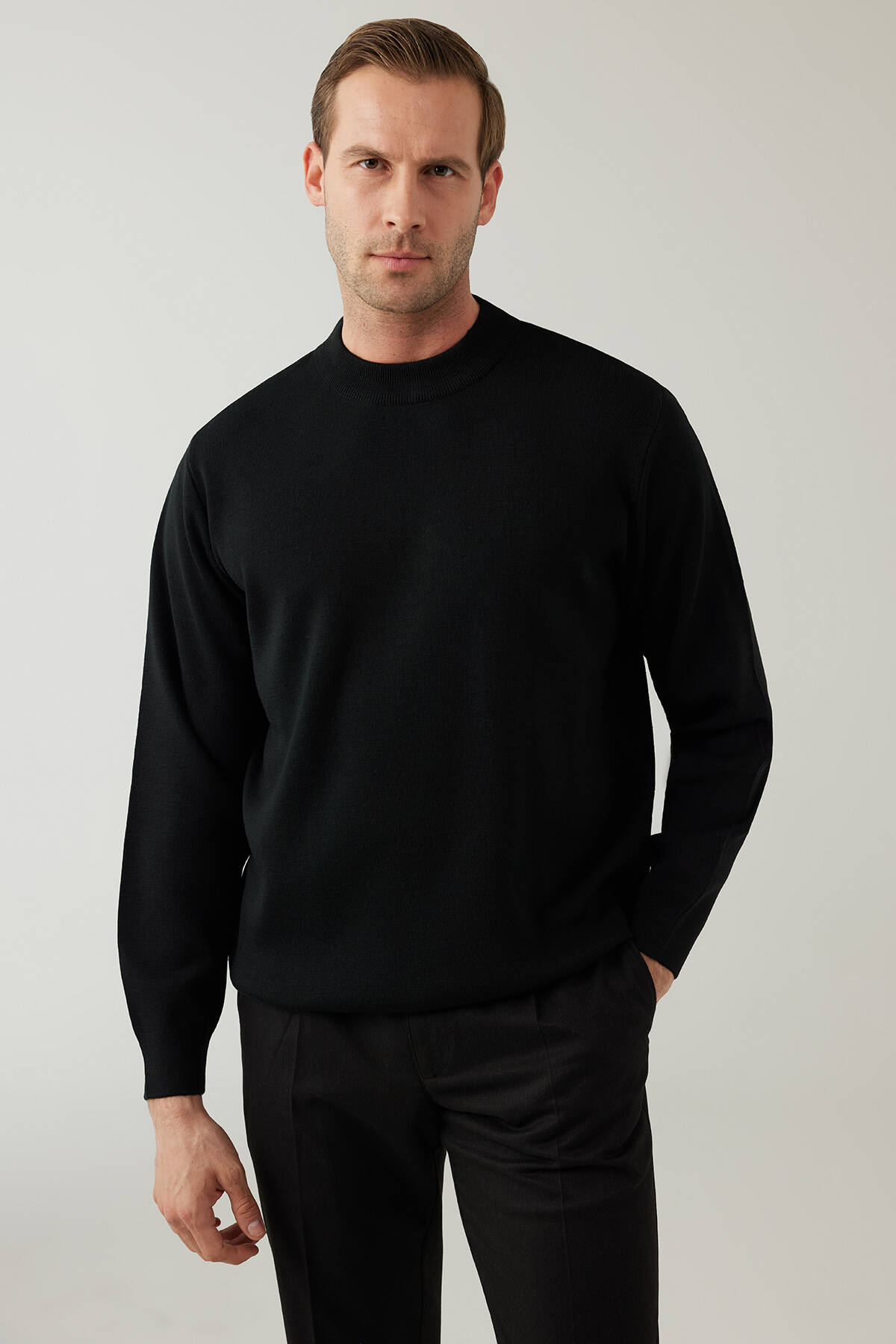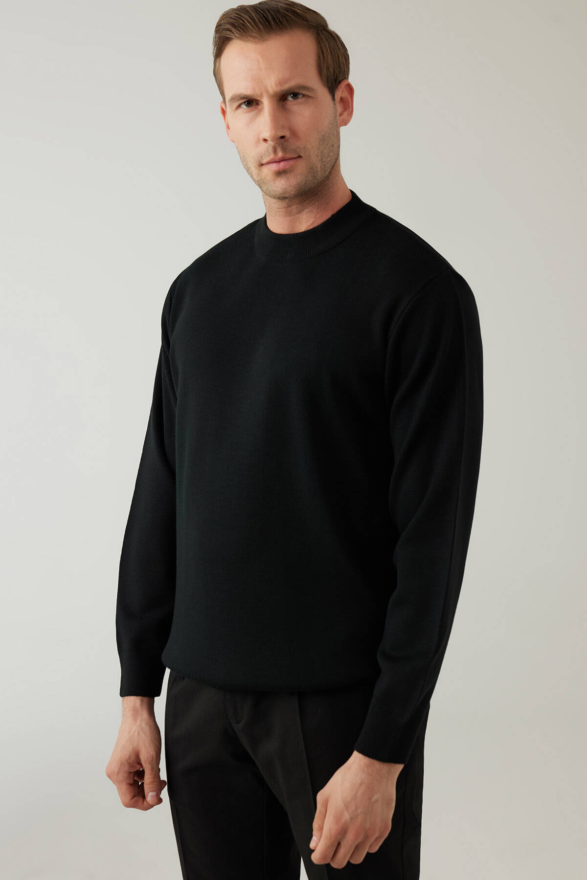 Erkek Siyah Yarım Balıkçı Yaka Yünlü Triko