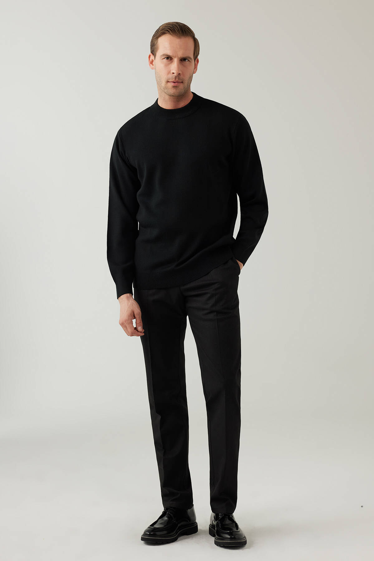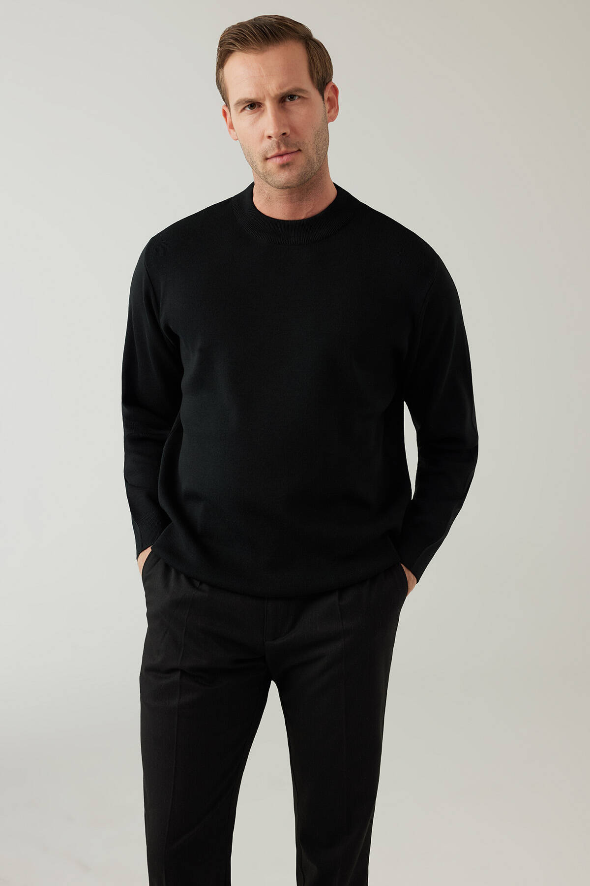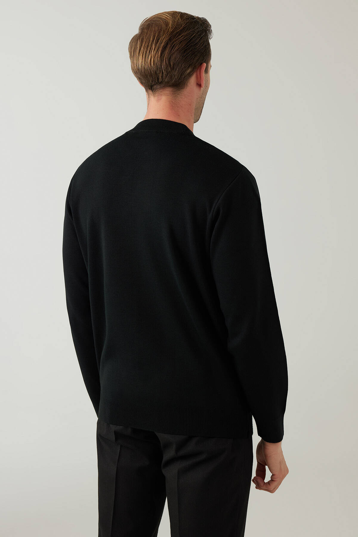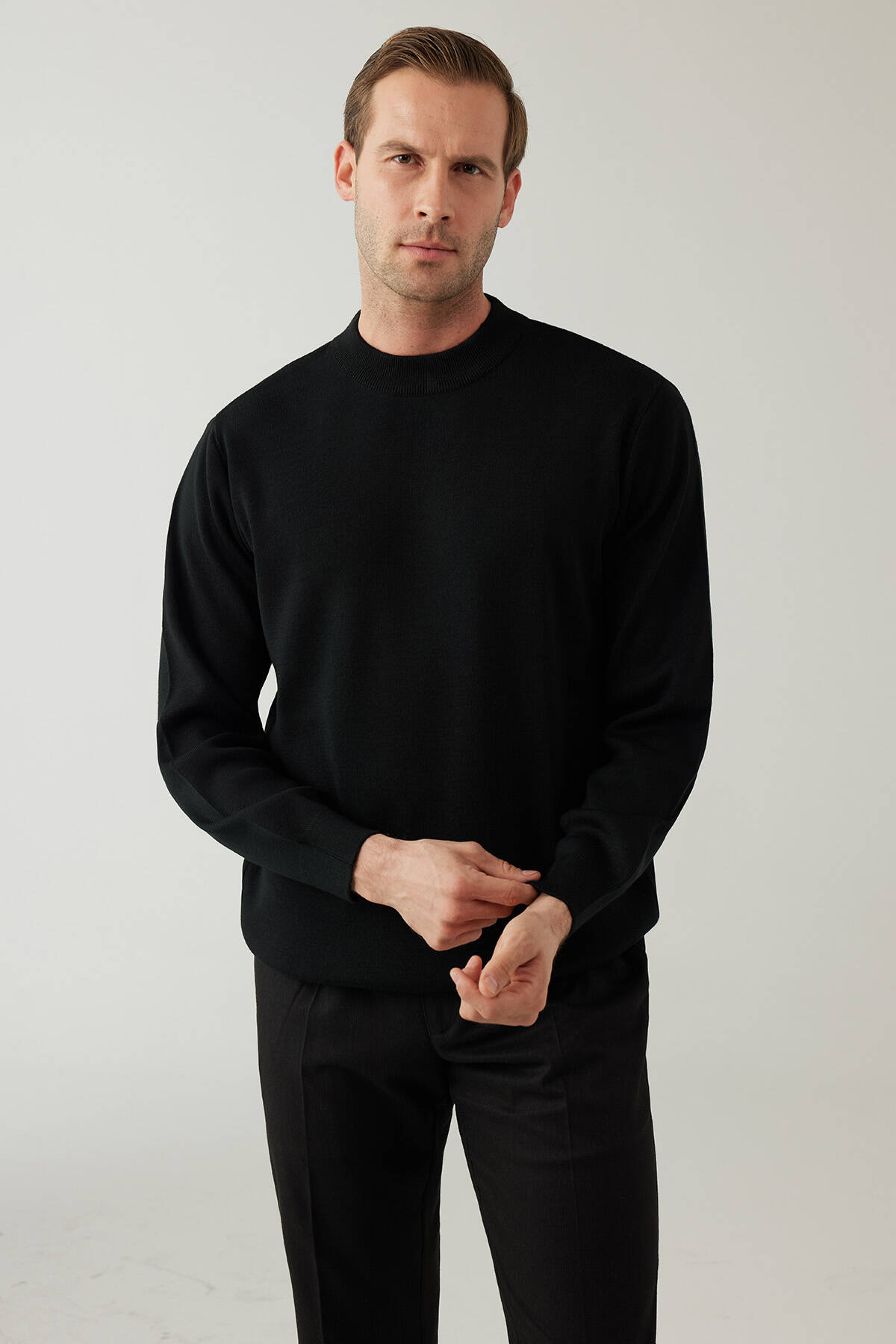 Erkek Siyah Yarım Balıkçı Yaka Yünlü Triko