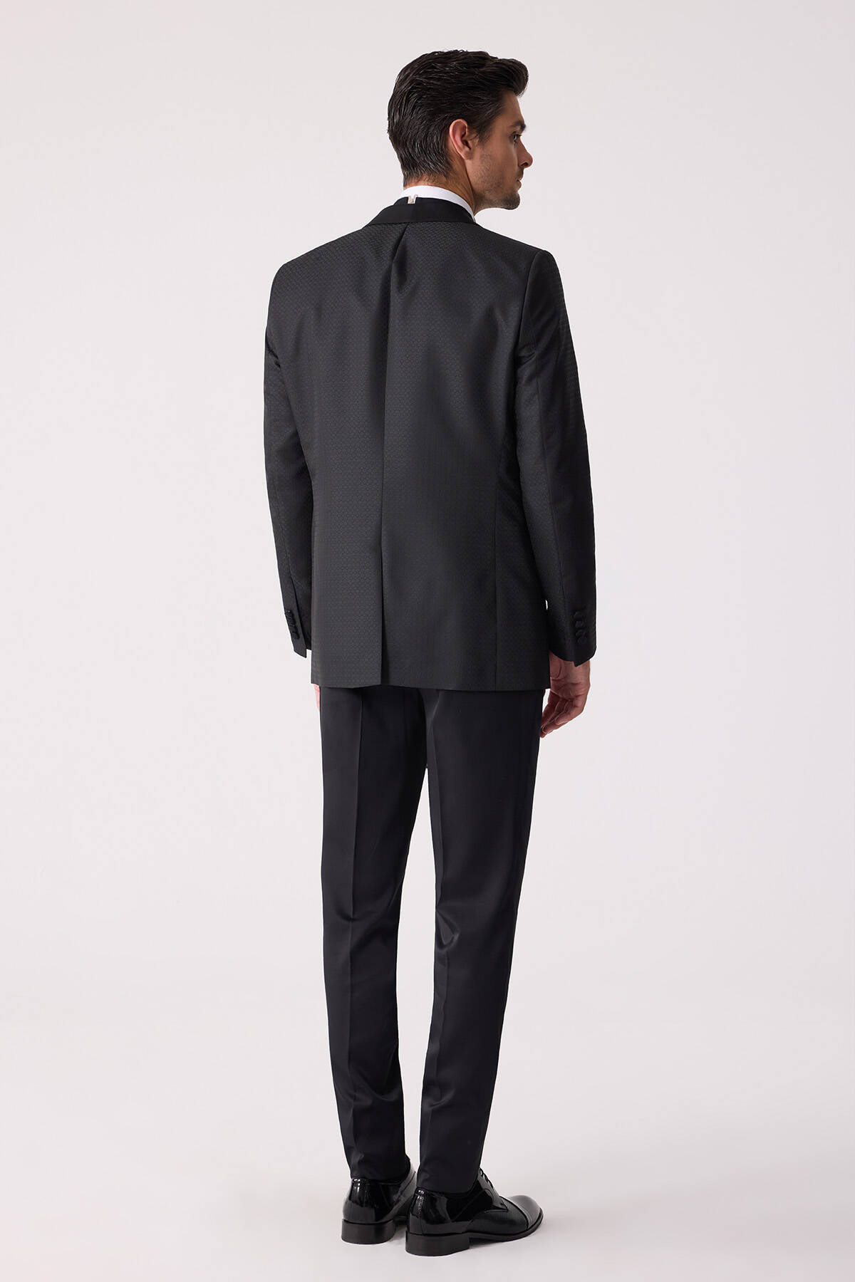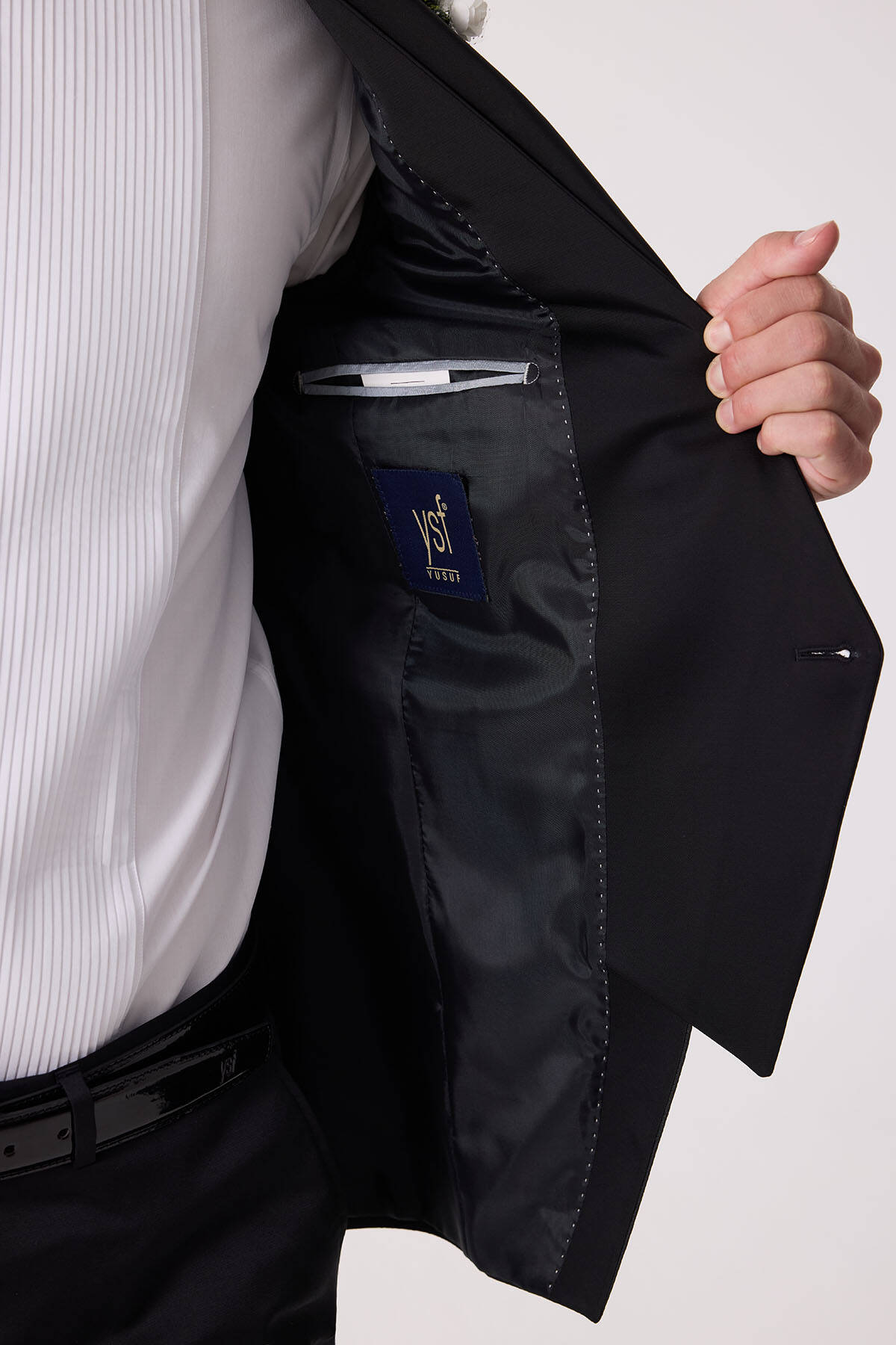 Smokinin belden aşağı doğru daralan ve göğsü vurgulayan slim fit formuna eşlik eden tek yırtmaç detayları şık bir silüet yaratır. Siyah rengin zamansız ve kusursuz şıklığını yansıtan damatlık, özel günlerin yanı sıra iş ve sosyal ortamlarda iddialı bir stil oluşturur. Kreasyonunun gözdesi olan bu özel damatlığı beyaz slim fit gömlek modelleri ile kontrast oluşturacak şekilde eşleştirebilirsiniz. Klas ve seçkin bir görünüm için rugan klasik ayakkabı, deri kemer ve sofistike bir cep süsü tercih edebilirsiniz. YSF Giyim, lüks ve iddialı takım elbise modelleri için İstanbul mağazasına özgü değişim ve tadilat ayrıcalıkları sunar. Siz de ısmarlama takım elbise şıklığını özel fiyatlarla deneyimlemek için YSF Giyim damatlık koleksiyonunundan tarzınızı yansıtan en karizmatik modeli satın alabilirsiniz!