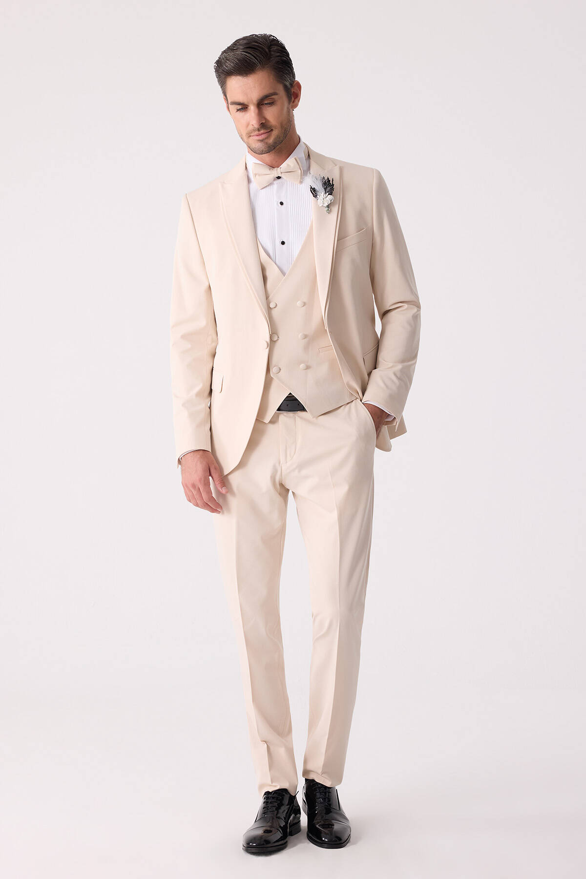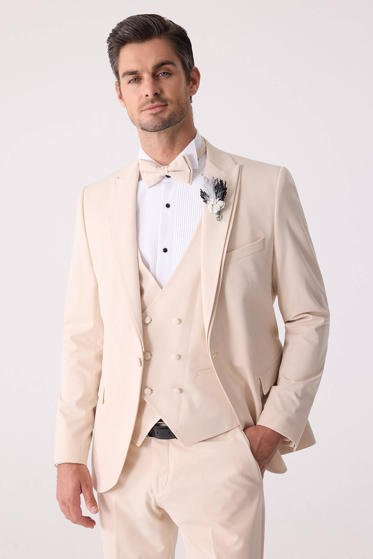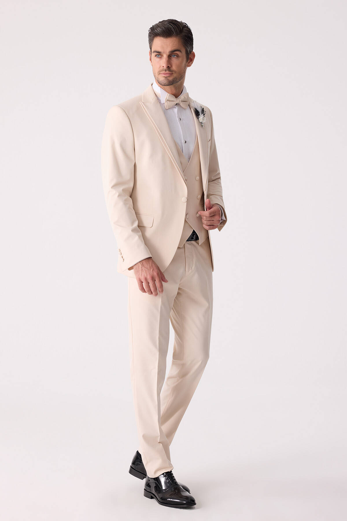 Erkek Slim Fit Sivri Yaka Yelekli Damatlık