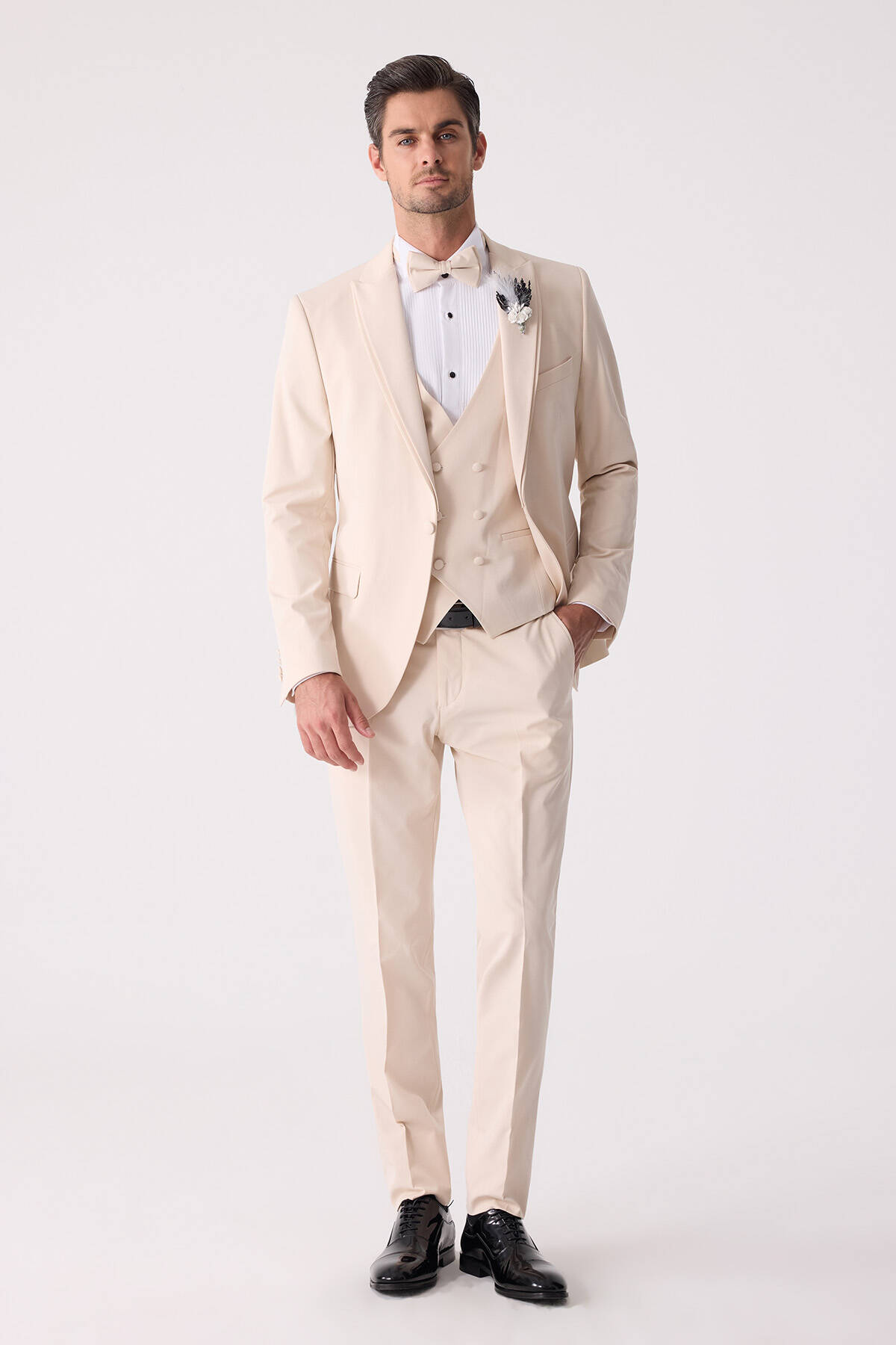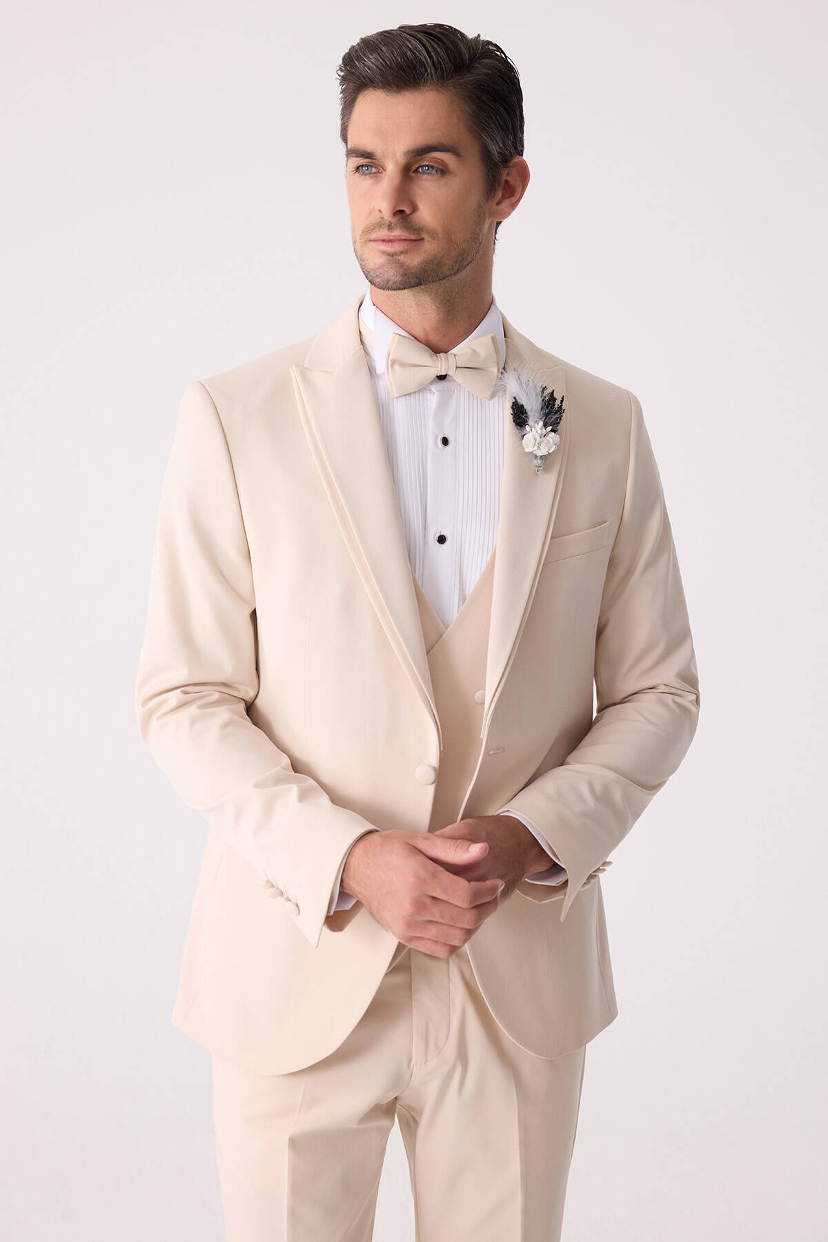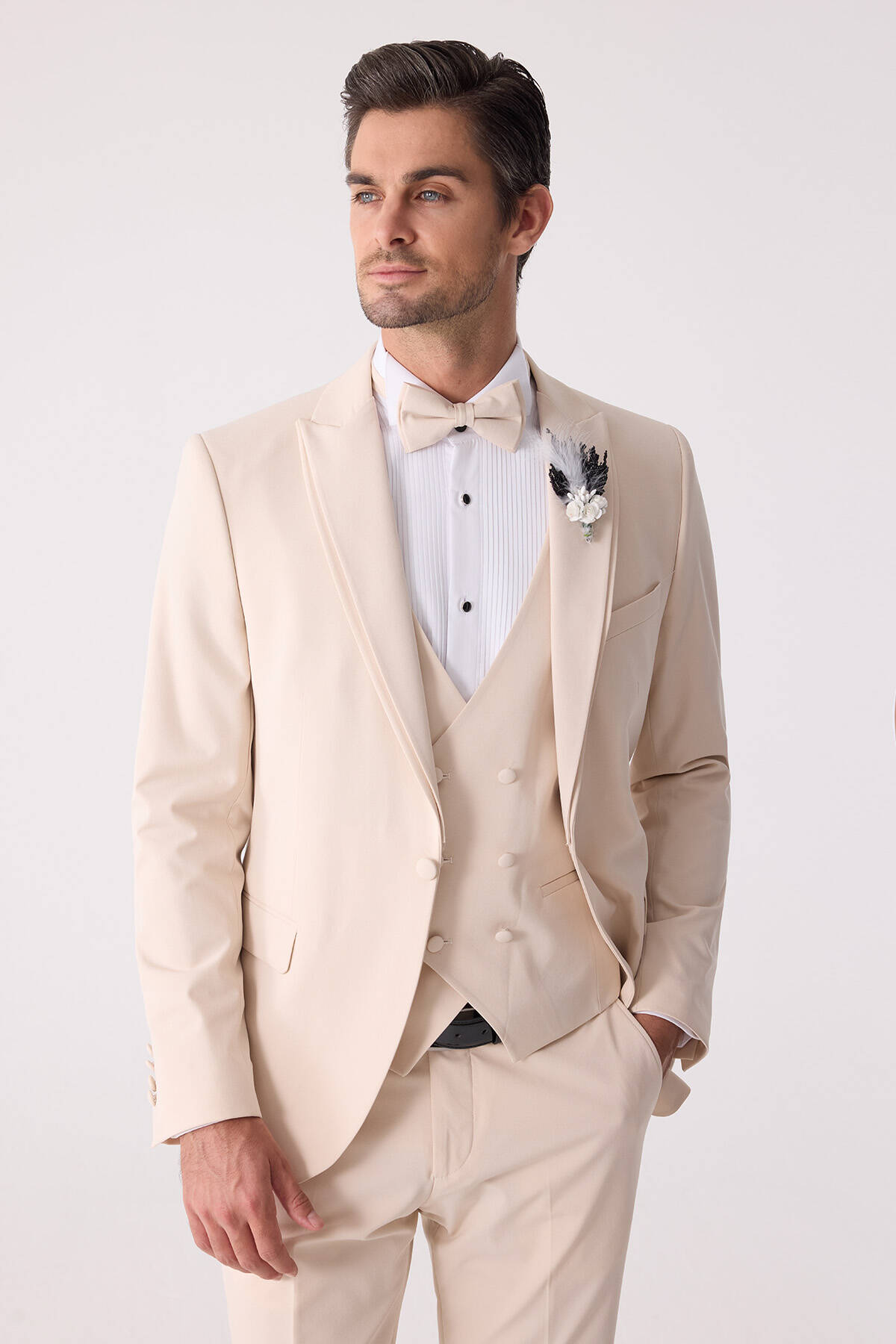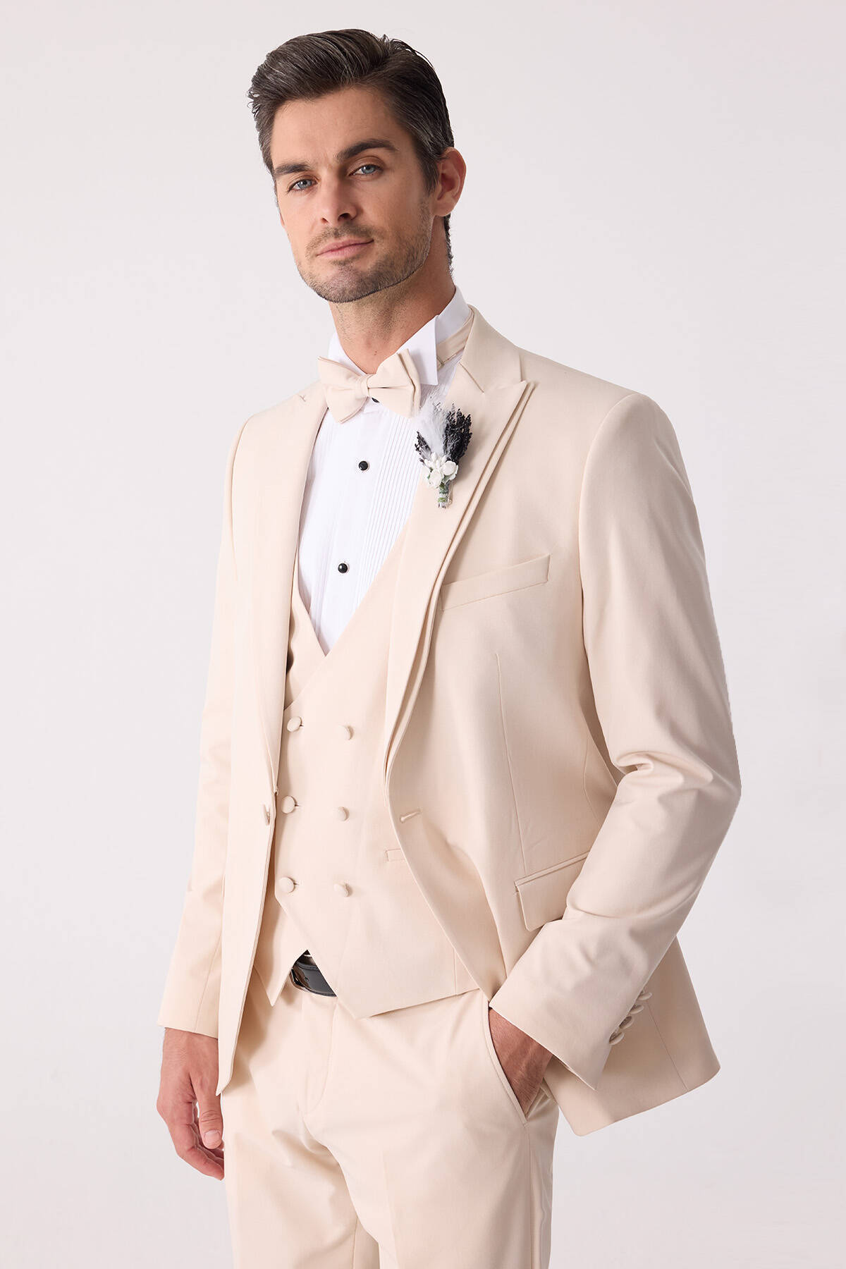 Erkek Slim Fit Sivri Yaka Yelekli Damatlık