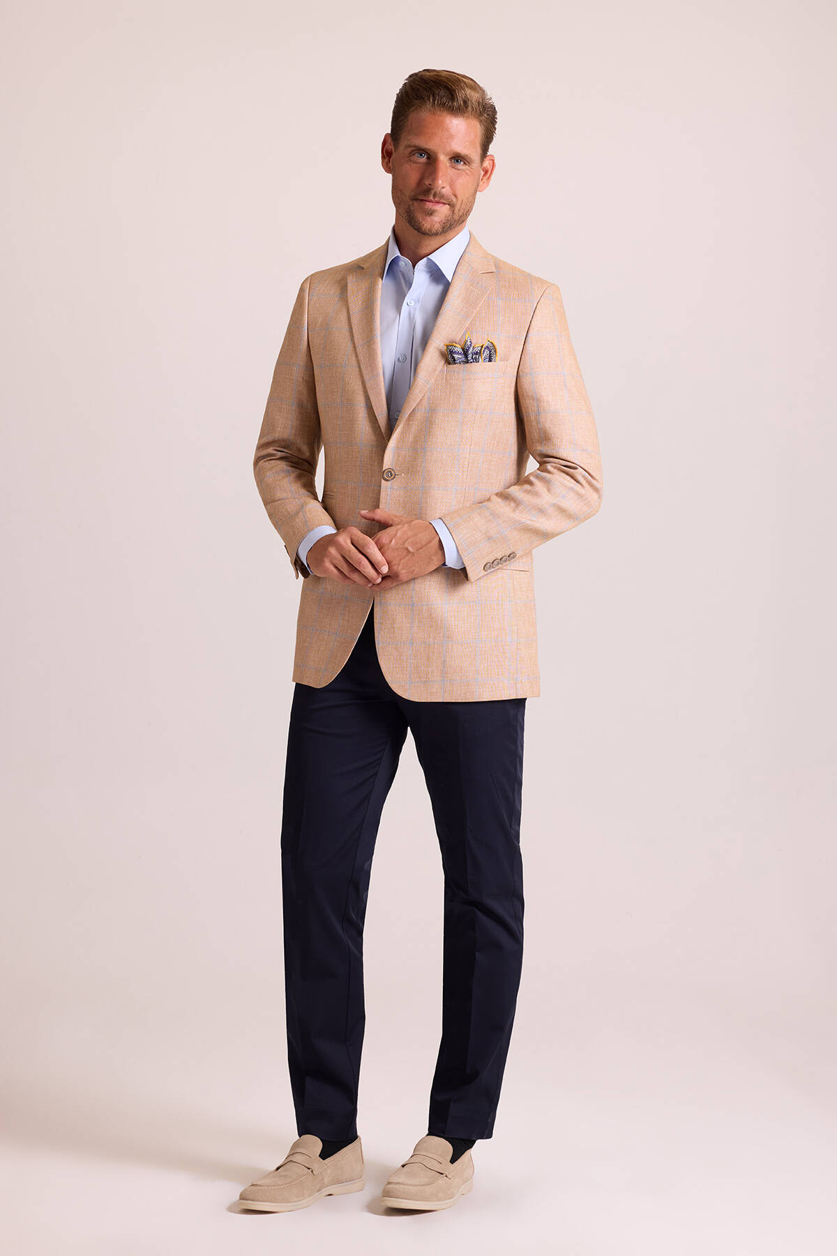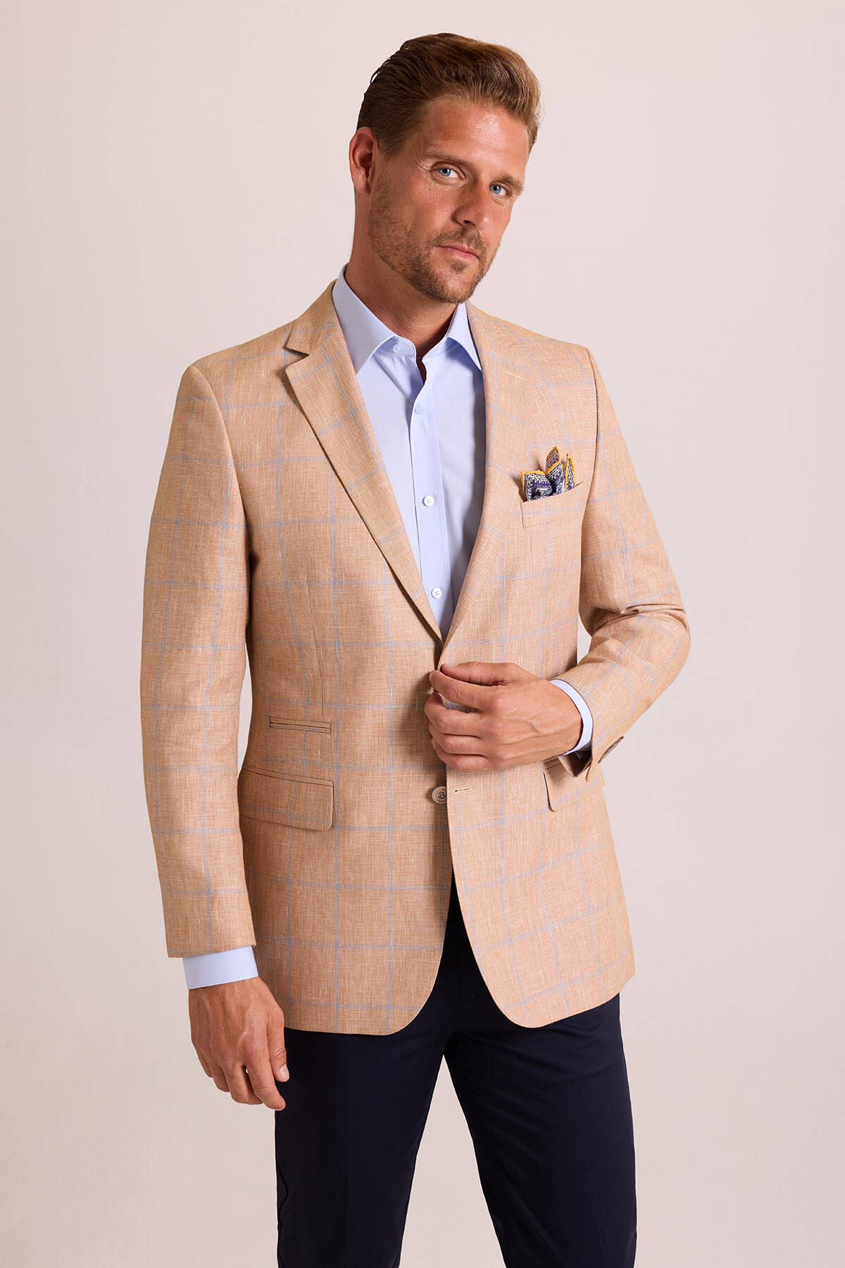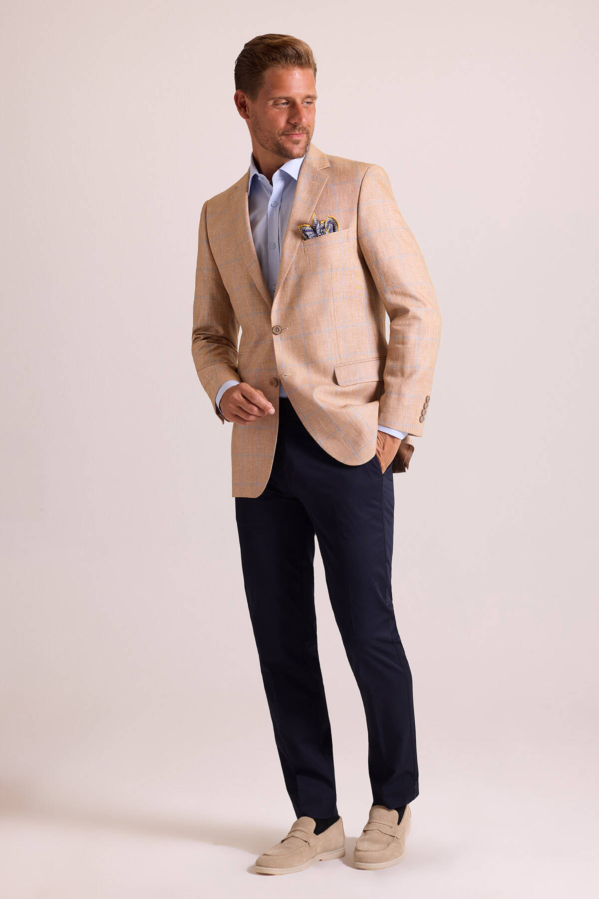 Bu zarif ekose desen ceket, çift düğmeli ve mono yakalı kesimiyle sportif-lüks kombinlerinize klas bir duruş ekler. Rahatlıktan ödün vermeyen winner ceket, yazın hem ofiste hem de mesai dışı anlarda güçlü bir görünüm yaratmanızı sağlar. Yazın yarı resmî iş, kokteyl ya da açılış etkinlikleri için bu şık tasarımı açık mavi slim fit gömlek, lacivert kumaş pantolon ve süet loafer ile çabasız bir şekilde kombinleyebilirsiniz. Zarafetin derecesini artırmak için cebinize şal desenli bir cep mendili eklemeyi deneyebilirsiniz. YSF Giyim, erkek modasındaki son trendleri lüks parçalarla yakalayabilmeniz için premium erkek ceket modellerini özel fiyatlarla sunar. Siz de sezon trendlerine zamansız bir şıklık eklemek istiyorsanız keten ceketlerle kusursuz yaz şıklığı yaratabilirsiniz!