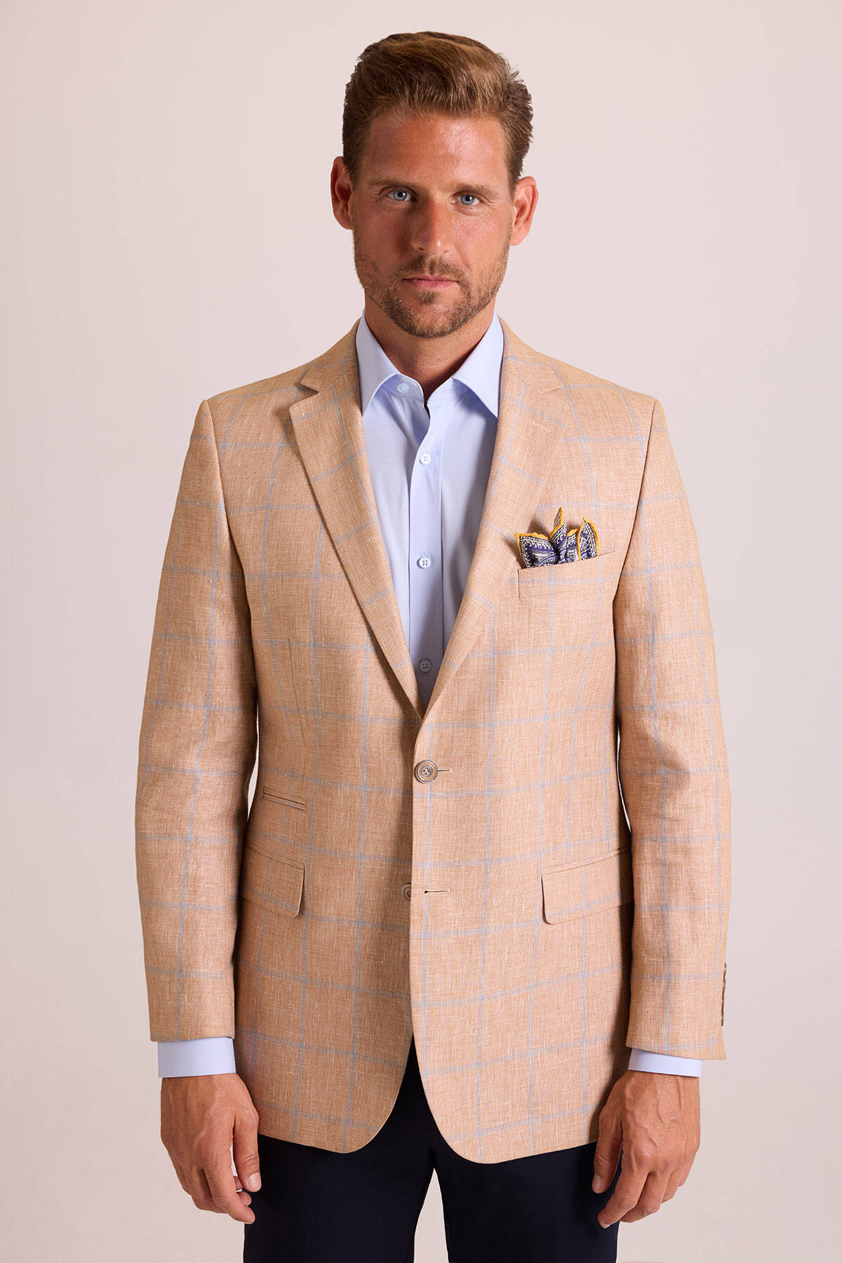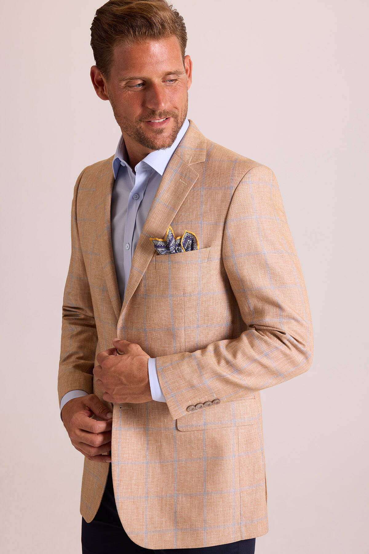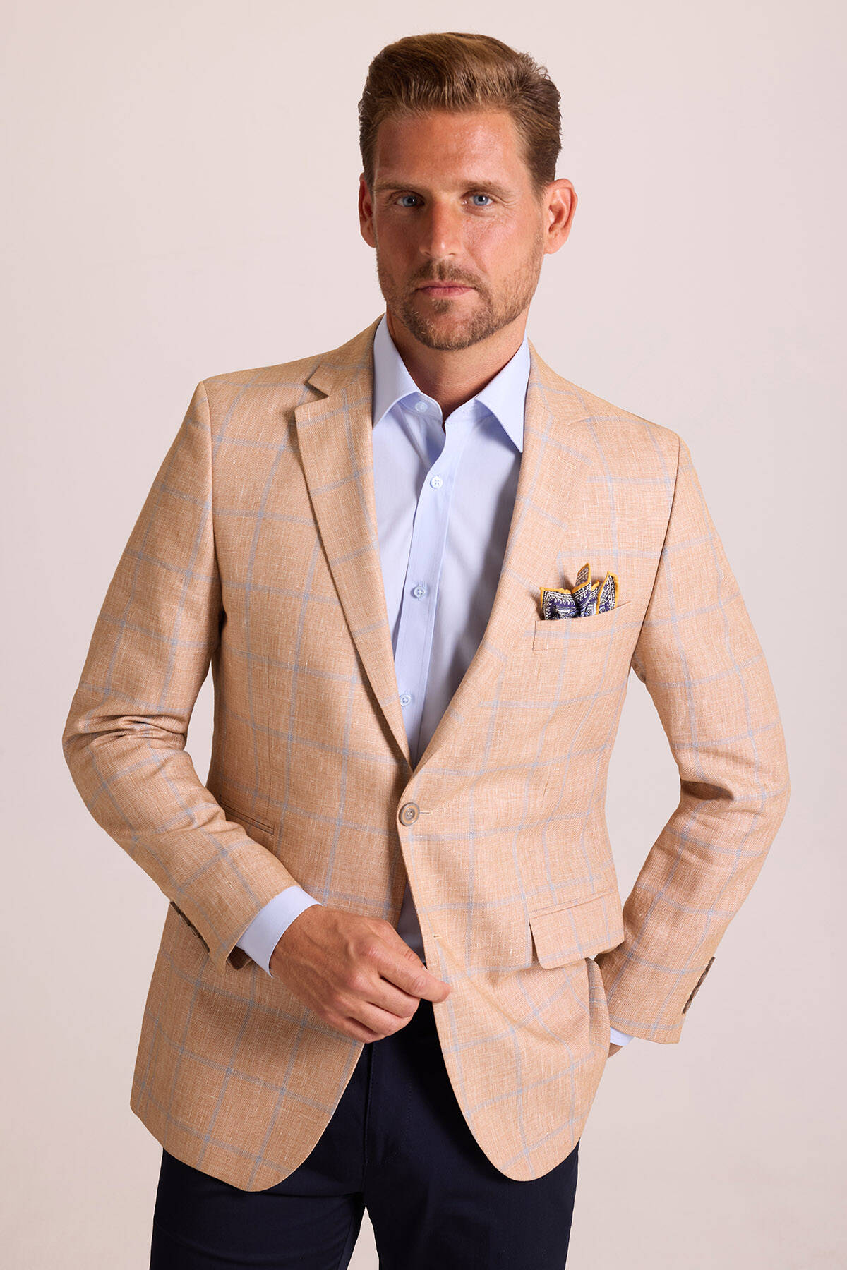 Bu zarif ekose desen ceket, çift düğmeli ve mono yakalı kesimiyle sportif-lüks kombinlerinize klas bir duruş ekler. Rahatlıktan ödün vermeyen winner ceket, yazın hem ofiste hem de mesai dışı anlarda güçlü bir görünüm yaratmanızı sağlar. Yazın yarı resmî iş, kokteyl ya da açılış etkinlikleri için bu şık tasarımı açık mavi slim fit gömlek, lacivert kumaş pantolon ve süet loafer ile çabasız bir şekilde kombinleyebilirsiniz. Zarafetin derecesini artırmak için cebinize şal desenli bir cep mendili eklemeyi deneyebilirsiniz. YSF Giyim, erkek modasındaki son trendleri lüks parçalarla yakalayabilmeniz için premium erkek ceket modellerini özel fiyatlarla sunar. Siz de sezon trendlerine zamansız bir şıklık eklemek istiyorsanız keten ceketlerle kusursuz yaz şıklığı yaratabilirsiniz!