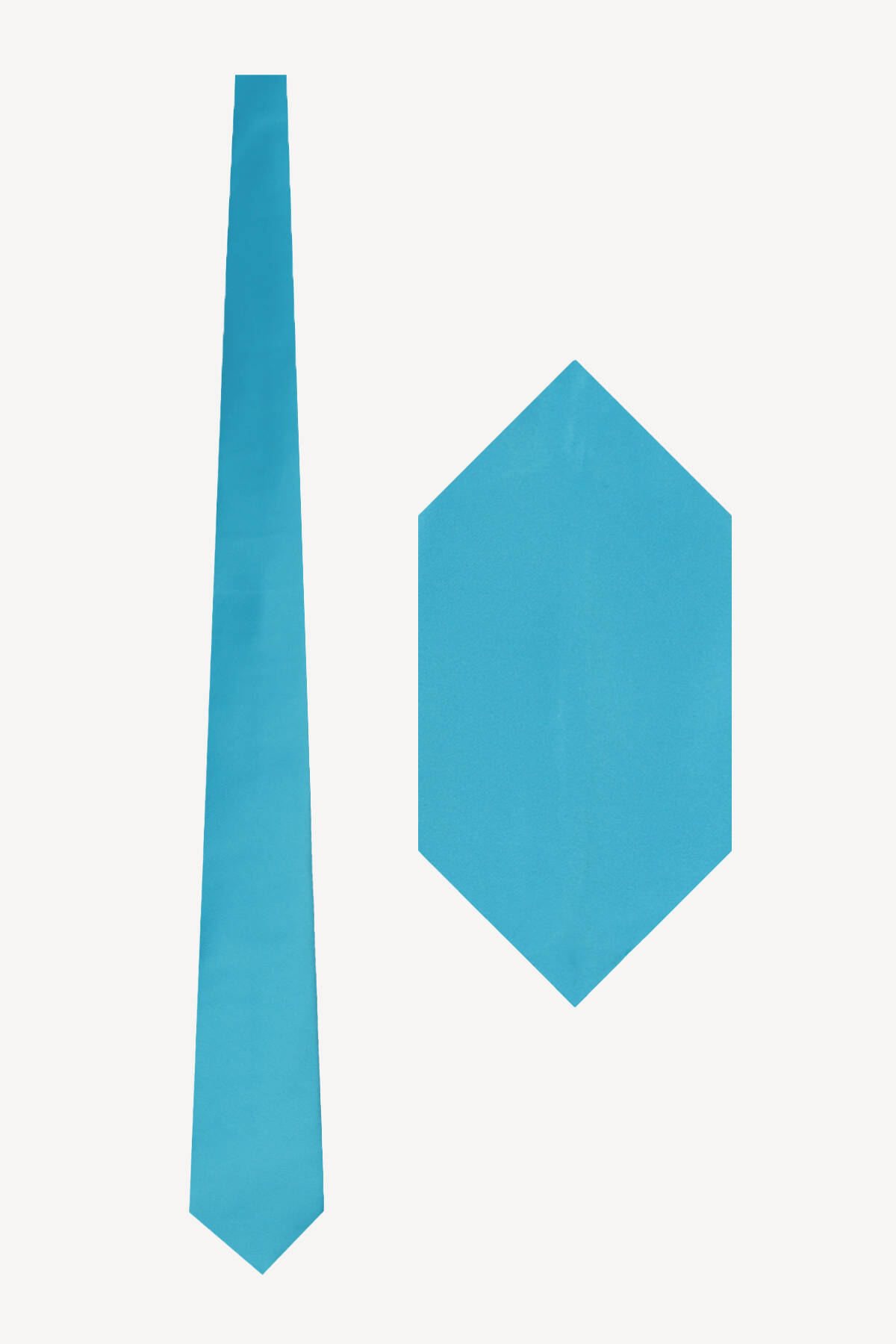 Erkek Turkuaz Düz Slim Kravat Mendil Set
