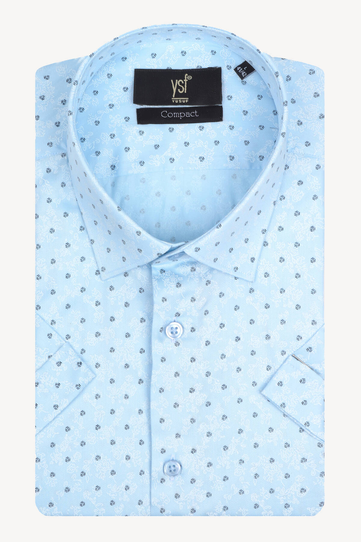 Erkek Turkuaz Kısa Kol Desenli Slim Fit Gömlek