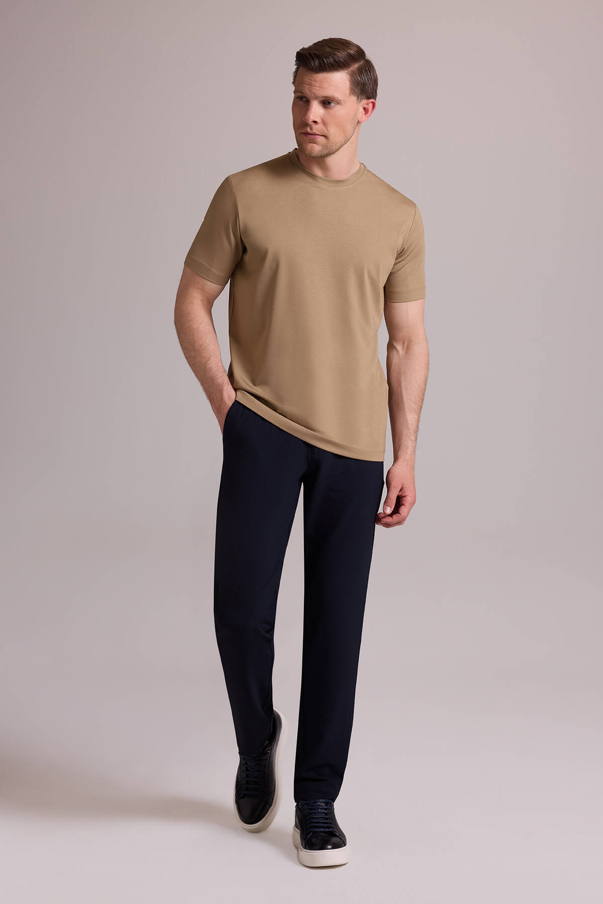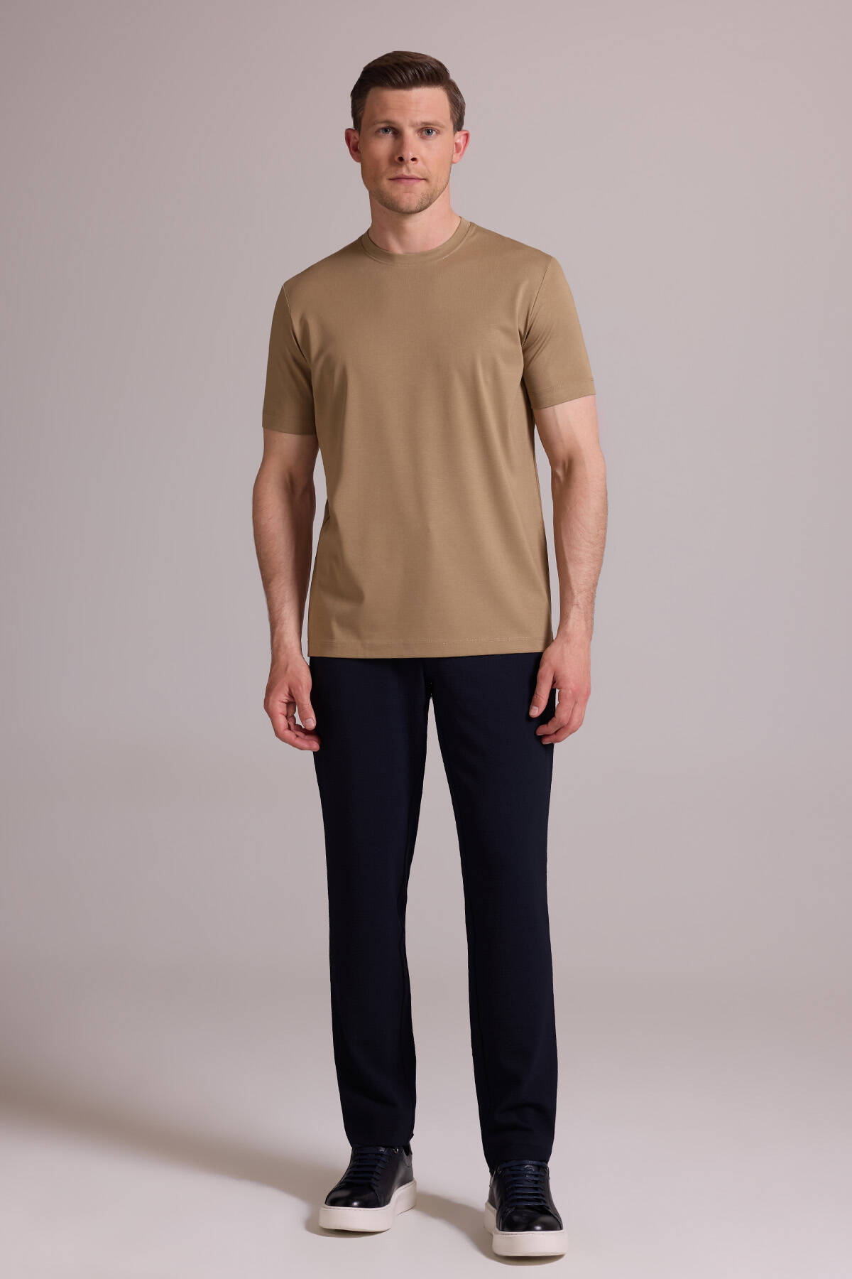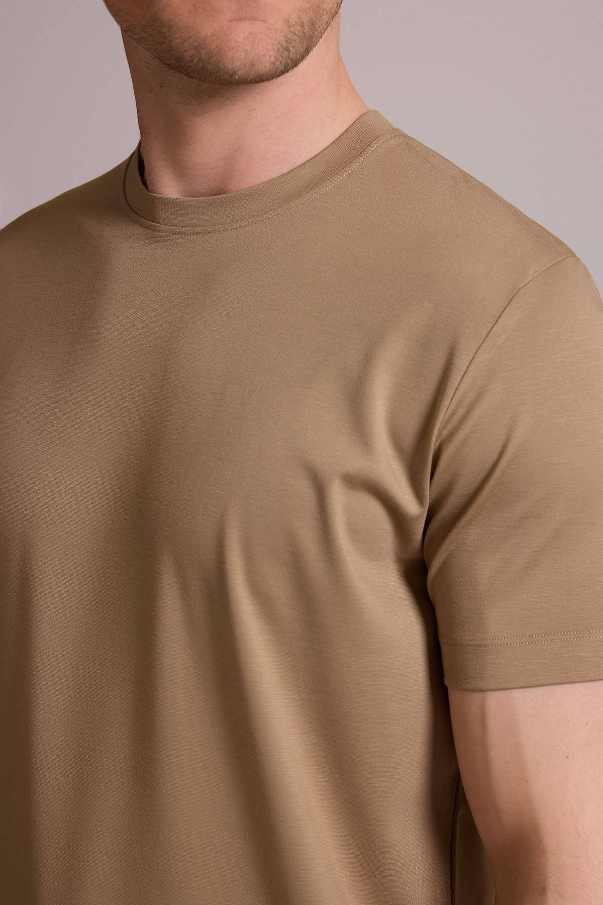 Erkek Vizon Regular Fit Bisiklet Yaka T-shirt