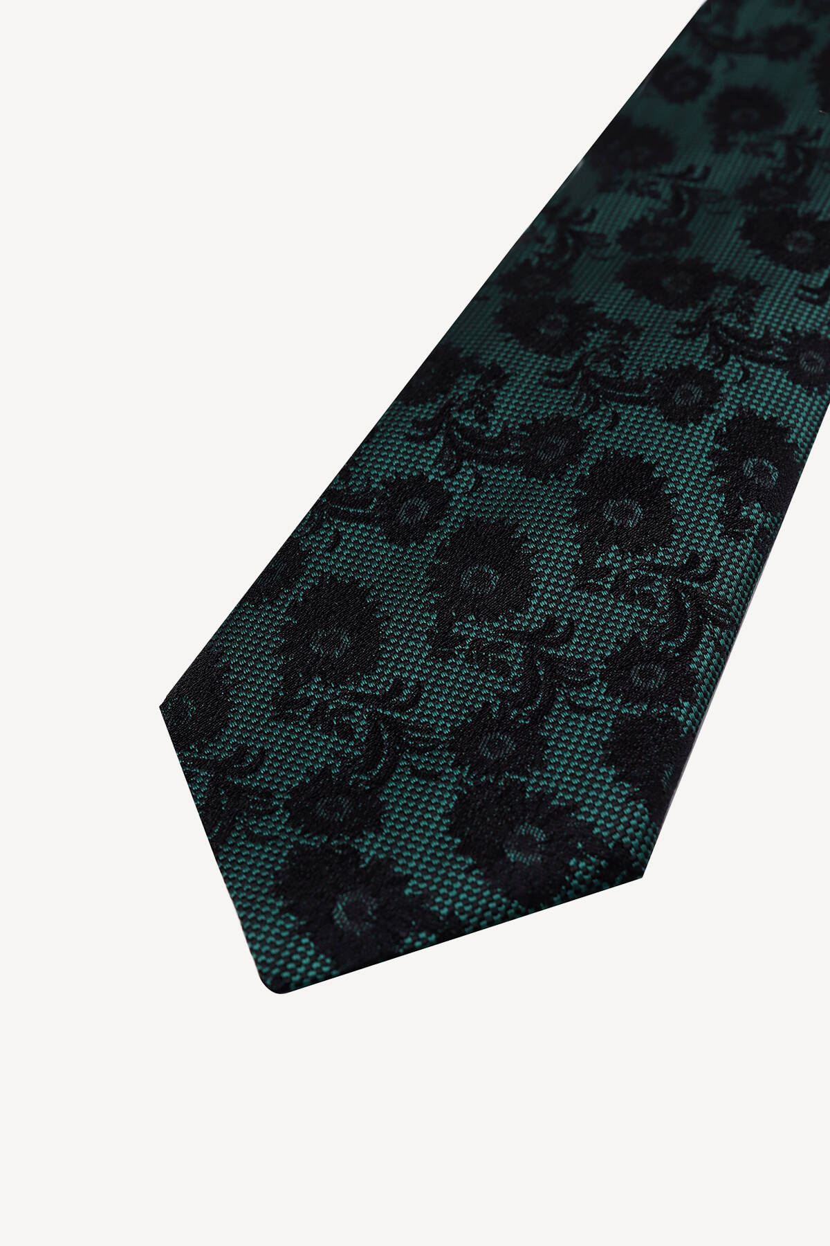 Erkek Yeşil Çiçek Desenli Kravat Mendil Set