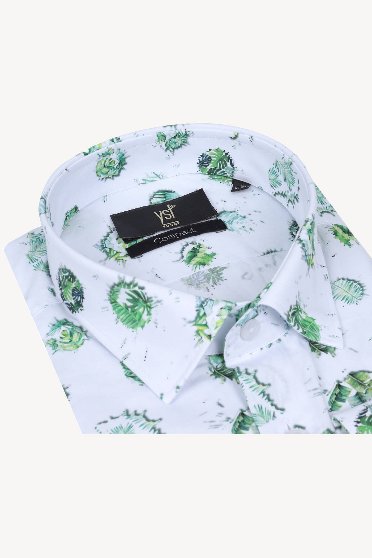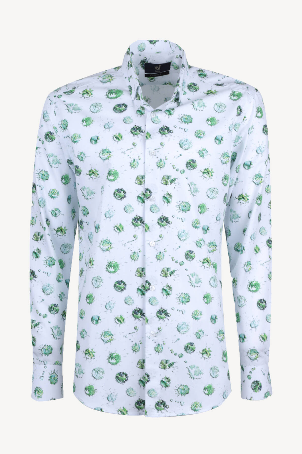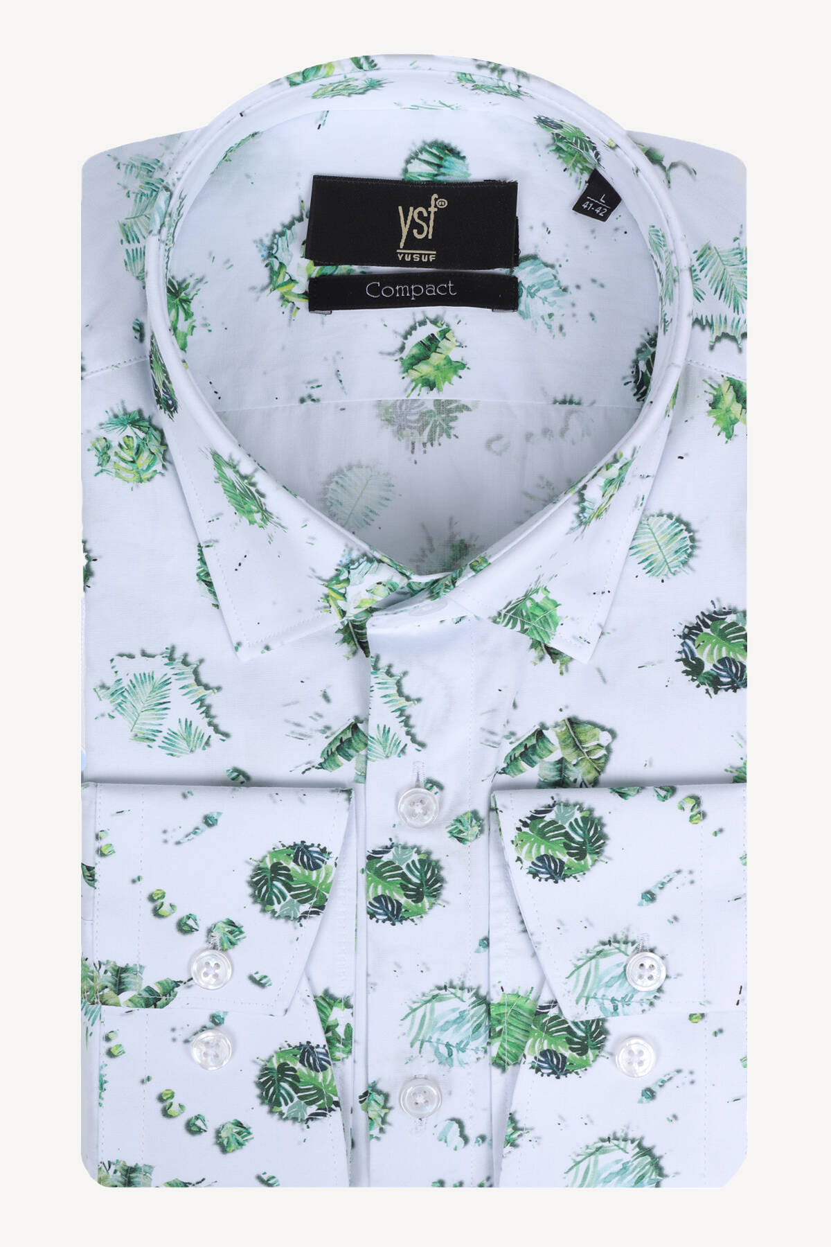 Erkek Yeşil Desenli Uzun Kol Gömlek