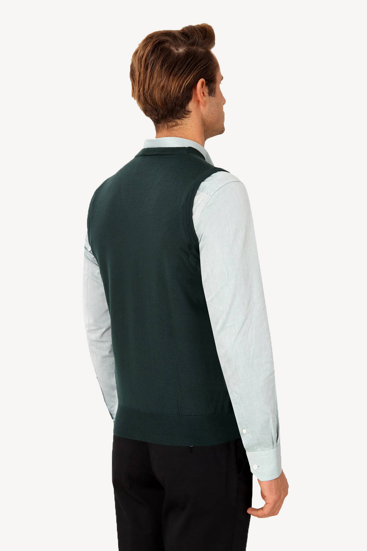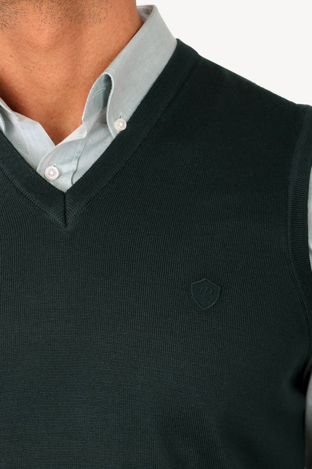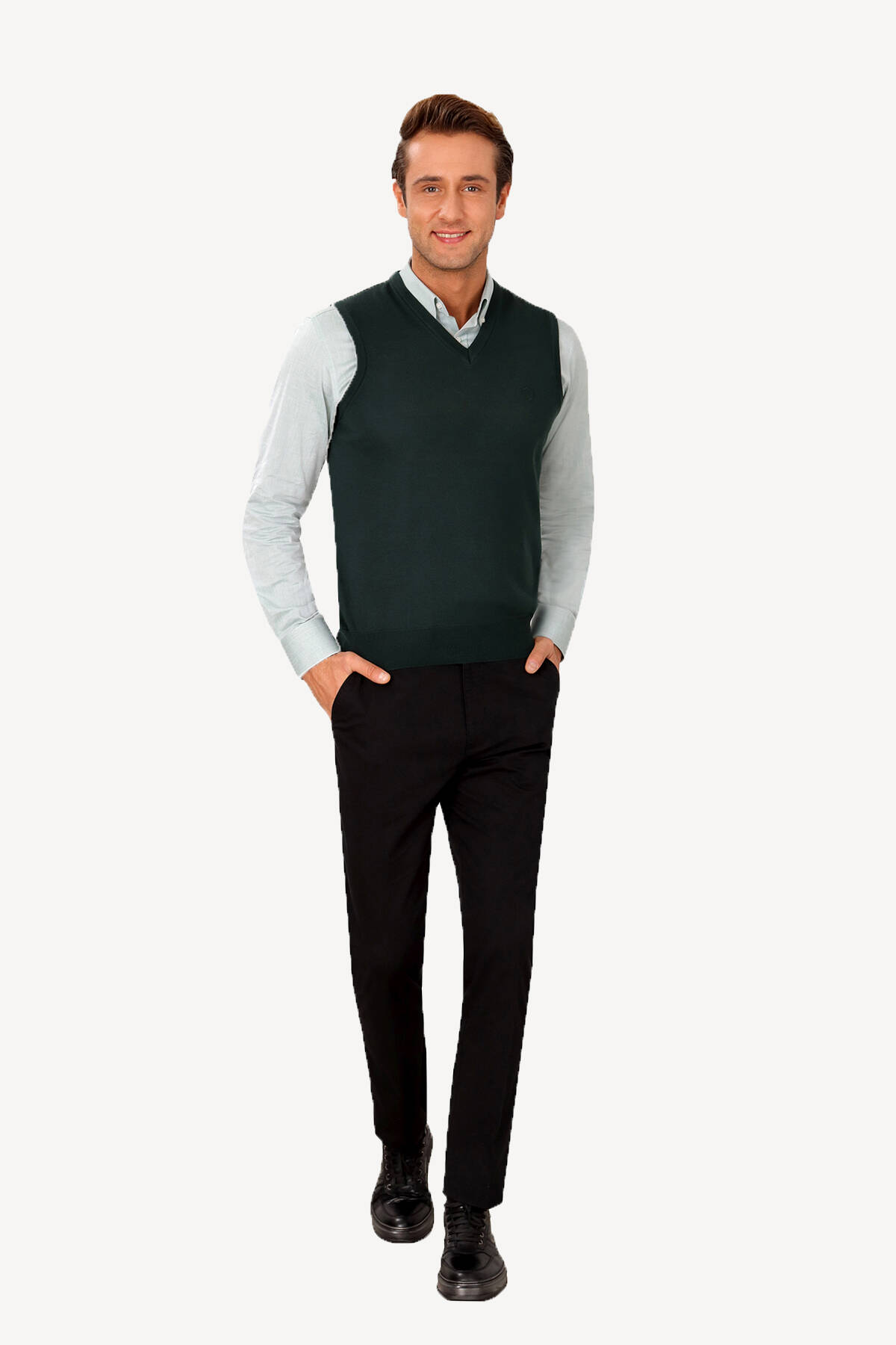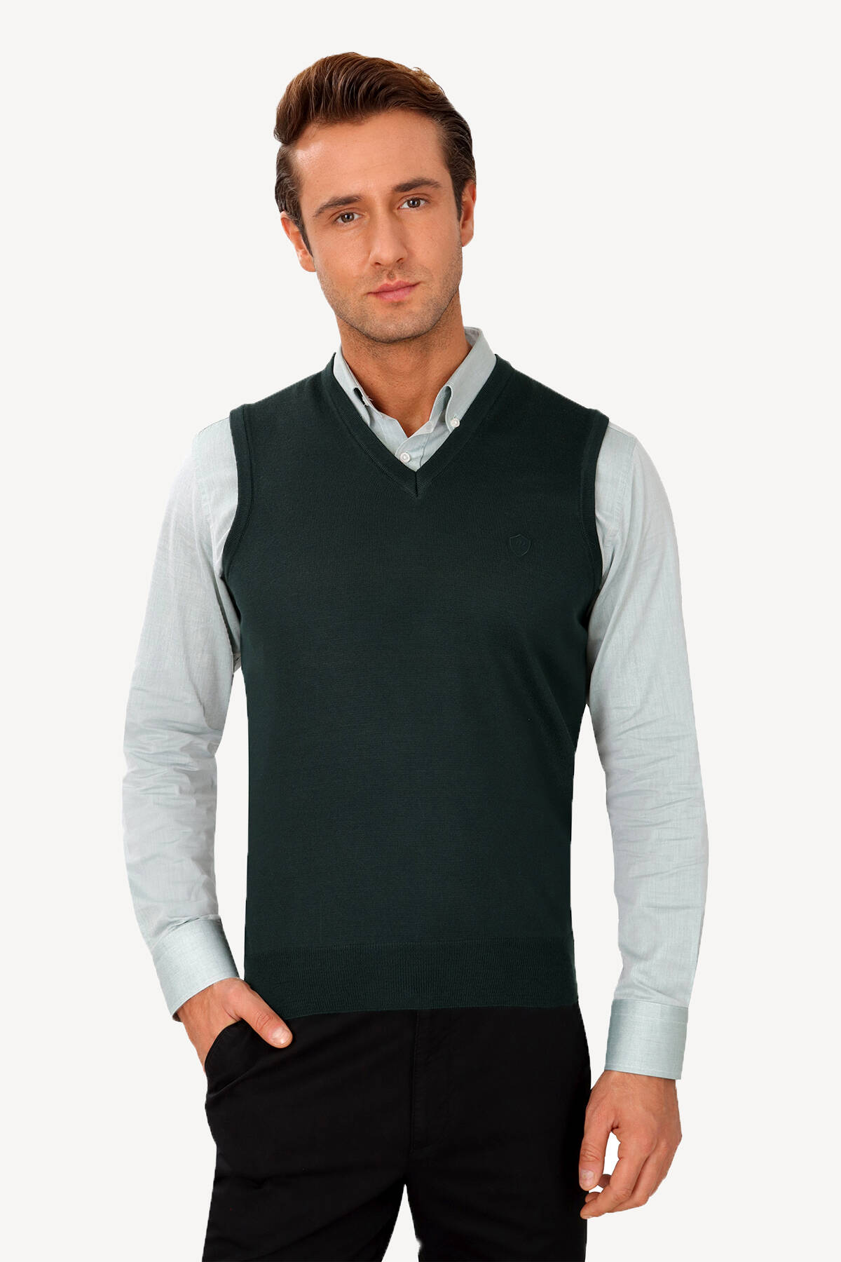 Erkek Yeşil Klasik V yaka Triko Süveter