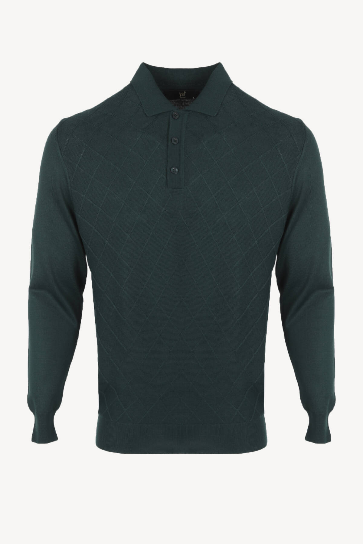 Erkek Yeşil Polo Yaka Desenli Klasik Triko