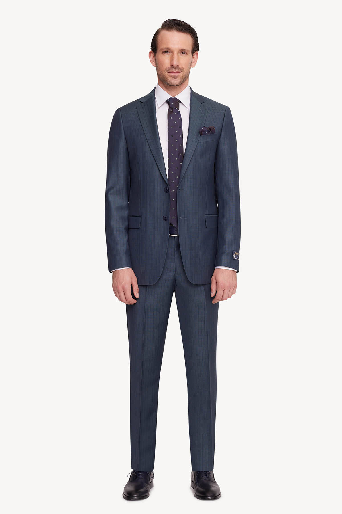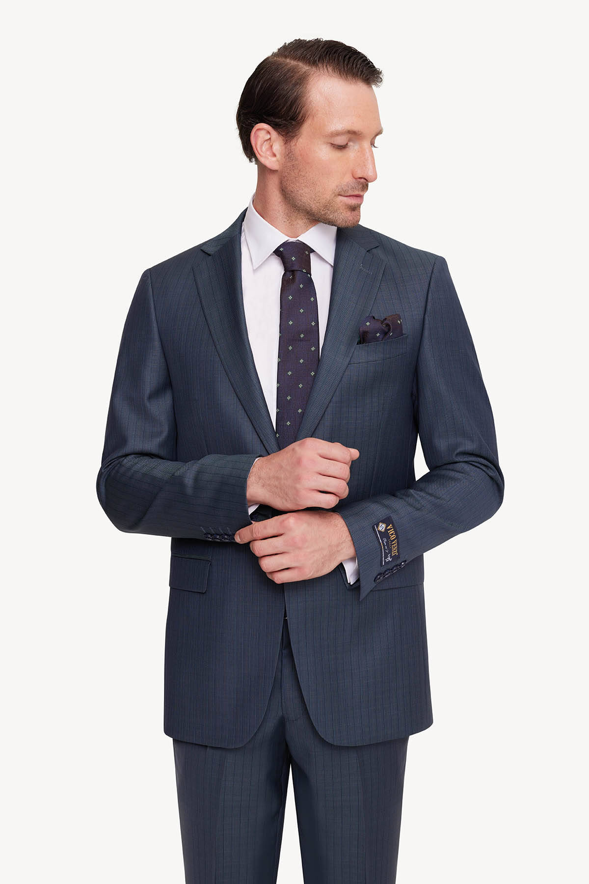 Erkek Yeşil Regular Fit Çizgili Takım Elbise