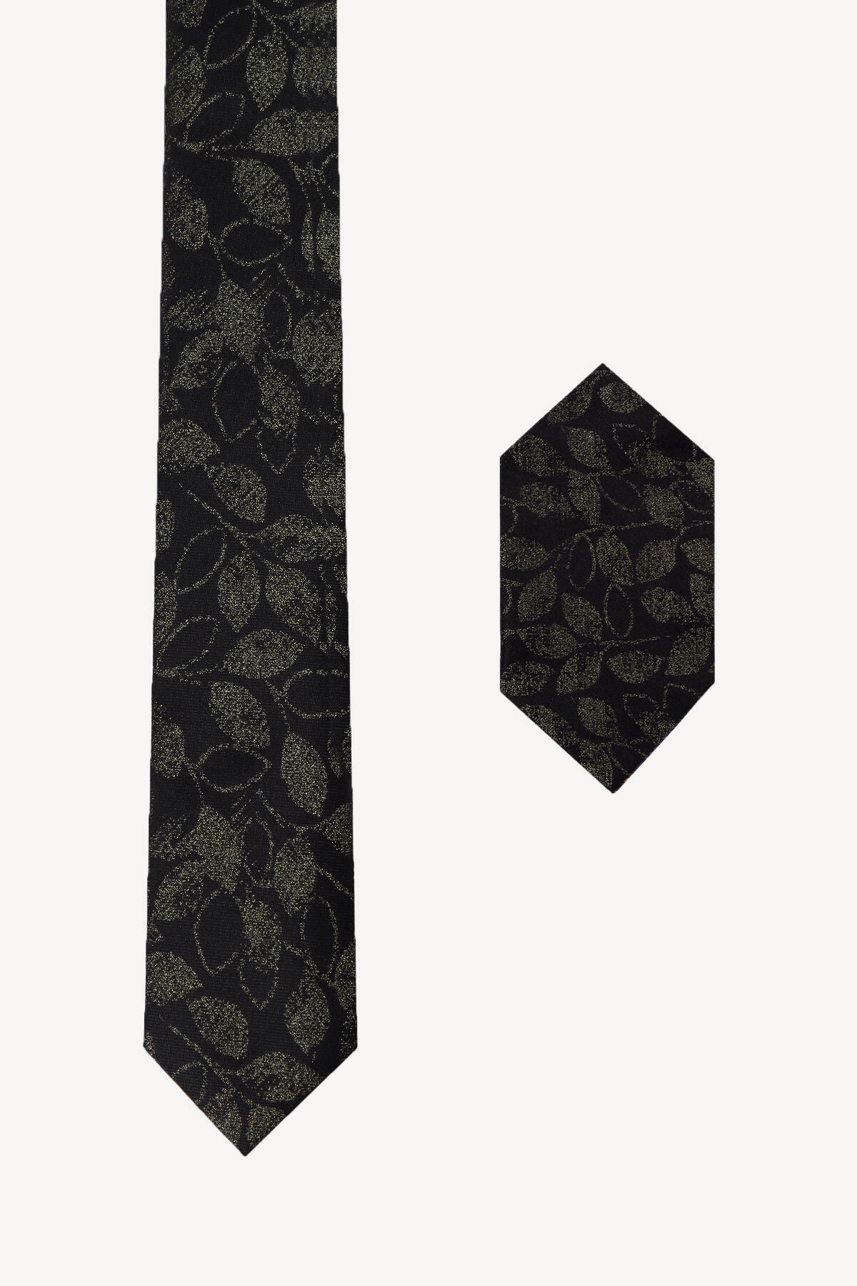 Erkek Yeşil Yaprak Desenli Kravat Mendil Set