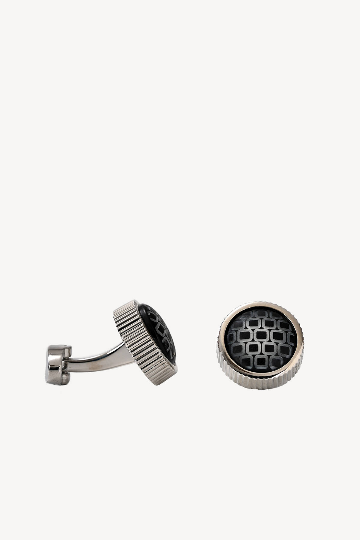 Erkek Siyah Gri Kubbe Kol Düğmesi