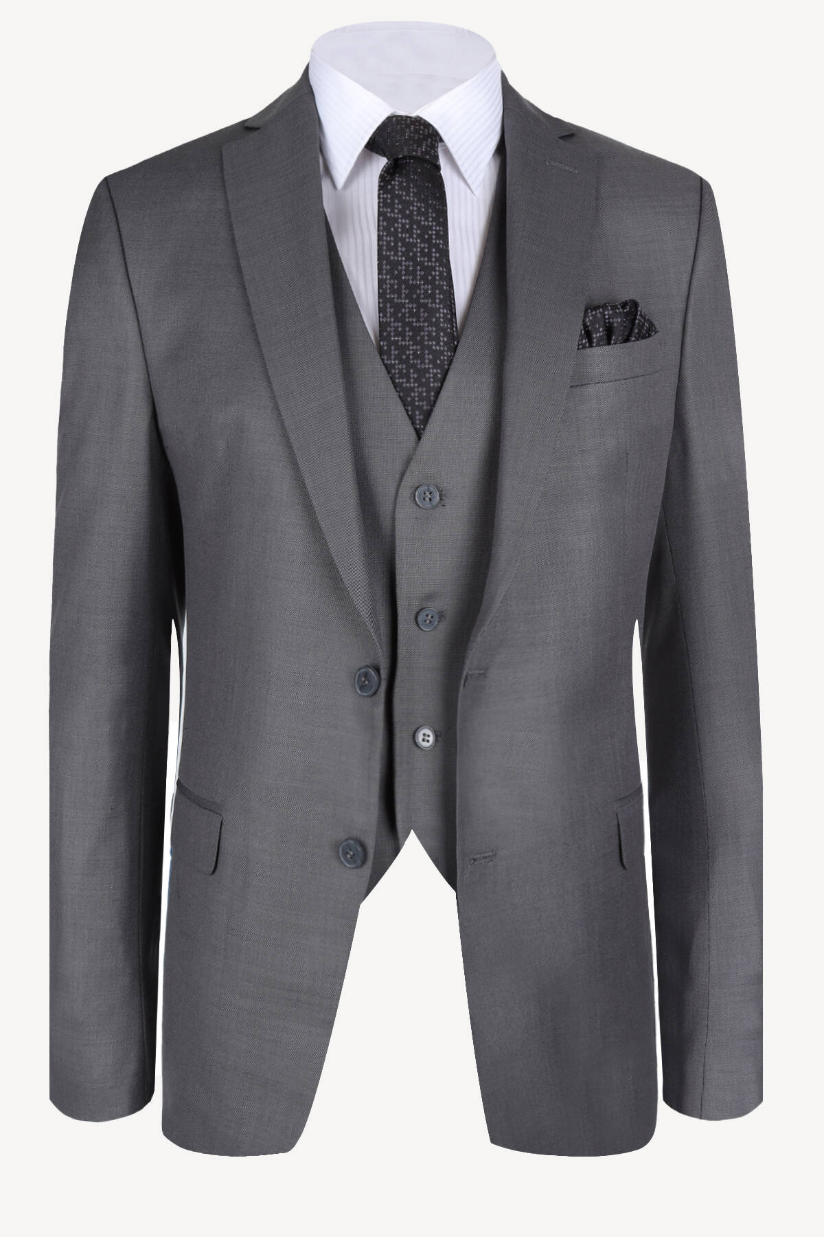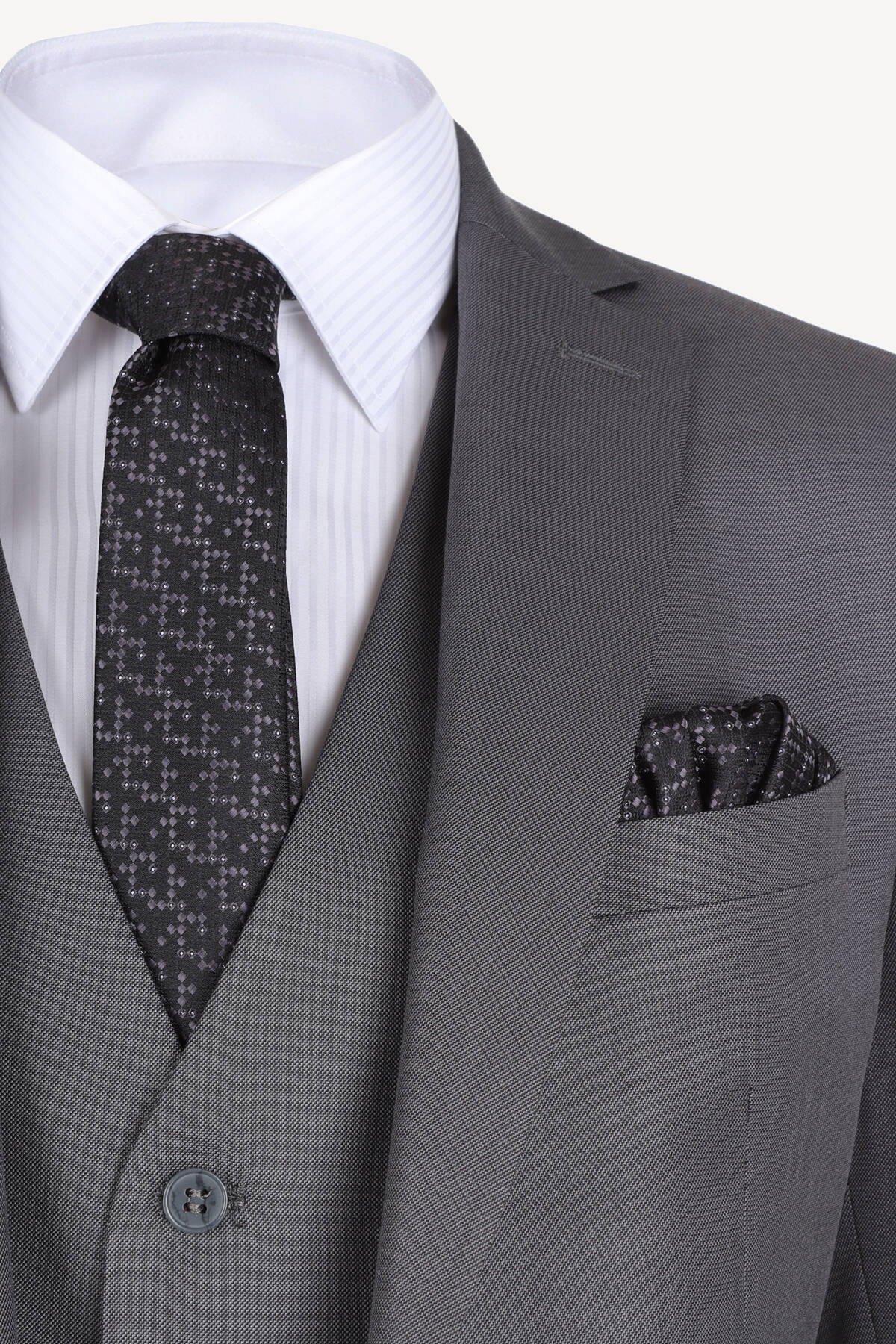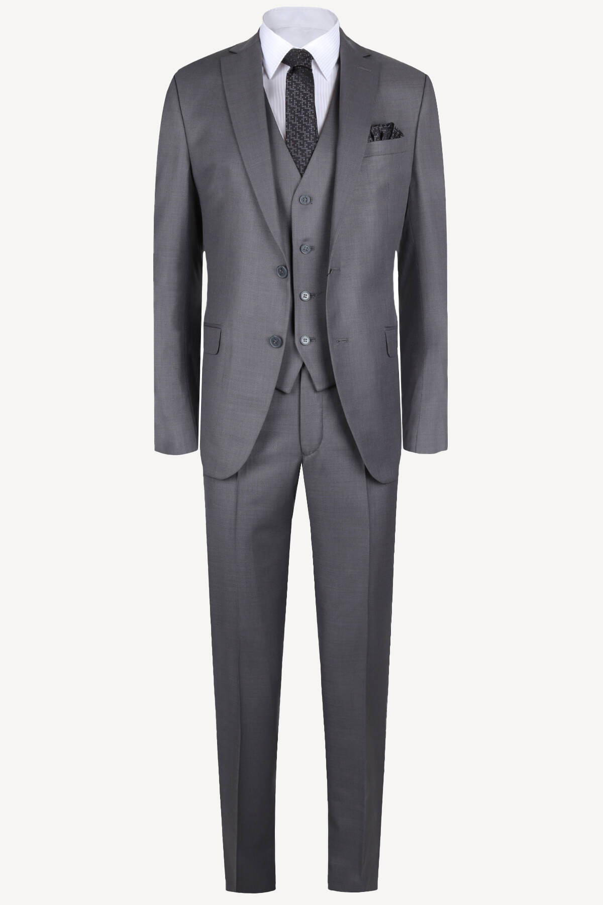 Erkek Gri Slim Fit Yelekli Takım Elbise