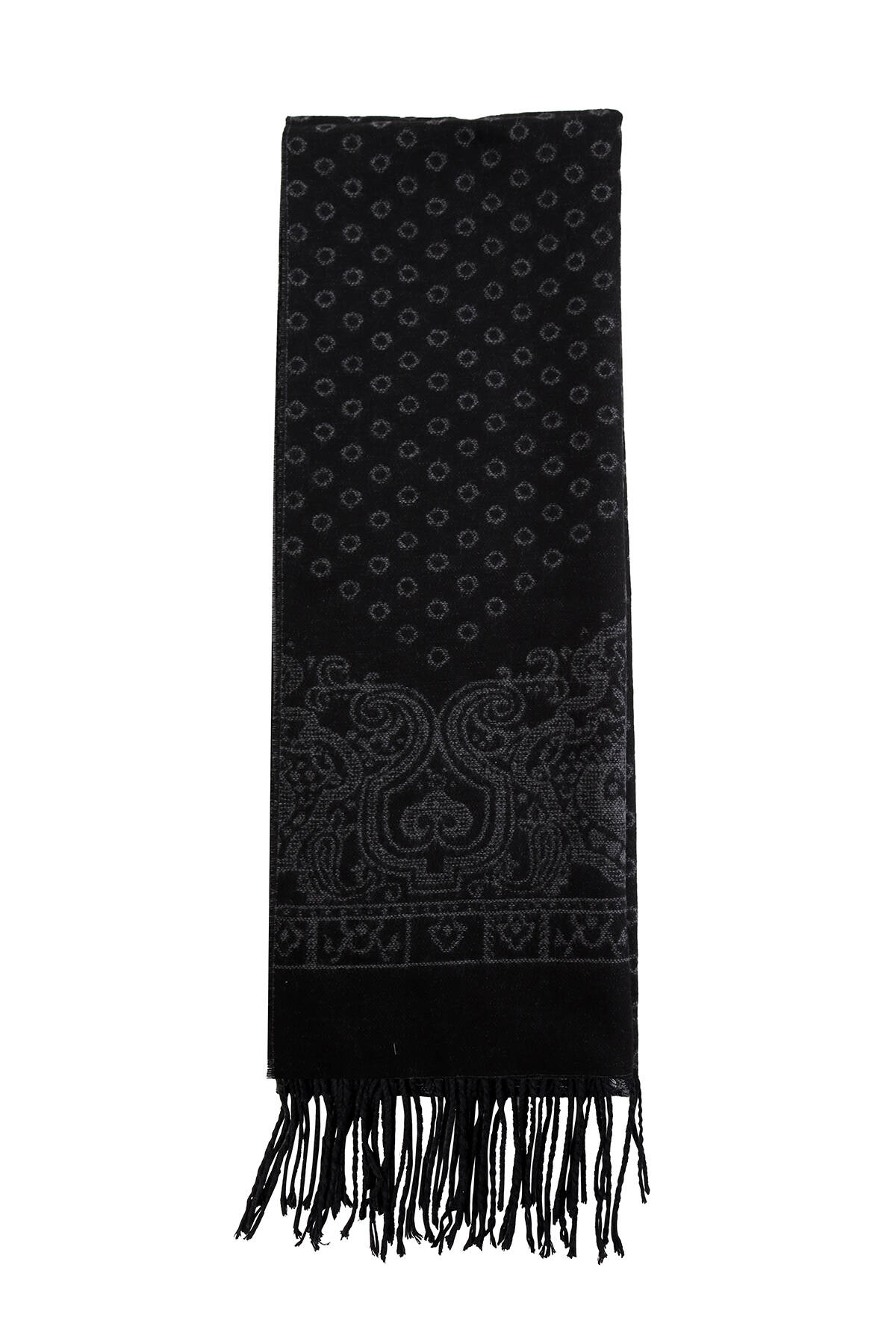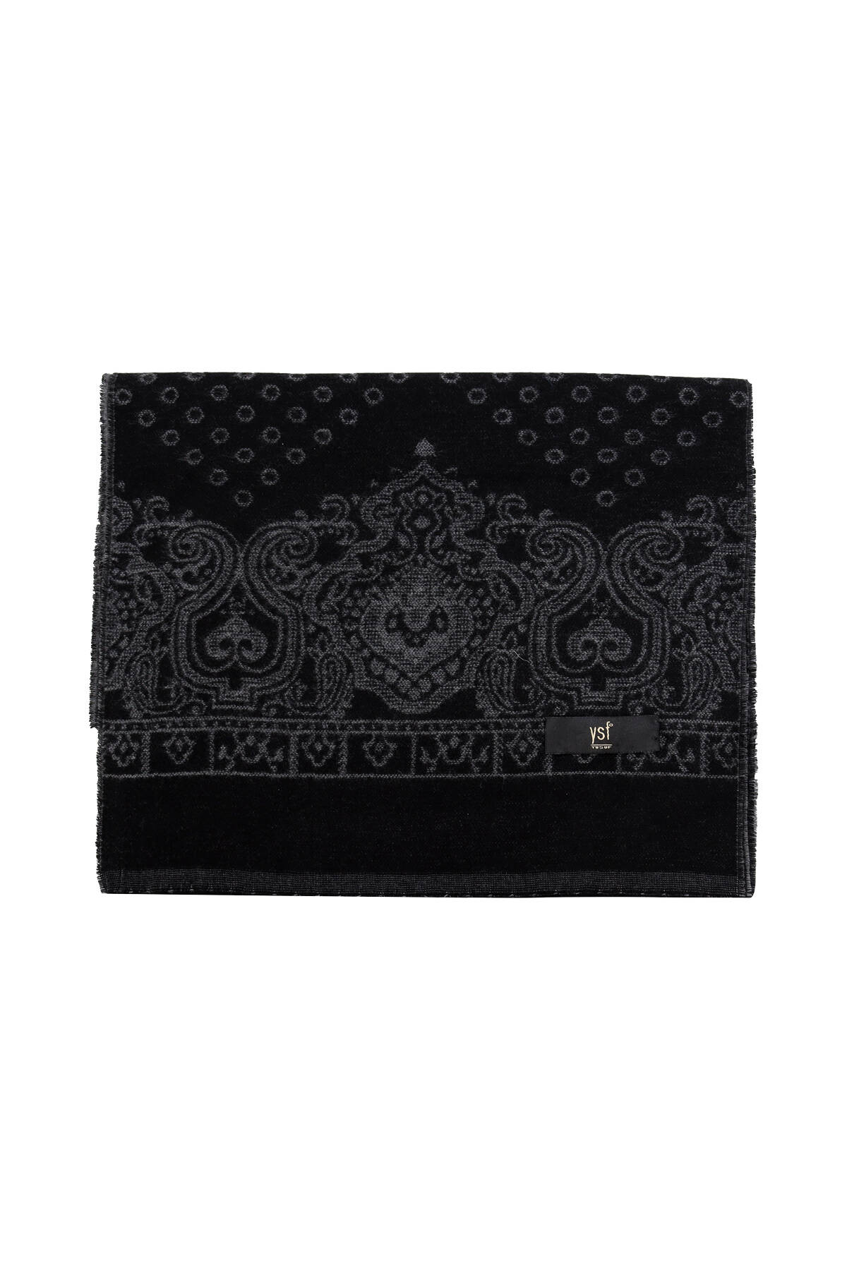 Erkek Siyah Gri Yünlü Desenli Kaşkol