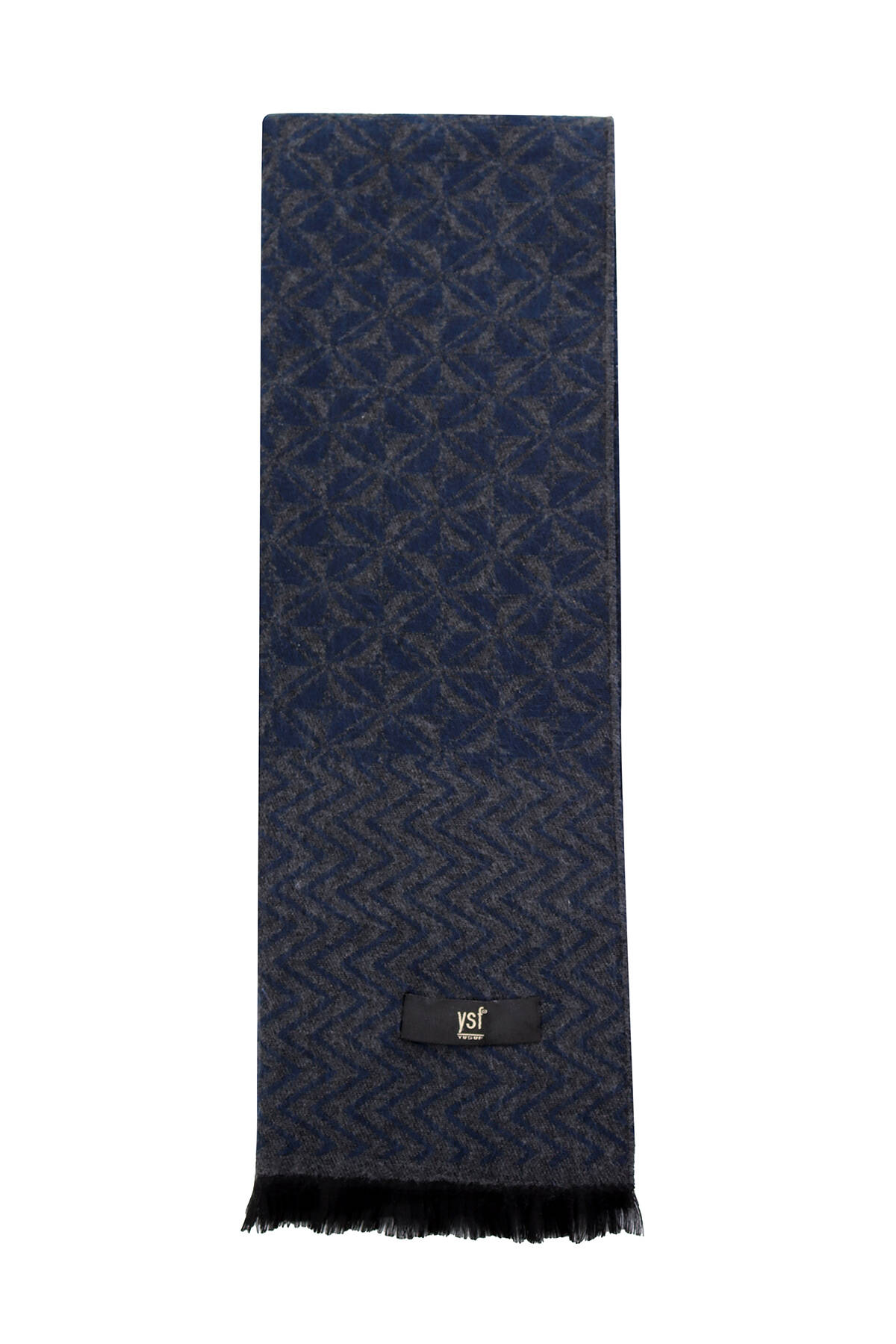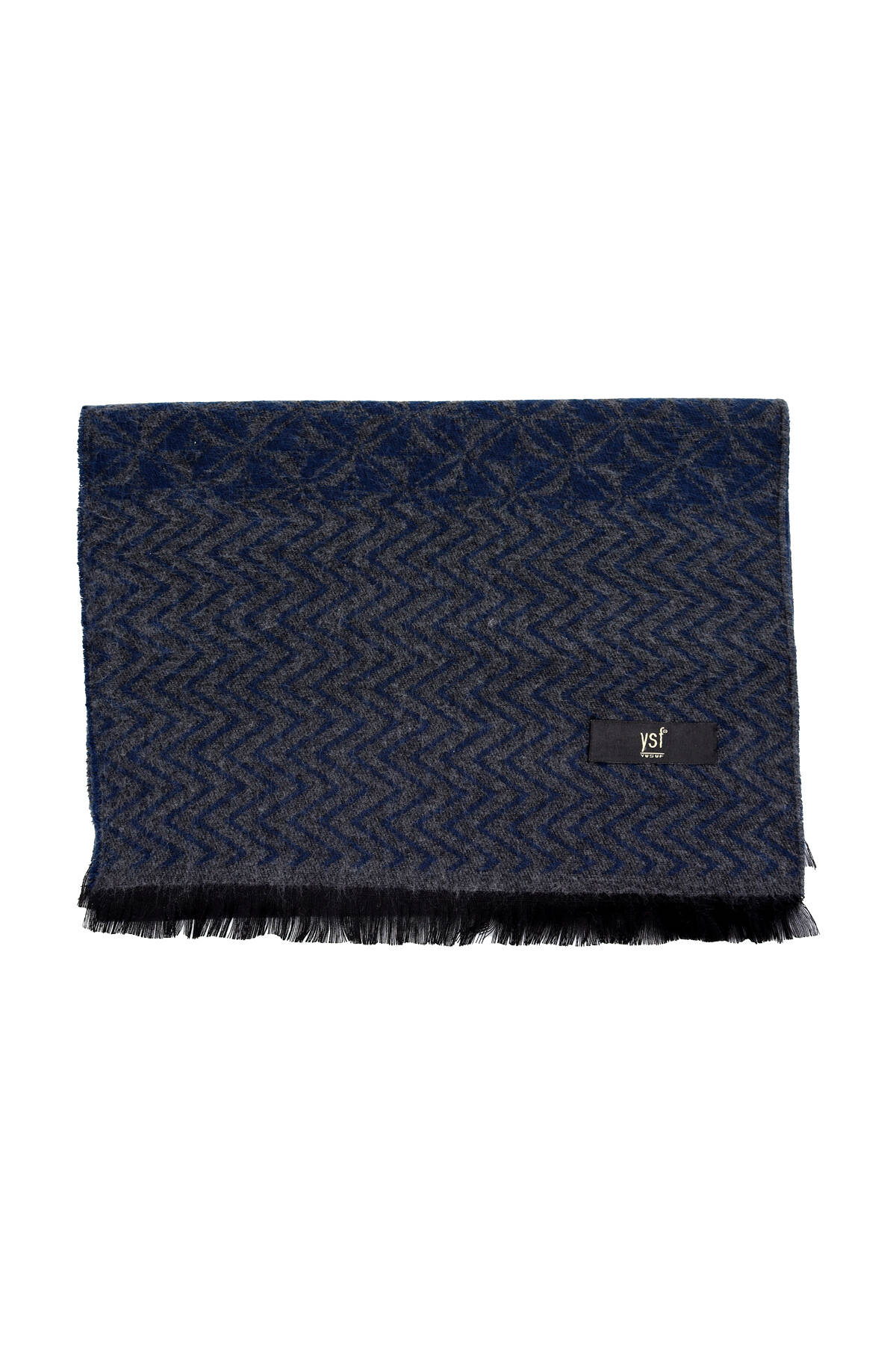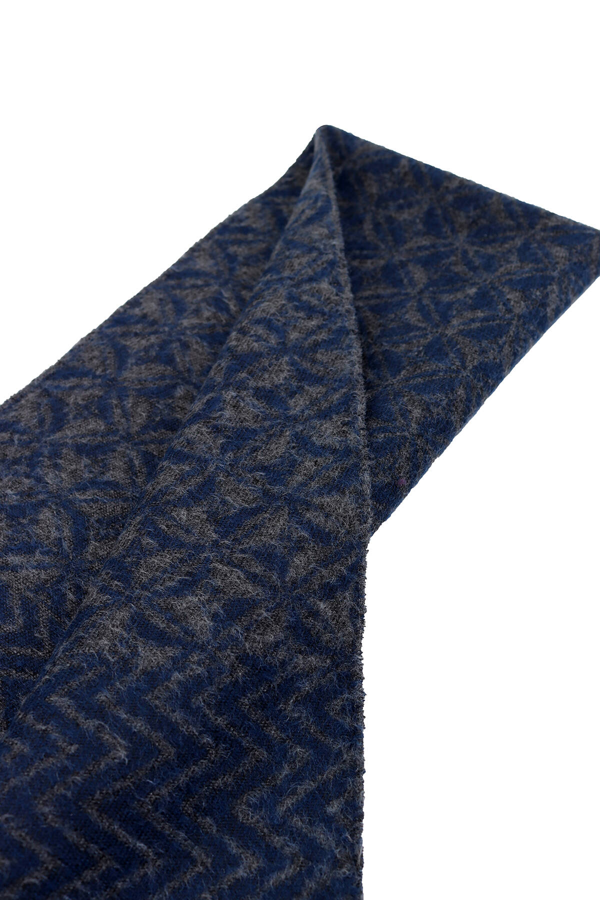 Erkek Lacivert Gri Yünlü Karışık Desenli Kaşkol